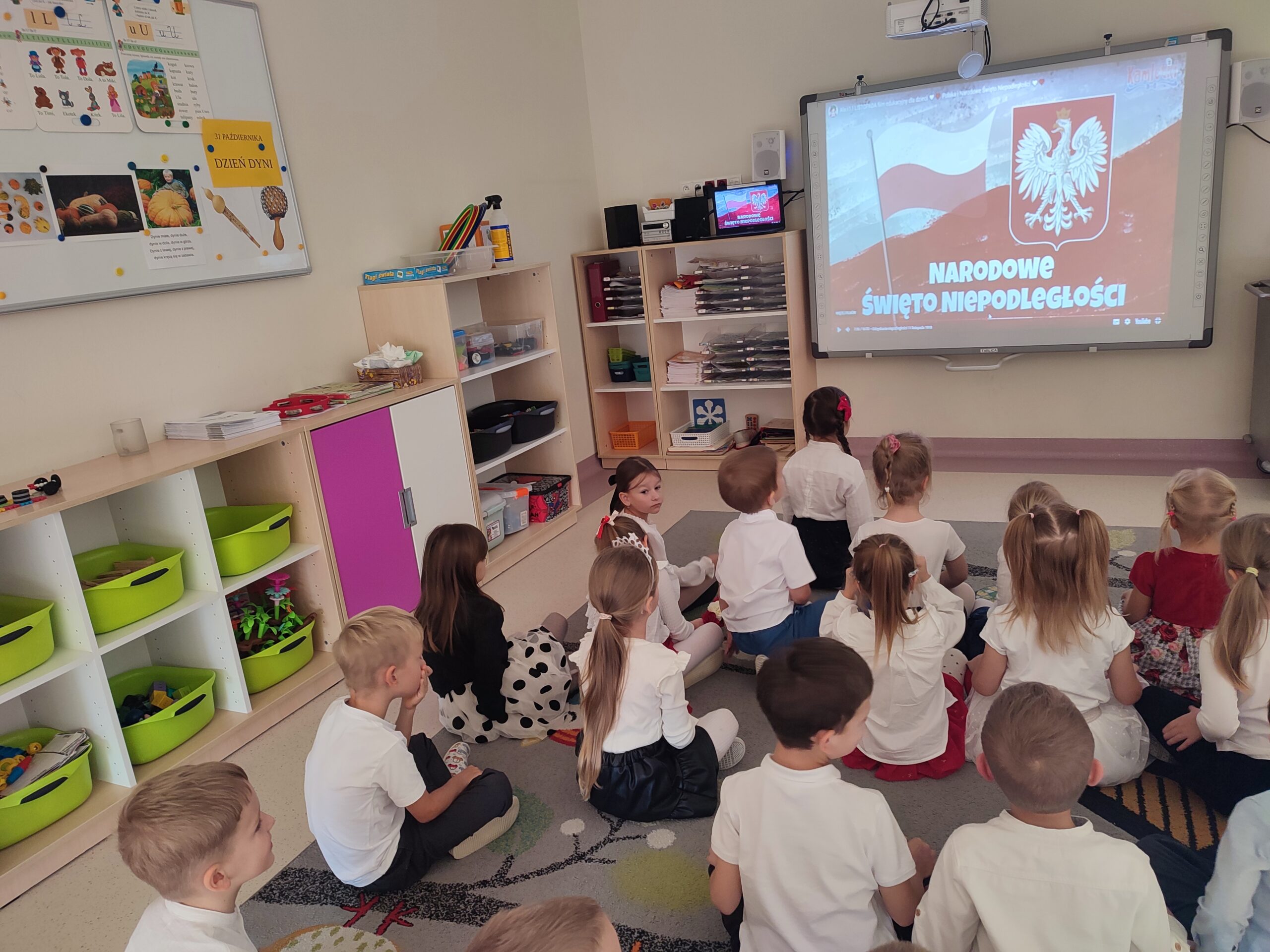 11 listopada obchodziliśmy,, Narodowe Święto Niepodległości. Cele zajęć poświęconych Świętu Niepodległości obejmowały kształtowanie postaw patriotycznych i narodowej tożsamości oraz rozwijanie szacunku do symboli narodowych a także kulturalnego zachowania podczas uroczystości.
