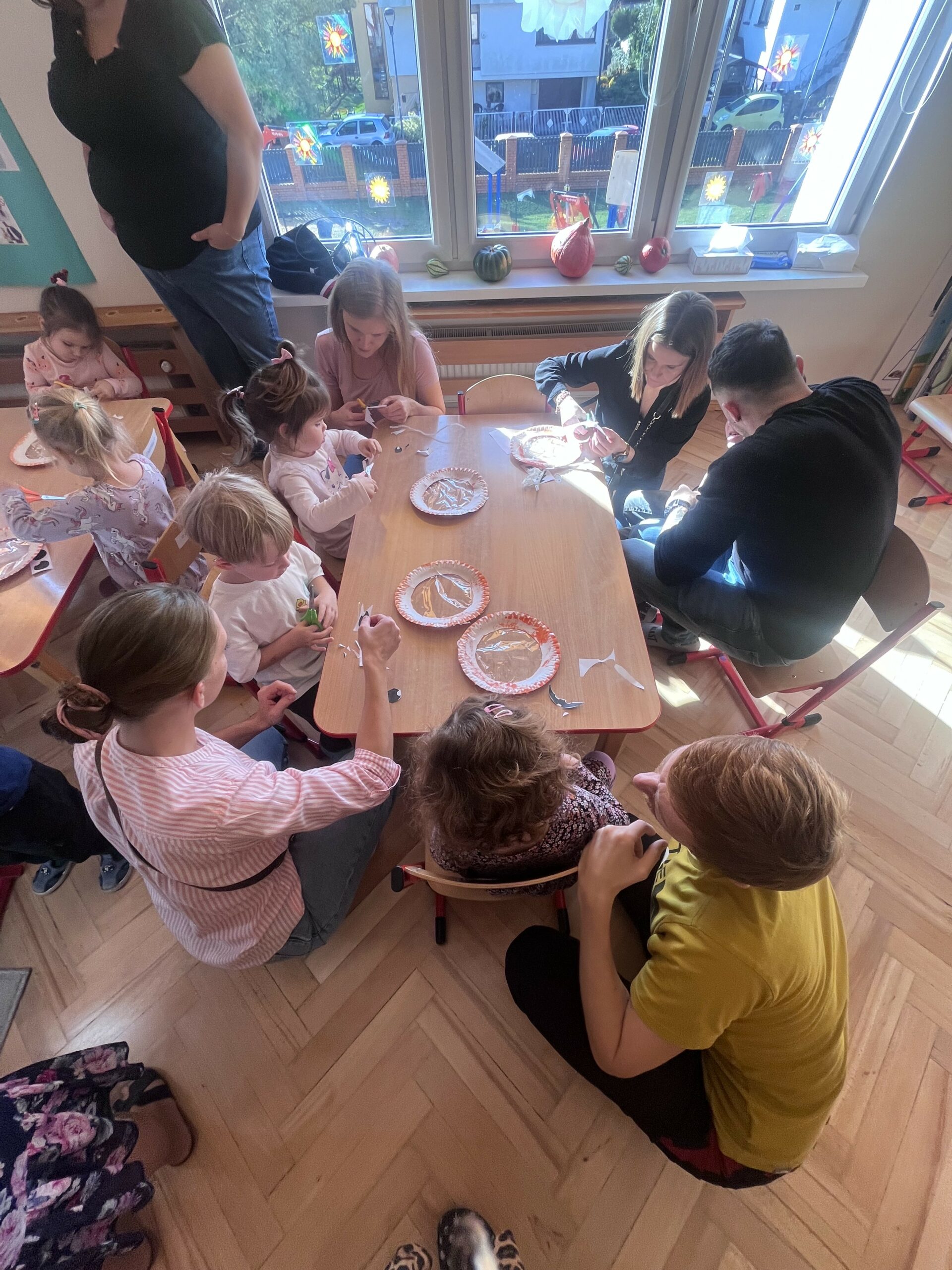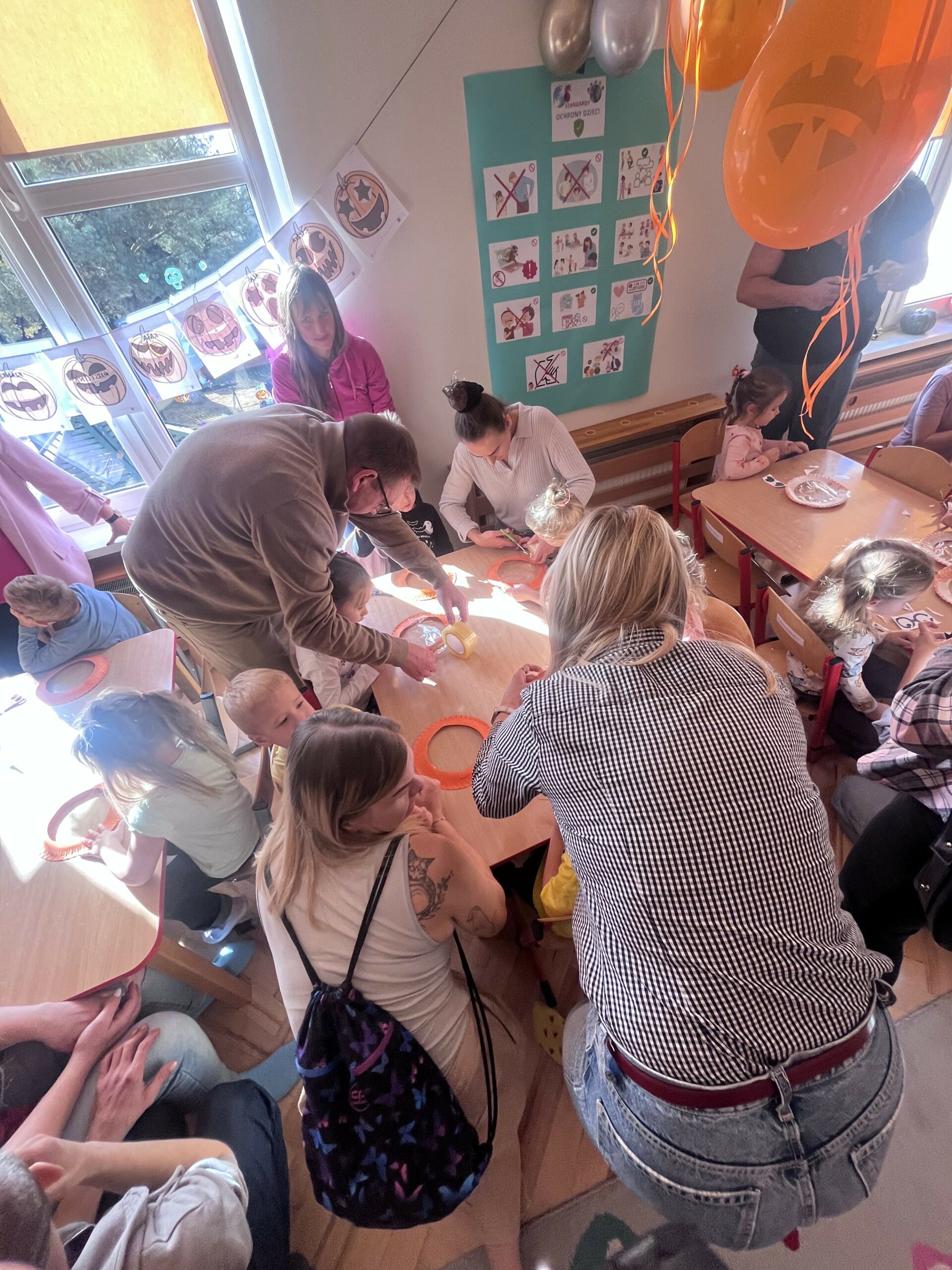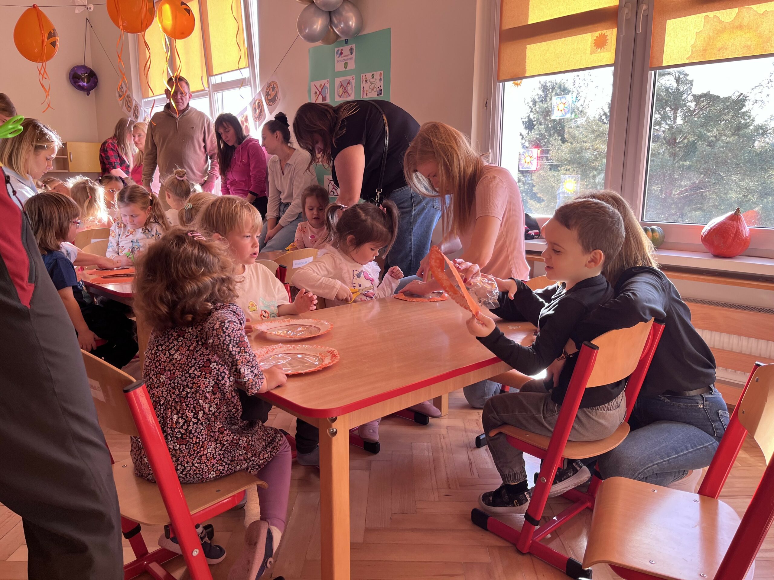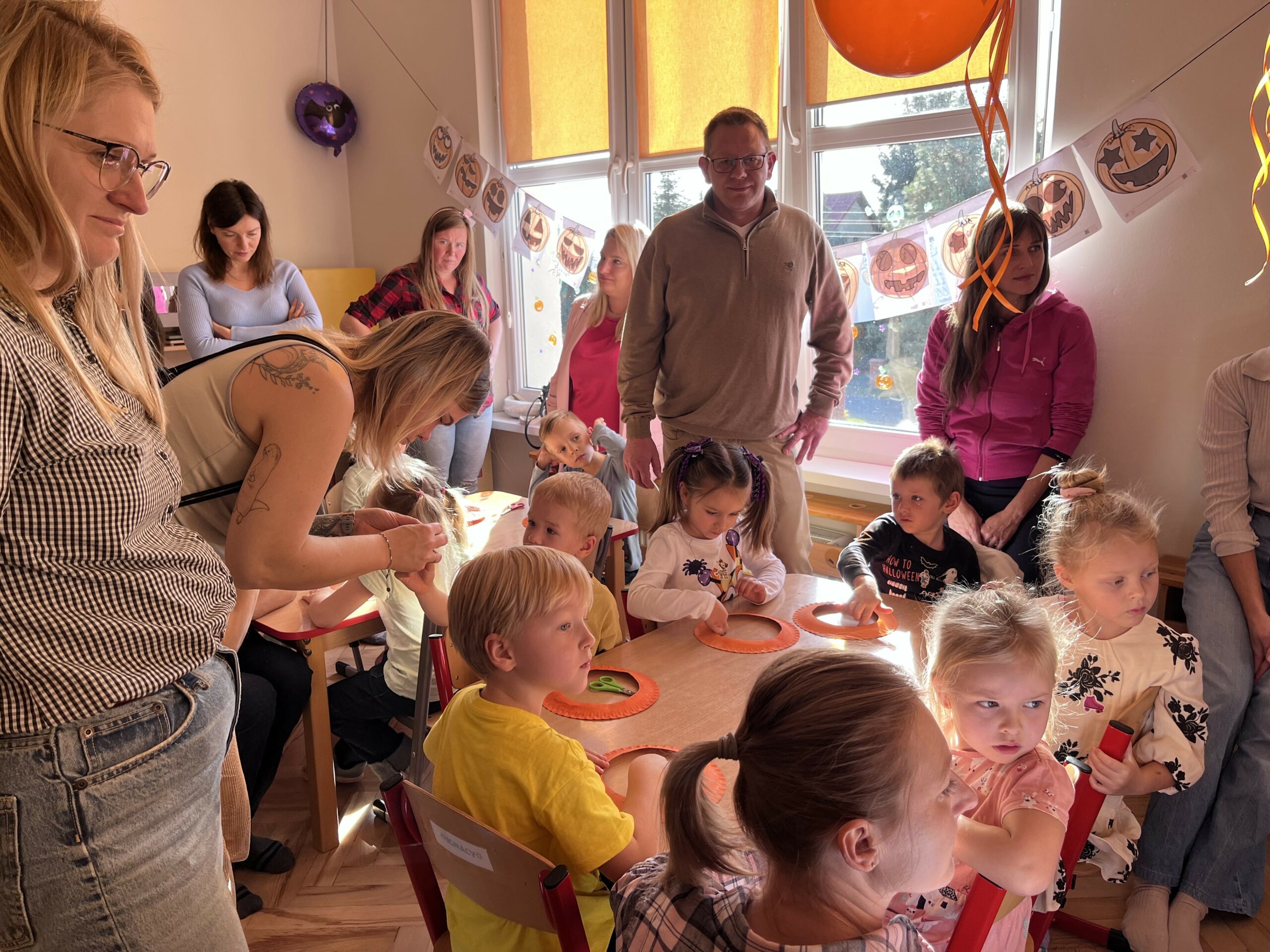 Po części językowej przedszkolaki zaprezentowały swoje umiejętności manualno-techniczne, wykonując kreatywne prace plastyczne razem z rodzicami. Rodzice przybyli tłumnie, z uśmiechem i dumą obserwując swoje pociechy. To był wyjątkowy dzień – pełen radości, wspólnej zabawy i rodzinnej atmosfery. Dzieci były szczęśliwe, że mogły spędzić ten czas w przedszkolu razem z rodzicami! 🧡
