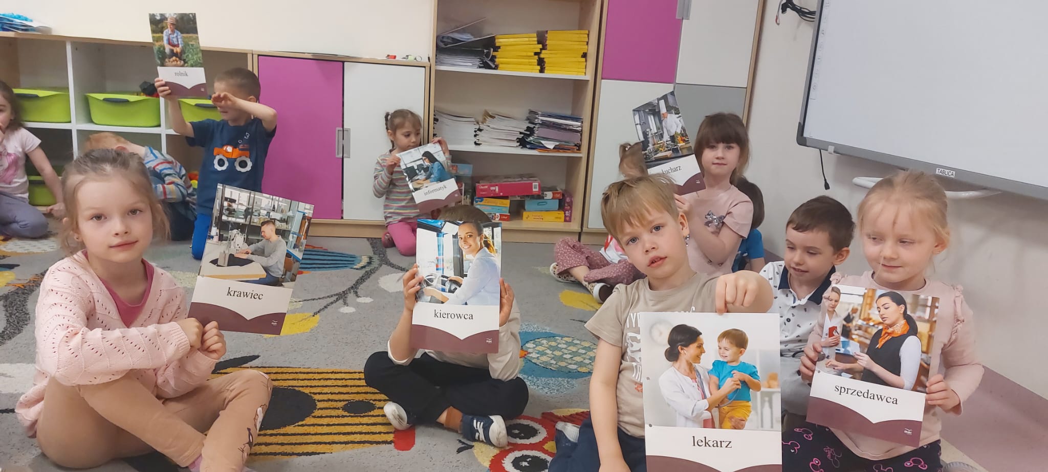 W zeszłym tygodniu Tygryski nie próżnowały: stworzyły księgę zawodów i zapoznały się z 5 nowymi zawodami, ćwiczyły chwyt pęsetowy tworząc wspaniałe prace i wykazały się niezwykłą kreatywnością tworząc makietę gospodarstwa.