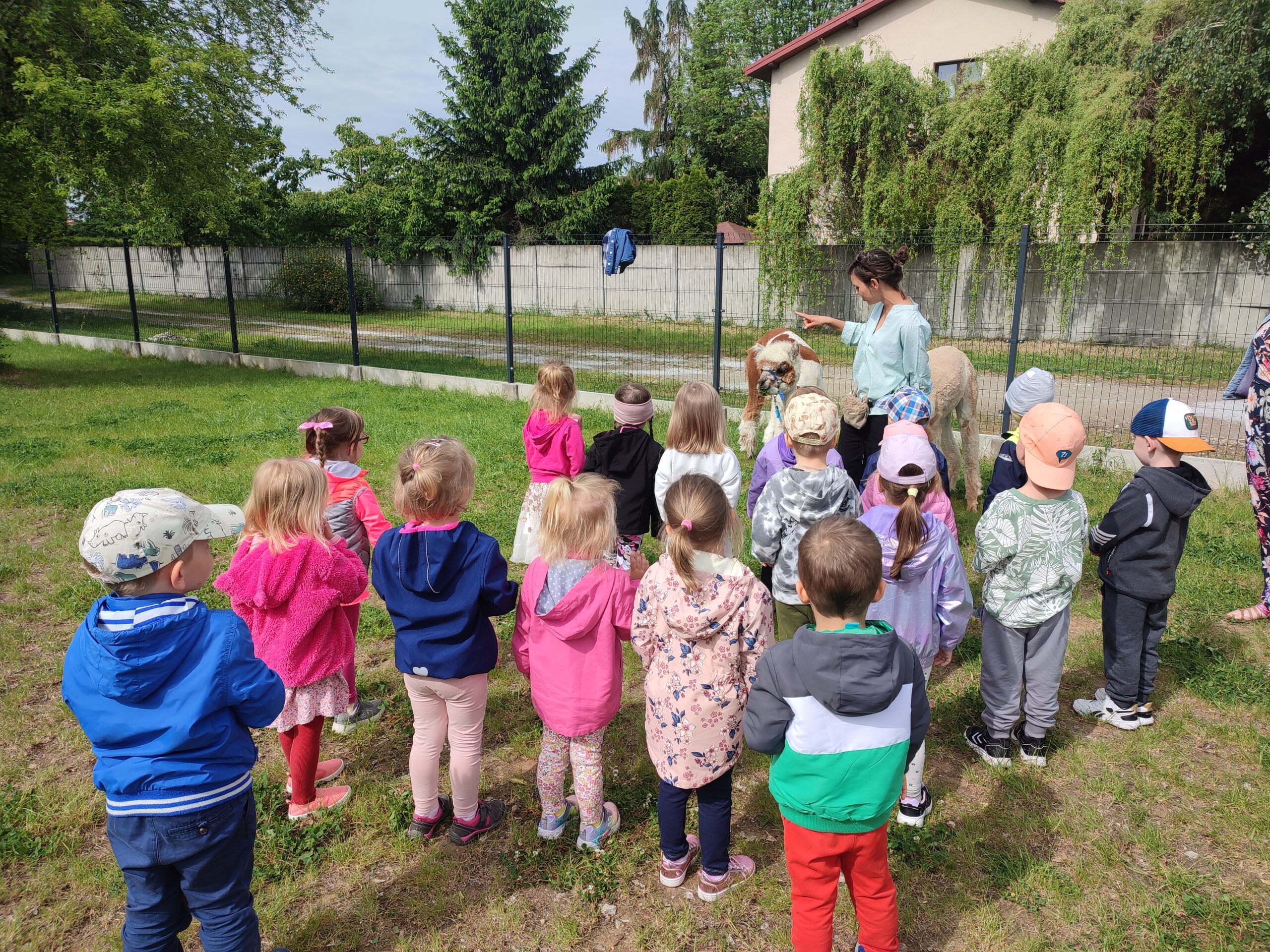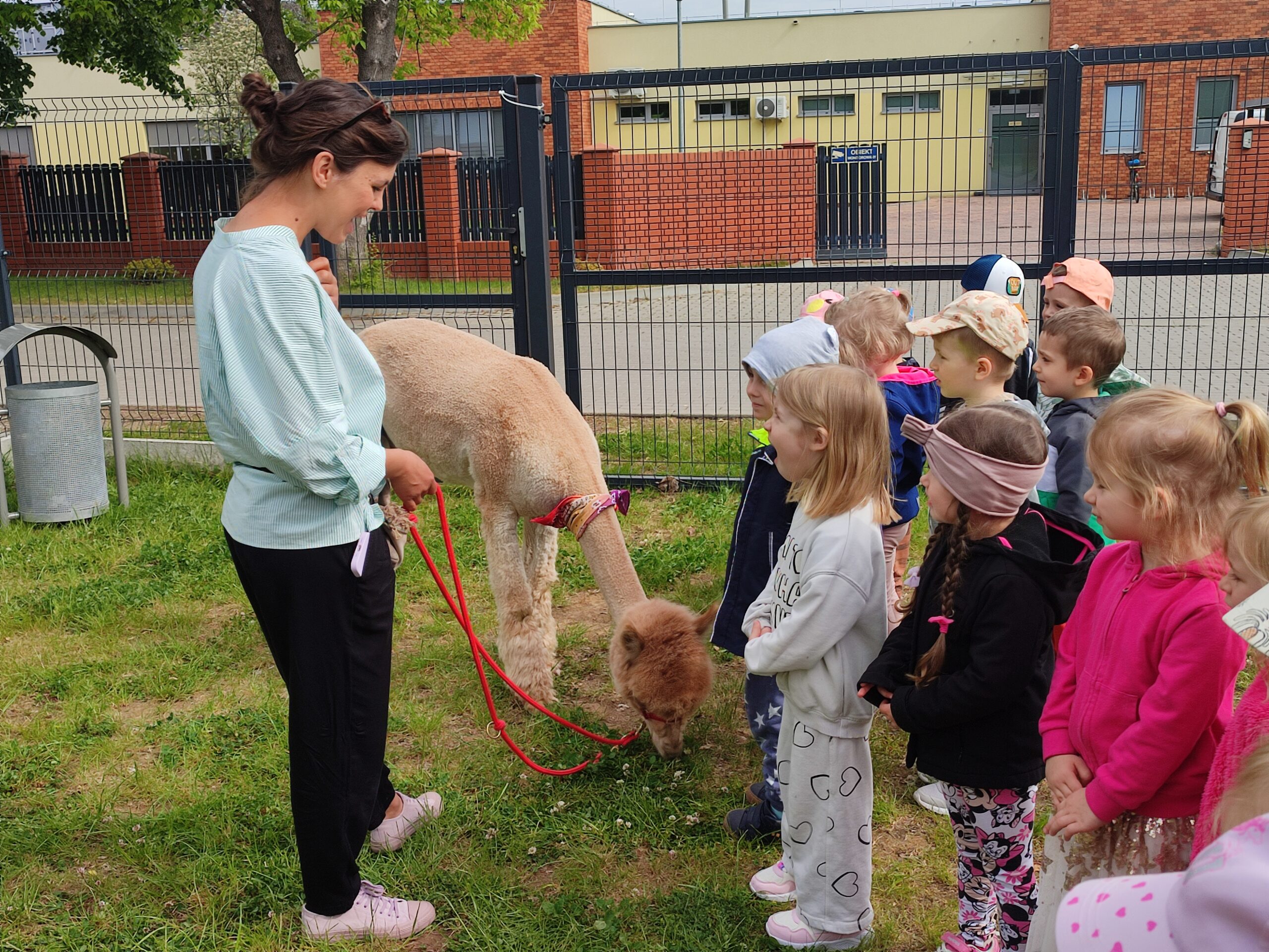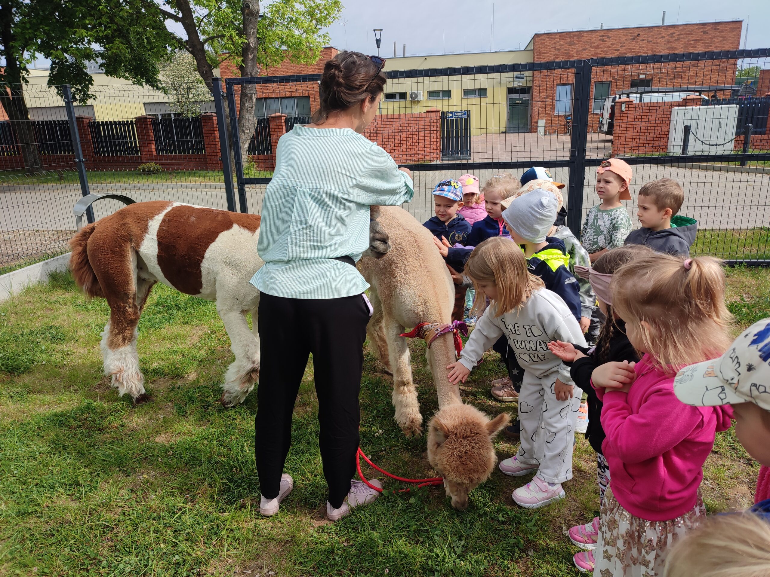 Dzieci z grupy 2 Biedronek odwiedziły alpaki, które dotarły do naszego przedszkola w poniedziałek. Mogliśmy pogłaskać te miłe zwierzątka i poczęstować marchewką. Dla dzieci była to niezwykła przygoda. Na pamiątkę tego spotkania każde dziecko otrzymało zdjęcie z alpakami