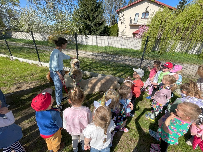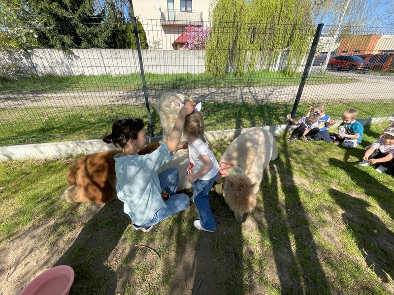 16 kwietnia dzieci spotkały się z nietypowymi gośćmi. Golden i Billy to bardzo przyjazne alpaki. Wszystkie „Żabki” były zachwycone. Podczas zajęć z alpakoterapii dzieci z radością karmiły alpaki marchewkami, przytulały je a także pozowały do zdjęć. Na koniec dzieci wykonały własną alpakę wykorzystując wełnę oraz kolorowe pomponiki.
