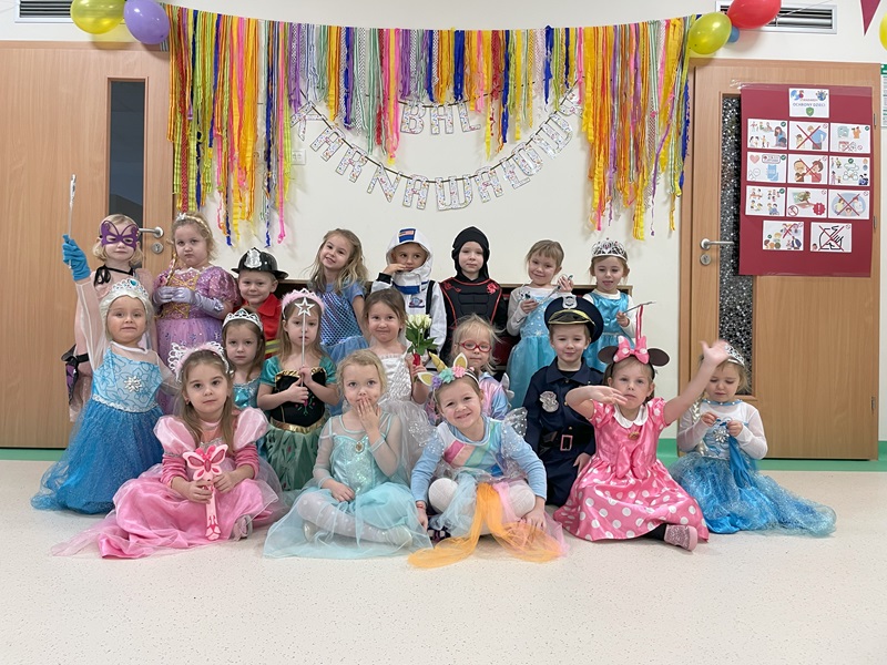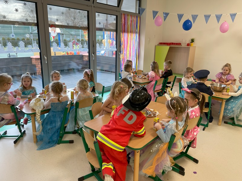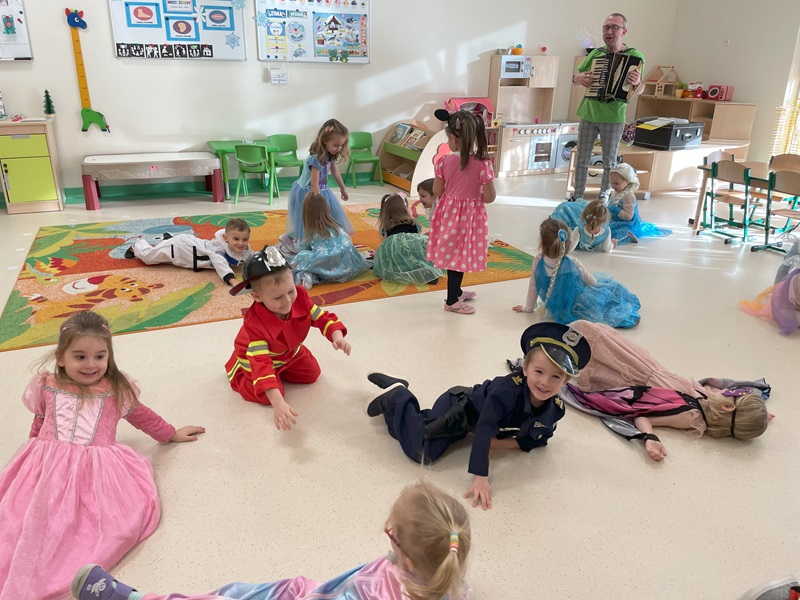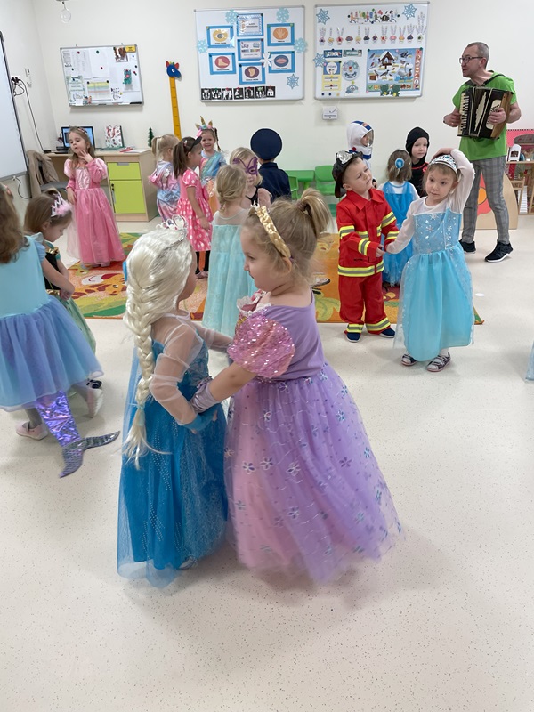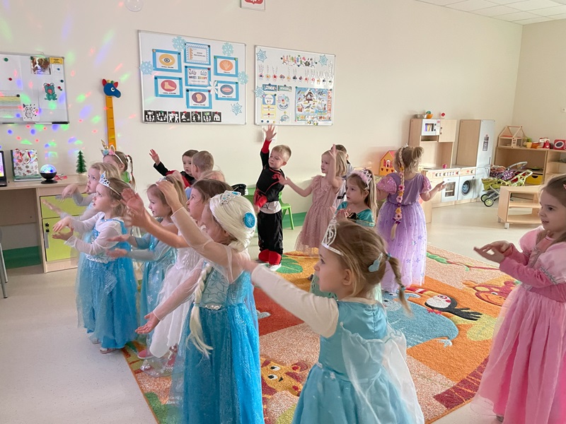 W dniu 23.01.2025r. w grupie „Żabek” odbył się bal karnawałowy. Tego dnia już od rana w przedszkolu pojawiały się kolorowe postacie. Dzieci przebrane były za bohaterów znanych bajek. W pierwszej kolejności dzieci miały możliwość pozowania do zdjęć indywidualnych i grupowych. Następnie odbyły się zabawy muzyczno – ruchowe. Przedszkolaki świetnie się bawiły. Następnie dzieci usiadły do słodkiego poczęstunku. Wspólna zabawa przyniosła wiele radości naszym wychowankom, a to było głównym celem tego balu.