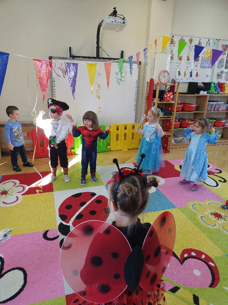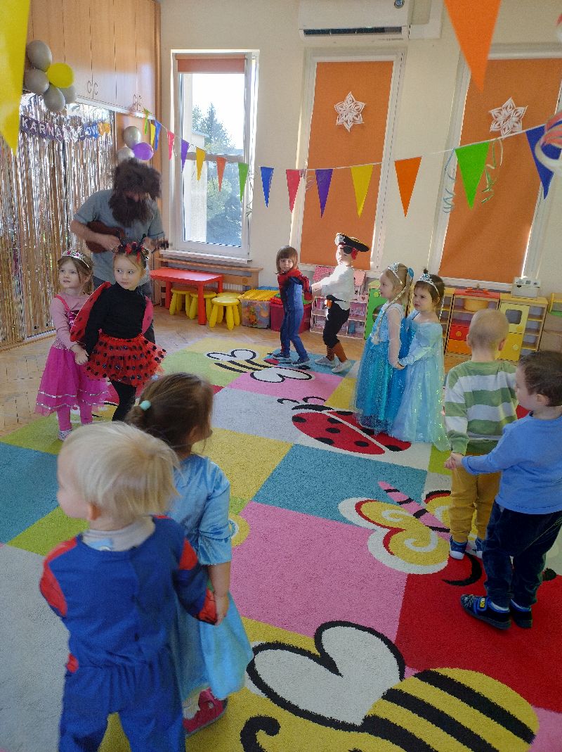 W środę 19 lutego 2025 r. w grupie Słoneczek odbył się wspaniały bal karnawałowy, który dostarczył dzieciom mnóstwo radości i niezapomnianych wrażeń. Piękne stroje karnawałowe dzieci i kolorowe dekoracje- wszystko to stworzyło w Sali bajkową atmosferę zachęcającą dzieci do zabawy. Przedszkolaki brały udział w różnorodnych zabawach tanecznych i konkursach. W trakcie balu dzieci miały okazję skosztować pysznych przekąsek. Bal zakończył się wspólnymi pamiątkowymi zdjęciami wszystkich uczestników.
