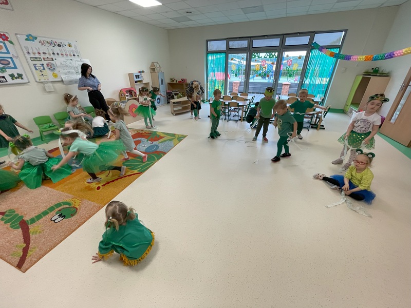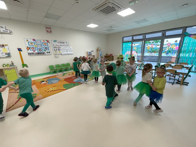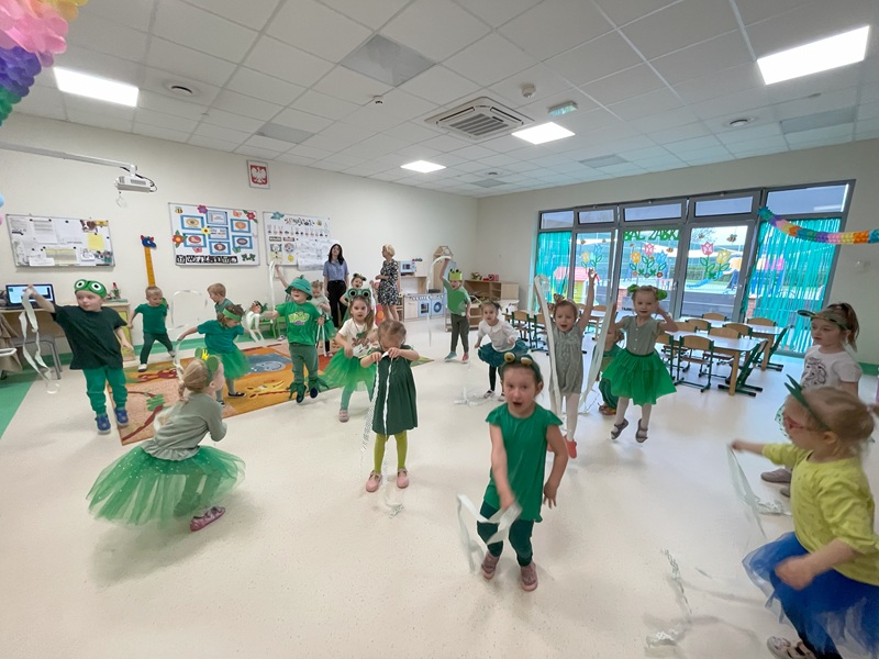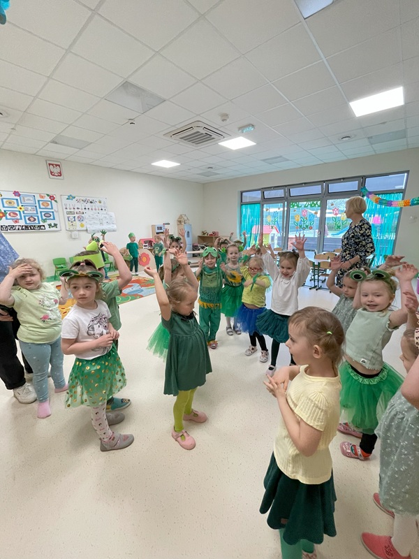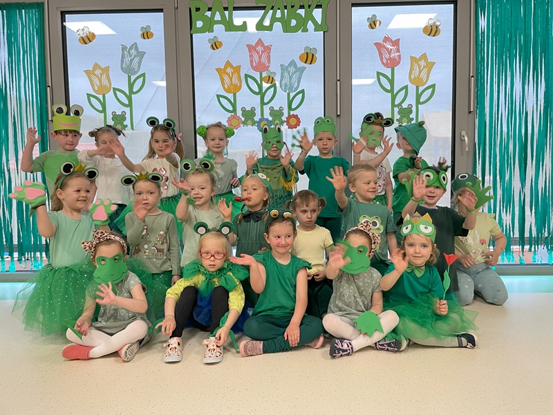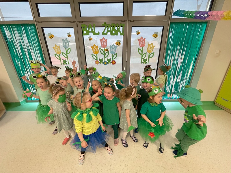 15-go kwietnia odbył się bal skaczącej żabki w ramach realizacji projektu z zakresu edukacji matematyczno-przyrodniczej „Żabki”. Dzieci tego dnia świetnie się bawiły. Były pełne radości i chęci do wspólnej zabawy. Każdy przedszkolak miał na sobie wspaniały strój żabki, który wspólnie z rodzicami przygotowywał z okazji balu. Celem było tworzenie atmosfery życzliwości, pozytywnych relacji w grupie, rozwijanie ekspresji ruchowej, tanecznej i muzycznej. Bal zakończył się smacznym poczęstunkiem, który został przygotowany przez rodziców.