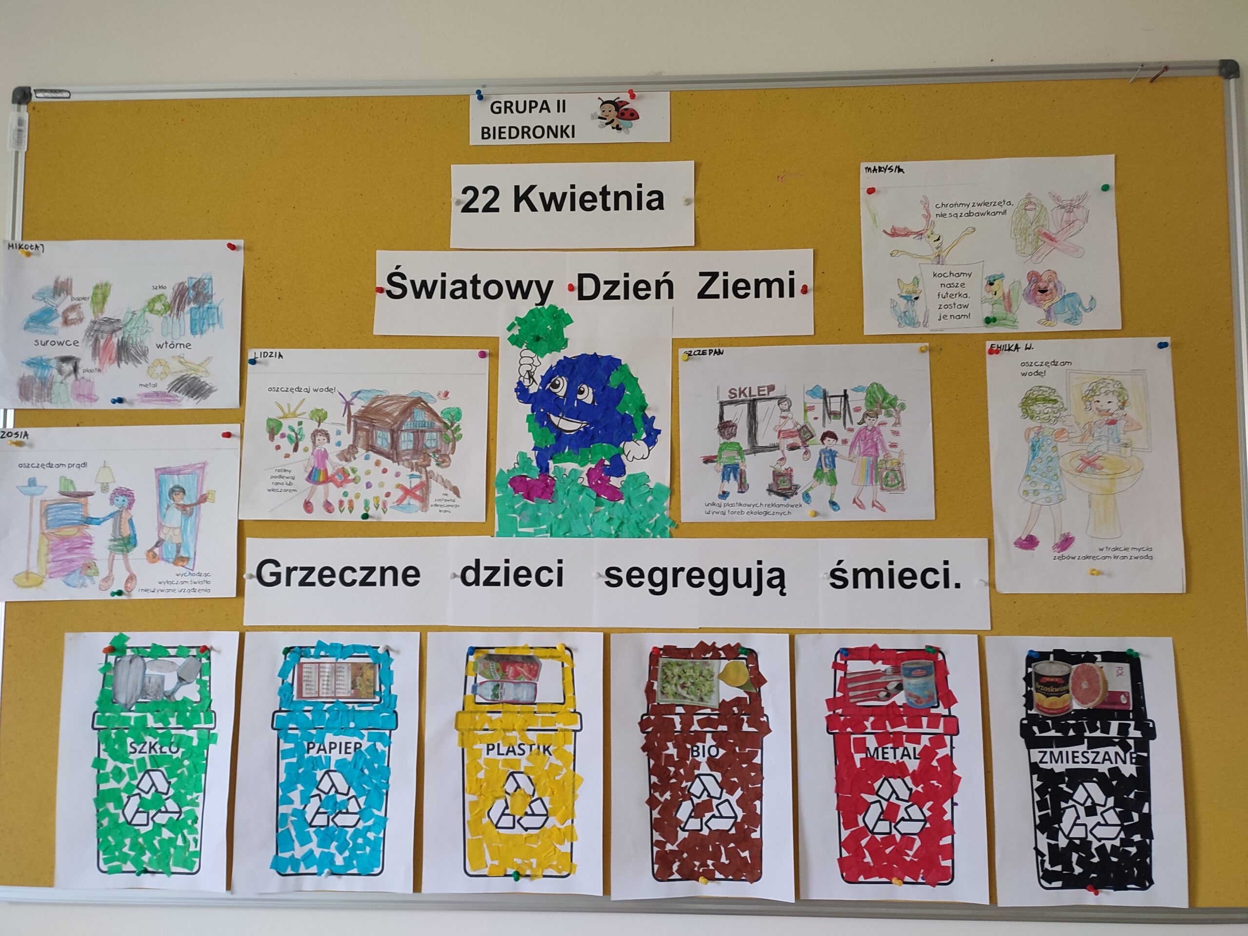 Biedronki obchodziły ,,Światowy Dzień Ziemi” . Post published:29 kwietnia, 2024 Post category:Wydarzenia 22 Kwietnia Biedronki obchodziły ,,Światowy Dzień Ziemi” . Dzieci dowiedziały się, że dzięki segregacji możliwe jest odzyskanie surowców wtórnych , takich jak papier , szkło czy plastik, które mogą być ponownie wykorzystane.