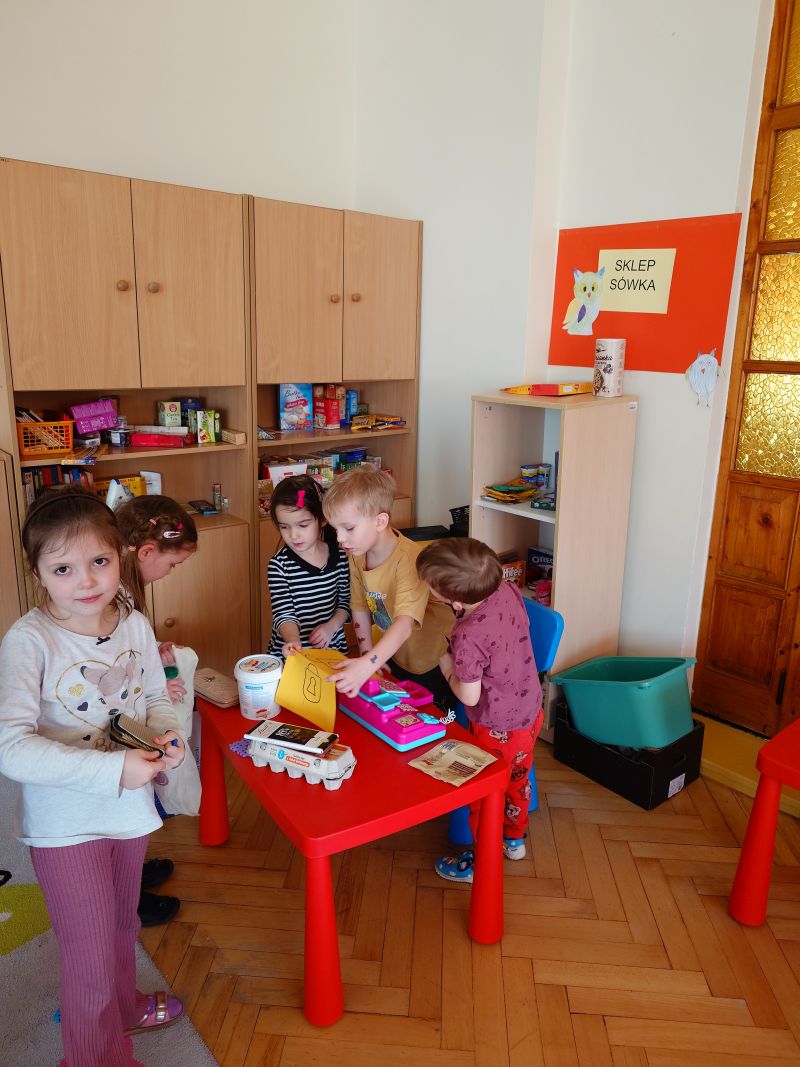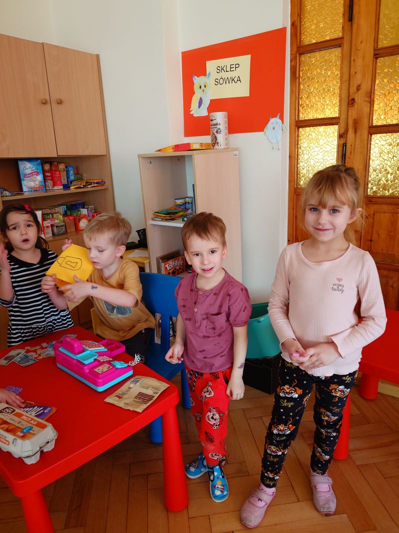 – bawiły się w sklep, który same zorganizowały zaopatrując w różne artykuły,