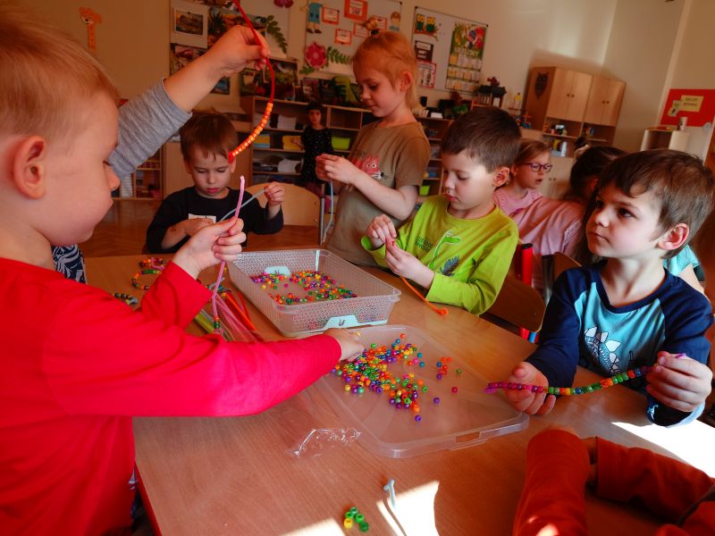 – chłopcy wykonali bransoletki z koralików dla swoich koleżanek i Pań z okazji Dnia Kobiet,