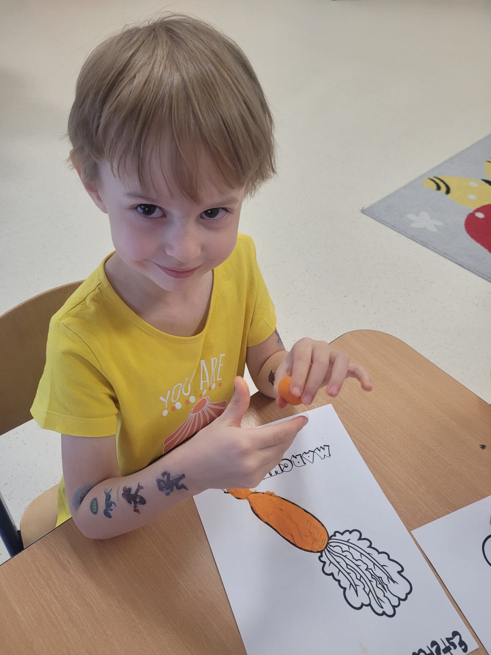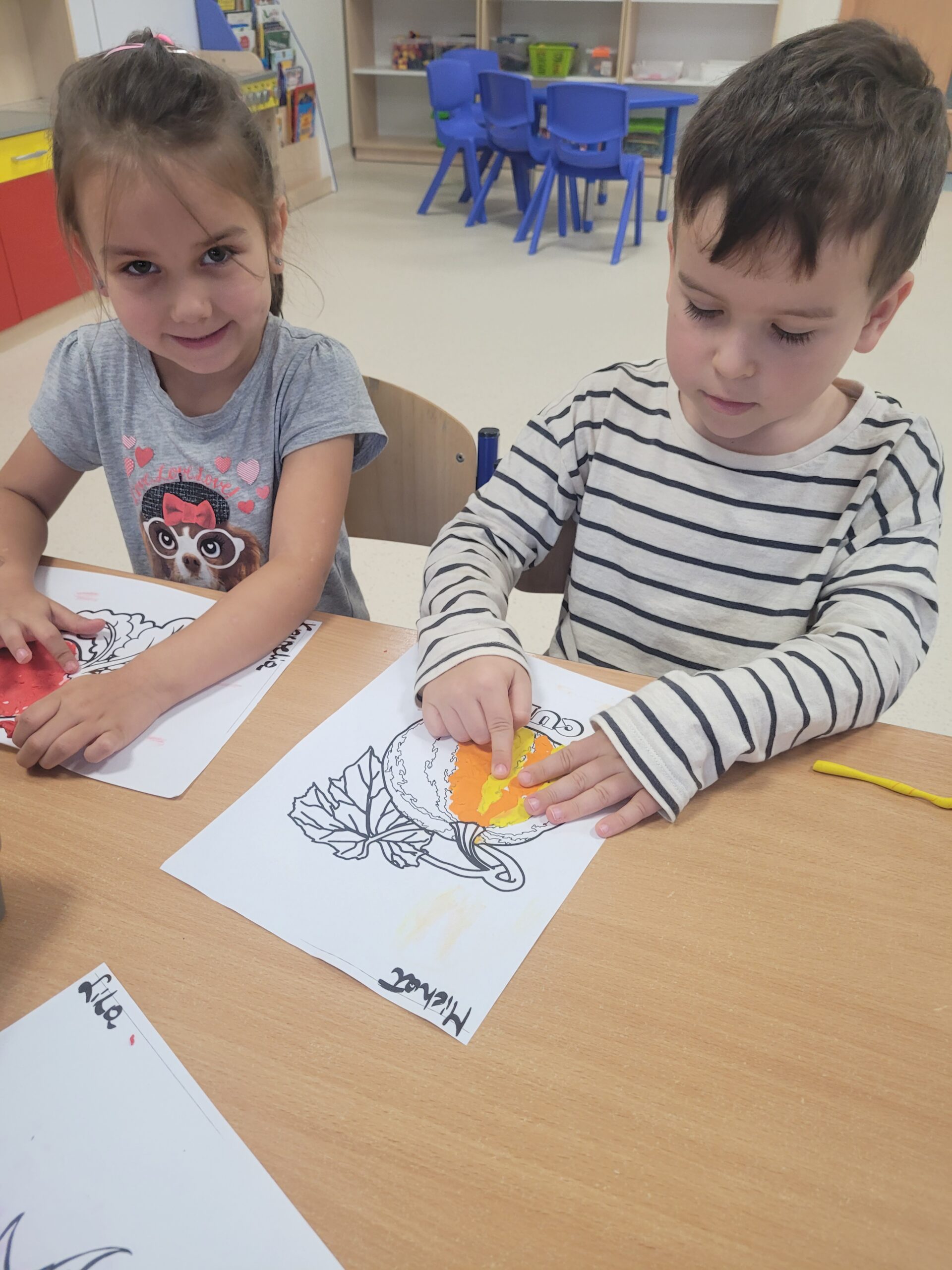 W grupie Kropek odbyły się zajęcia plastyczne, pt: „Dary z jesiennego koszyk.” Założeniem zajęć było rozwijanie umiejętności plastycznych, rozpoznawanie owoców i warzyw oraz pogłębianie wiedzy dotyczącej darów jesieni. Następnie „Kropki” wykonały przepiękne pracę plastyczne.