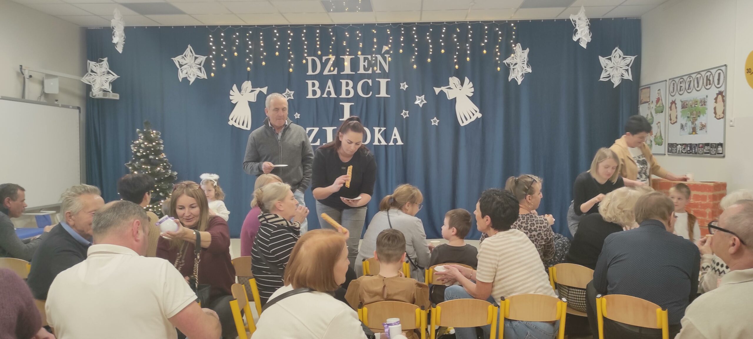 31 stycznia salę naszej grupy licznie wypełnili długo wyczekiwani goście. W tym dniu bowiem Jeżyki zorganizowały spotkanie z babciami i dziadkami. Z okazji ich święta, dzieci przygotowały dla dziadków program artystyczny, po którym nastąpiło wręczenie przygotowanych wcześniej upominków oraz sympatyczny poczęstunek.