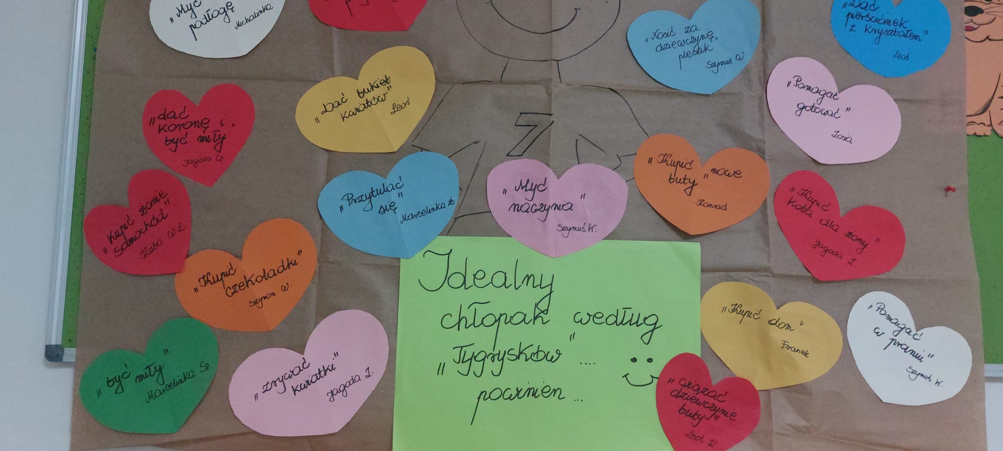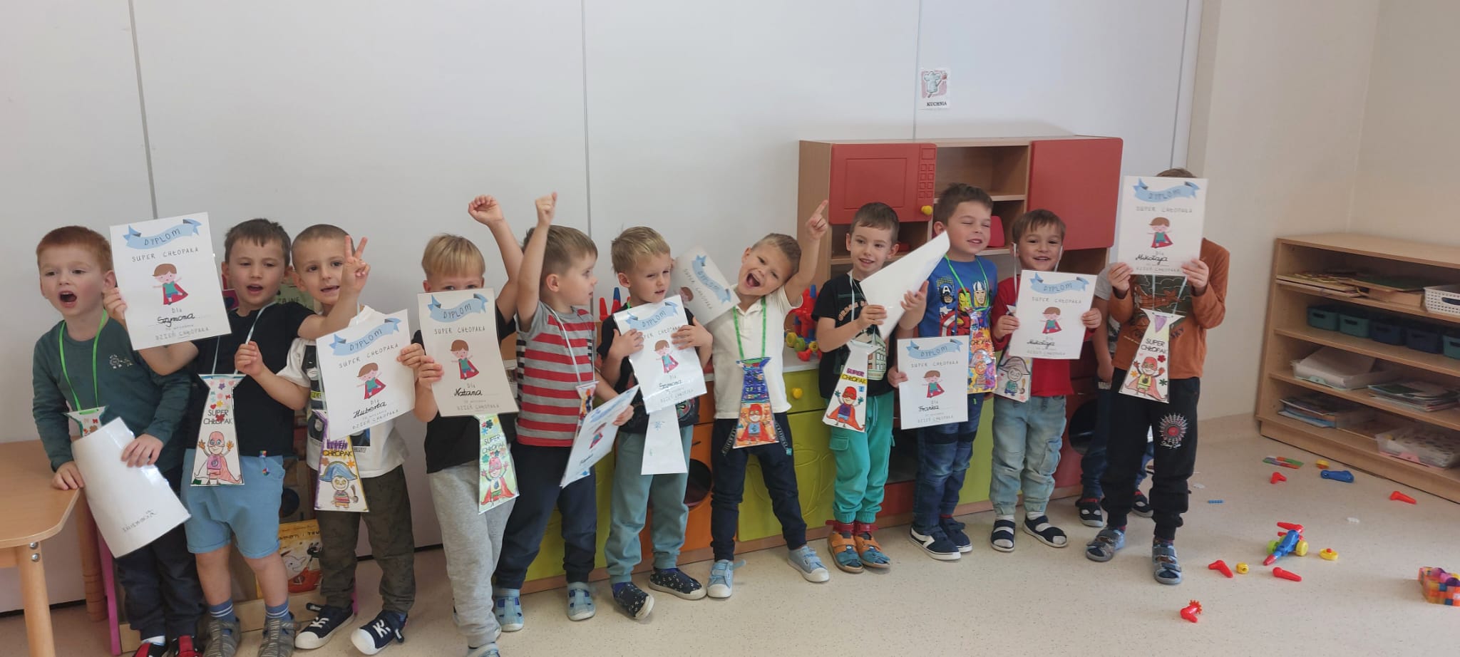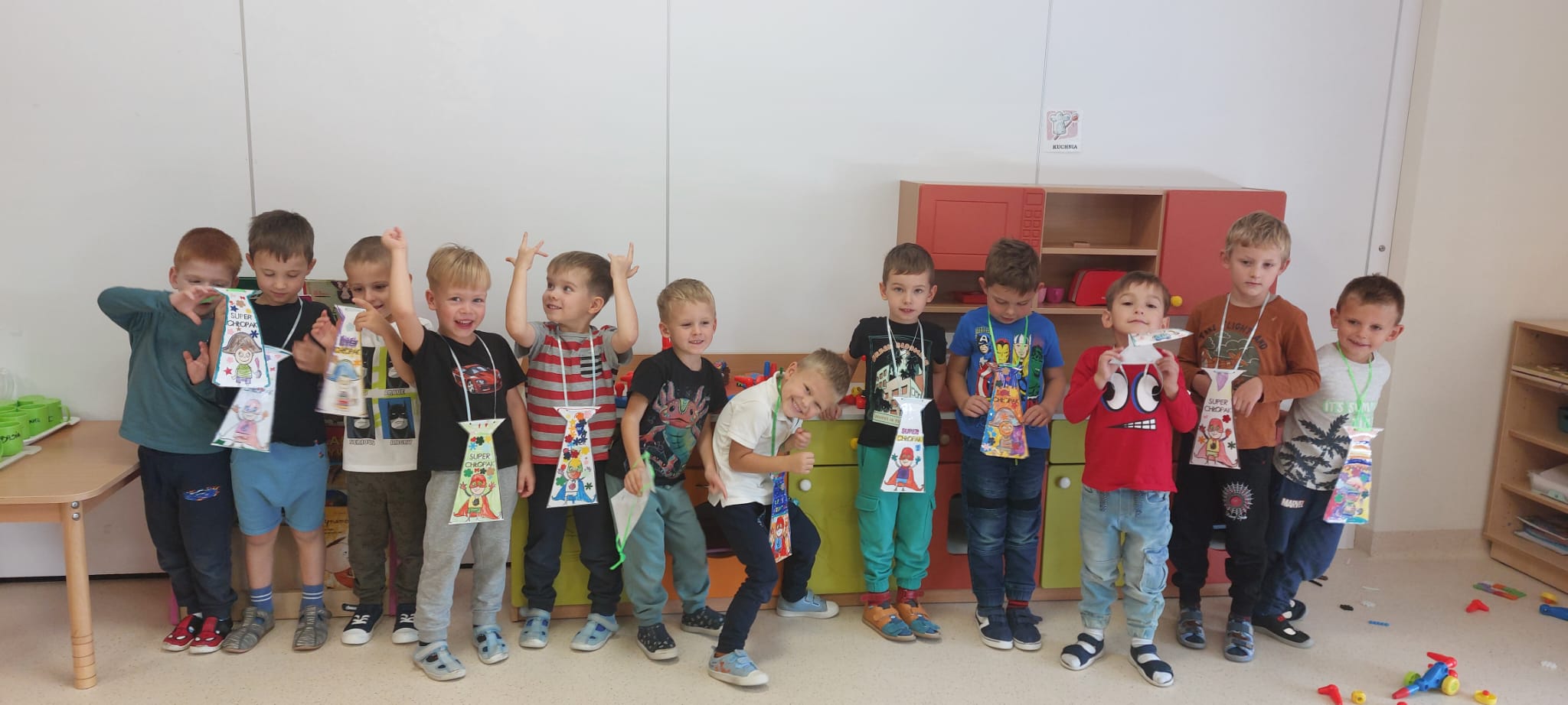 W poniedziałek, 30 września, w naszym przedszkolu odbyły się wyjątkowe obchody Dnia Chłopaka. Z tej okazji dziewczynki przygotowały dla swoich kolegów niezwykle miłe niespodzianki. Od samego rana w przedszkolu panowała radosna atmosfera, a dzieci z podekscytowaniem czekały na wspólne świętowanie. Dziewczynki wręczyły chłopcom symboliczne prezenty (wspaniałe krawaty), które spotkały się z dużym entuzjazmem. Oprócz oficjalnych części uroczystości, dzień upłynął w niezwykle miłej atmosferze. Tygryski zadbały o smaczne przekąski i wystrój sali. Przedszkolaki spędziły czas na wspólnych zabawach, tańcach i grach. Następnie z pomocą Pani Anety, dzieci przygotowały plakat na dzień Chłopaka, na którym znalazły się wypowiedzi Tygrysków na temat: „Jaki powinien być idealny chłopak”. Odpowiedzi dzieci bawią i wzruszają do łez! Obchody Dnia Chłopaka w naszym przedszkolu stały się wspaniałą okazją do integracji grupy oraz wzmocnienia więzi między dziećmi. Wspólna zabawa i serdeczne gesty sprawiły, że każdy chłopiec poczuł się tego dnia wyjątkowo. Dzięki zaangażowaniu dziewczynek, które złożyły życzenia i wręczyły prezenty, dzień ten na długo pozostanie w pamięci wszystkich przedszkolaków.