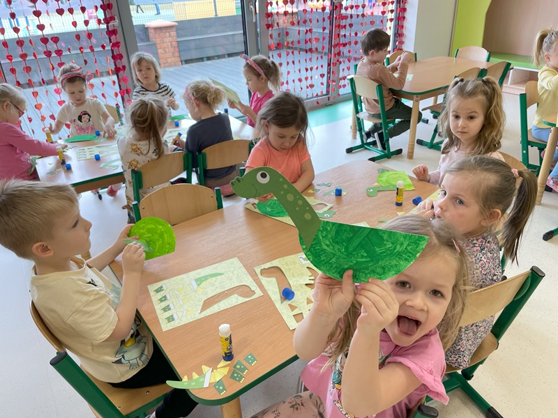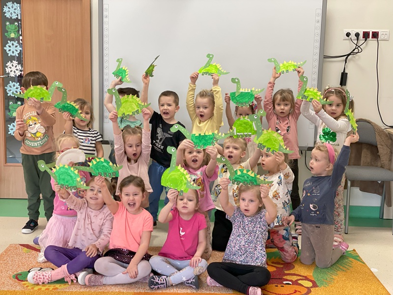 26 lutego dzieci z grupy III świętowały Dzień Dinozaura. Dzień bardzo lubiany przez przedszkolaki. Z tej okazji pogłębiliśmy wiedze na temat tych ogromnych i tajemniczych zwierząt. Dzieci z wielką pasją opowiadały co wiedzą i demonstrowały jak się zachowywały i poruszały te prehistoryczne stworzenia. Następnie dzieci z wielką radością wykonały swoje własne dinozaury z papierowych talerzyków.