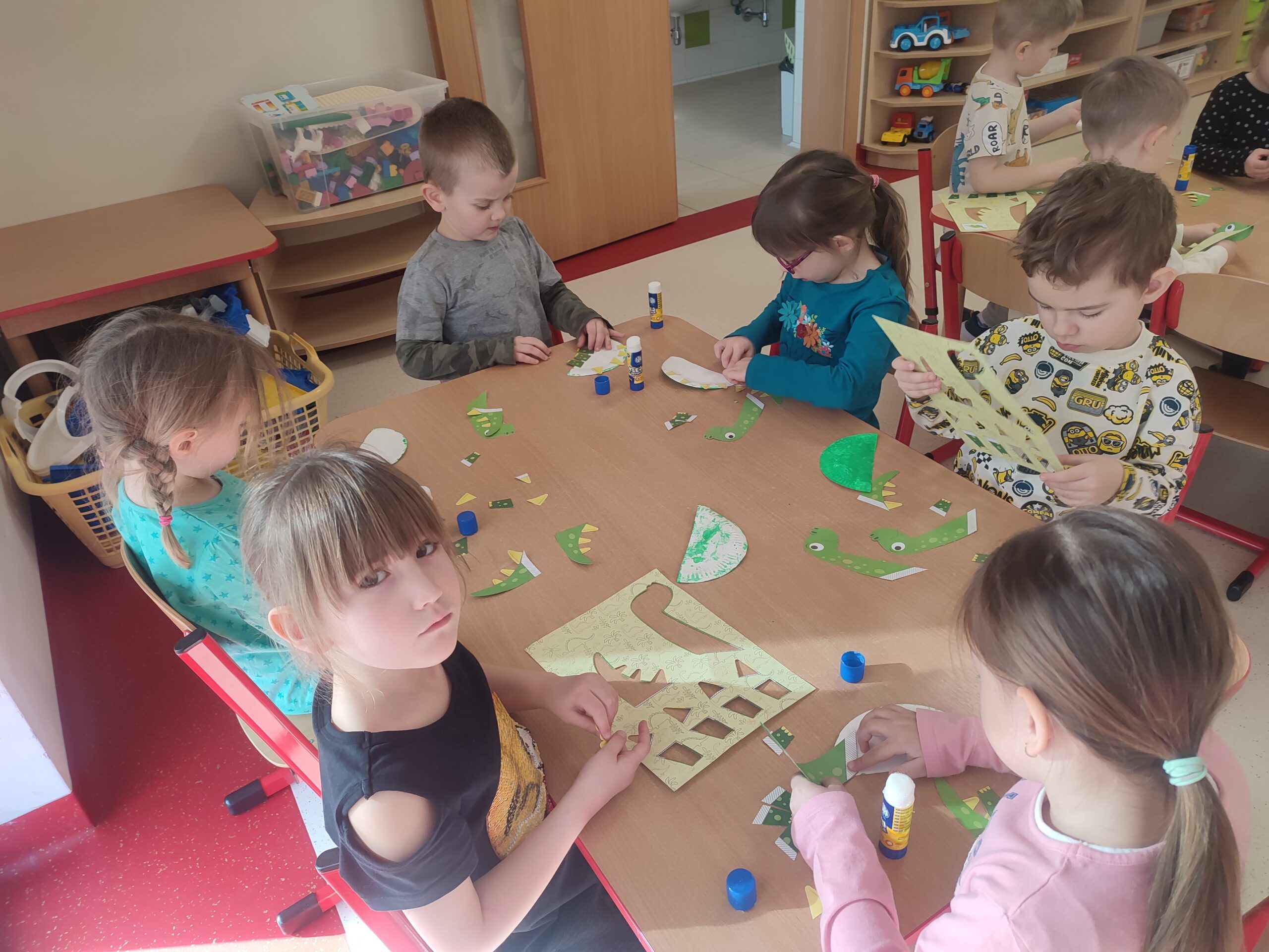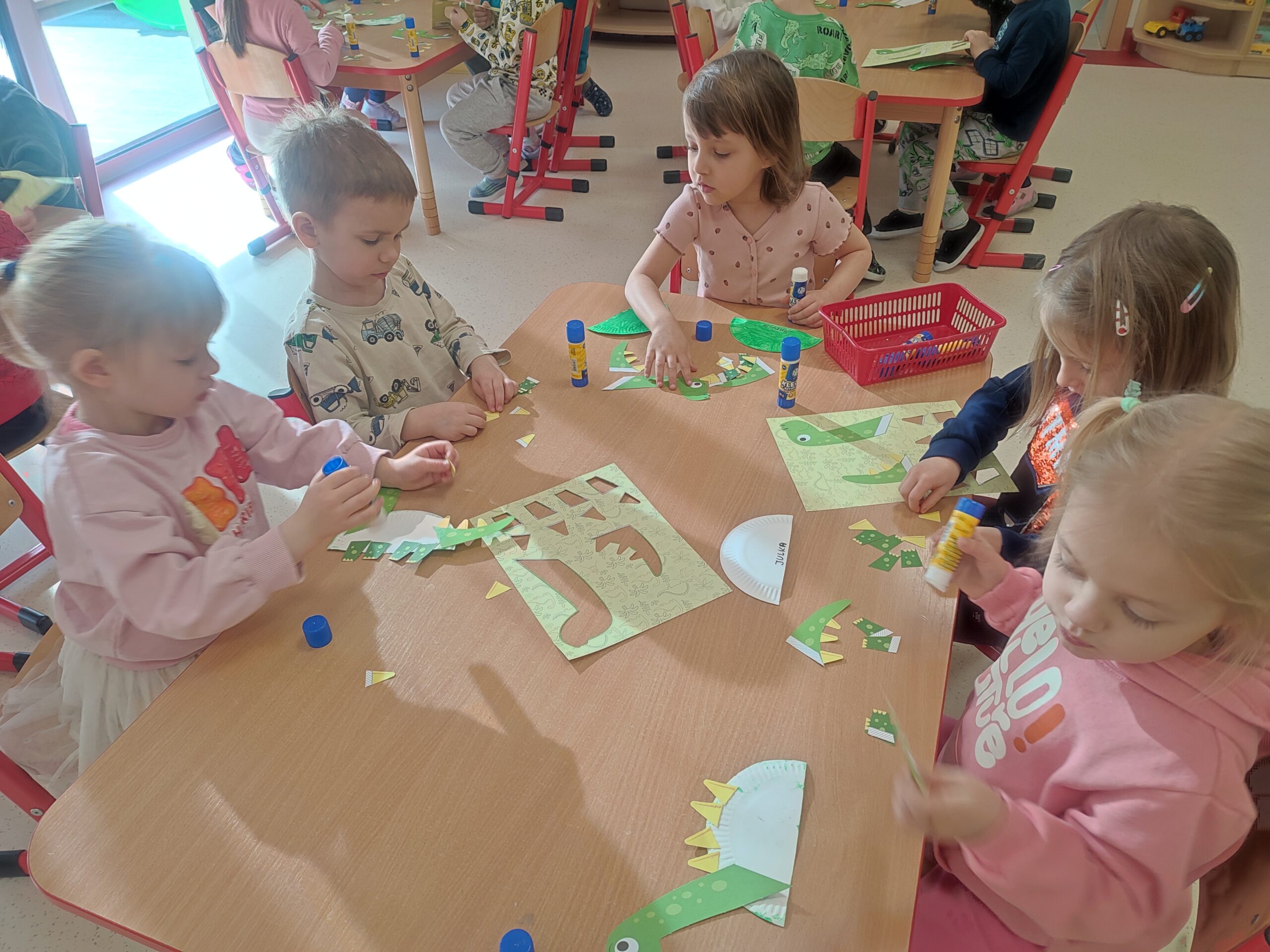 Dzień Dinozaura Post published:24 marca, 2025 Post category:Wydarzenia Grupa VI - Biedronki Grupa 4 Biedronki obchodziła Dzień Dinozaura. Dzieci ten czas celebrowały wykonując pracę plastyczną, nauczyły się piosenki o dinozaurach, poznawały jak kiedyś żyły dinozaury oraz wykonywały kolorowanki tematyczne doskonale się przy tym bawiąc.