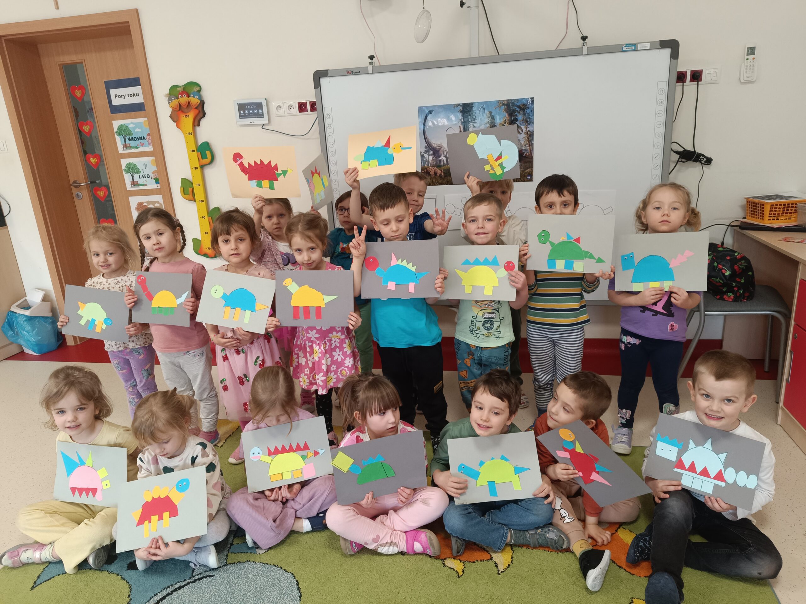 25 lutego obchodziliśmy Dzień Dinozaura w celu przypomnienia o istnieniu tych wyjątkowych stworzeń. Młodzi odkrywcy przyrody obejrzeli film edukacyjny, poszerzyli wiedzę o tych gadach, klimacie oraz roślinności sprzed milionów lat. Były zabawy ruchowe i prace plastyczne utrwalające nazwy figur geometrycznych.