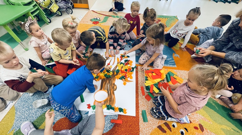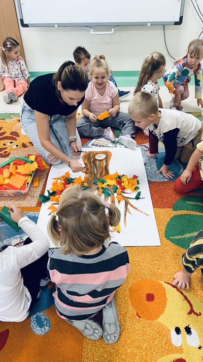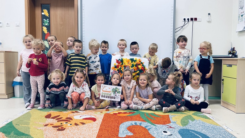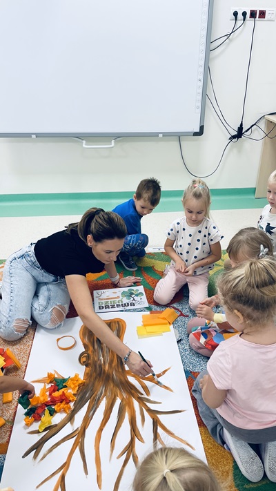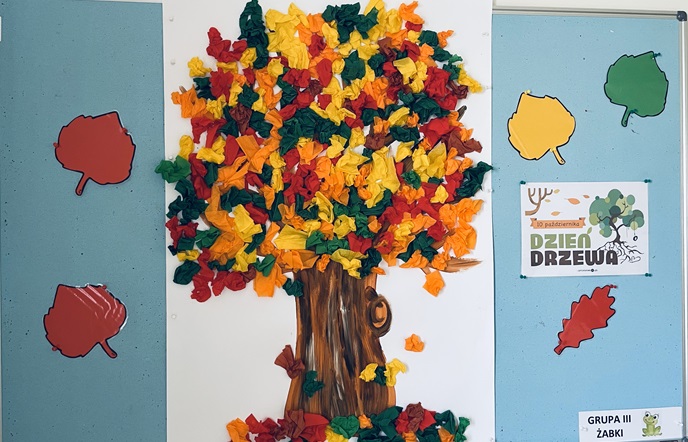 10 października dzieci z grupy „Żabek” świętowały Dzień Drzewa. Zapoznały się z wszystkimi ważnymi ciekawostkami podczas rozmowy i oglądania filmu edukacyjnego na temat drzew, ich znaczenia w przyrodzie oraz jak bardzo ważną rolę odgrywają w naszym życiu. Następnie dzieci wykonały piękne jesienne, kolorowe drzewo z bibuły.
