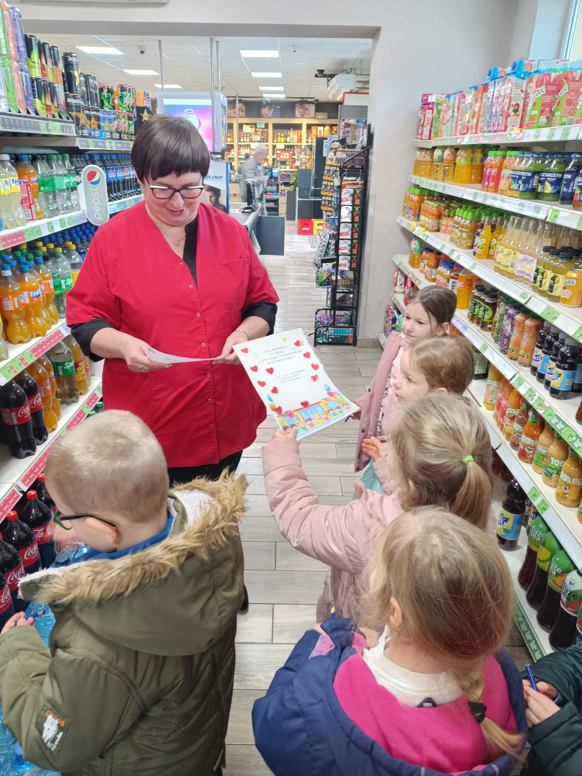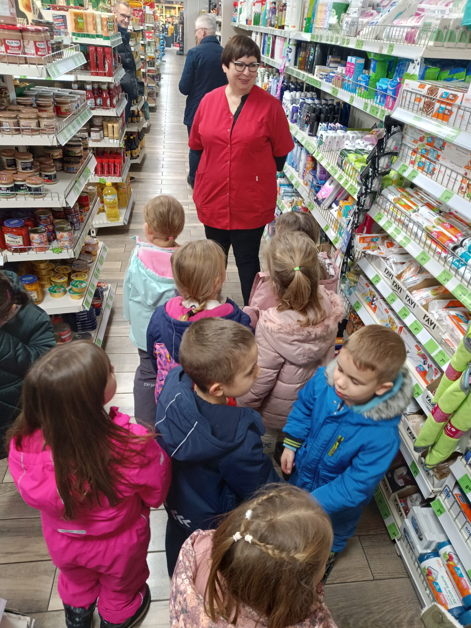 Z Okazji Dnia Handlowca oraz w ramach realizacji preorientacji zawodowej, 2 lutego, nasze Biedroneczki wybrały się na wycieczkę do pobliskiego sklepu. Dzieci miały okazję poznać zawód sprzedawcy oraz poznać zasady funkcjonowania sklepu. Zadawały pytania i zaglądały w miejsca niedostępne dla kupujących. Poznały drogę towarów zanim trafią na sklepowe półki i do koszyka. Był to ciekawie i wartościowo spędzony czas.