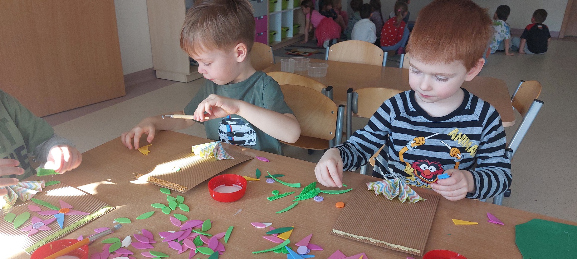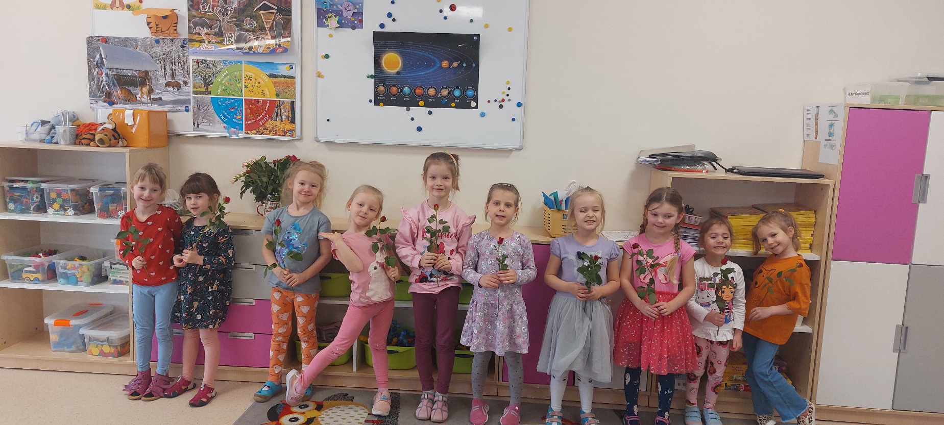W związku z obchodami „Dnia Kobiet” mali mężczyźni z grupy ,,Tygryski” przygotowali dla swoich koleżanek piękne upominki. Chłopcy samodzielnie wykonali przepiękne obrazki z motywem kwiatowym oraz wręczyli każdej z małych dam po pięknej różyczce. Chłopcy przypomnieli sobie również, że o kobiety należy dbać nie tylko od święta, tylko każdego dnia.