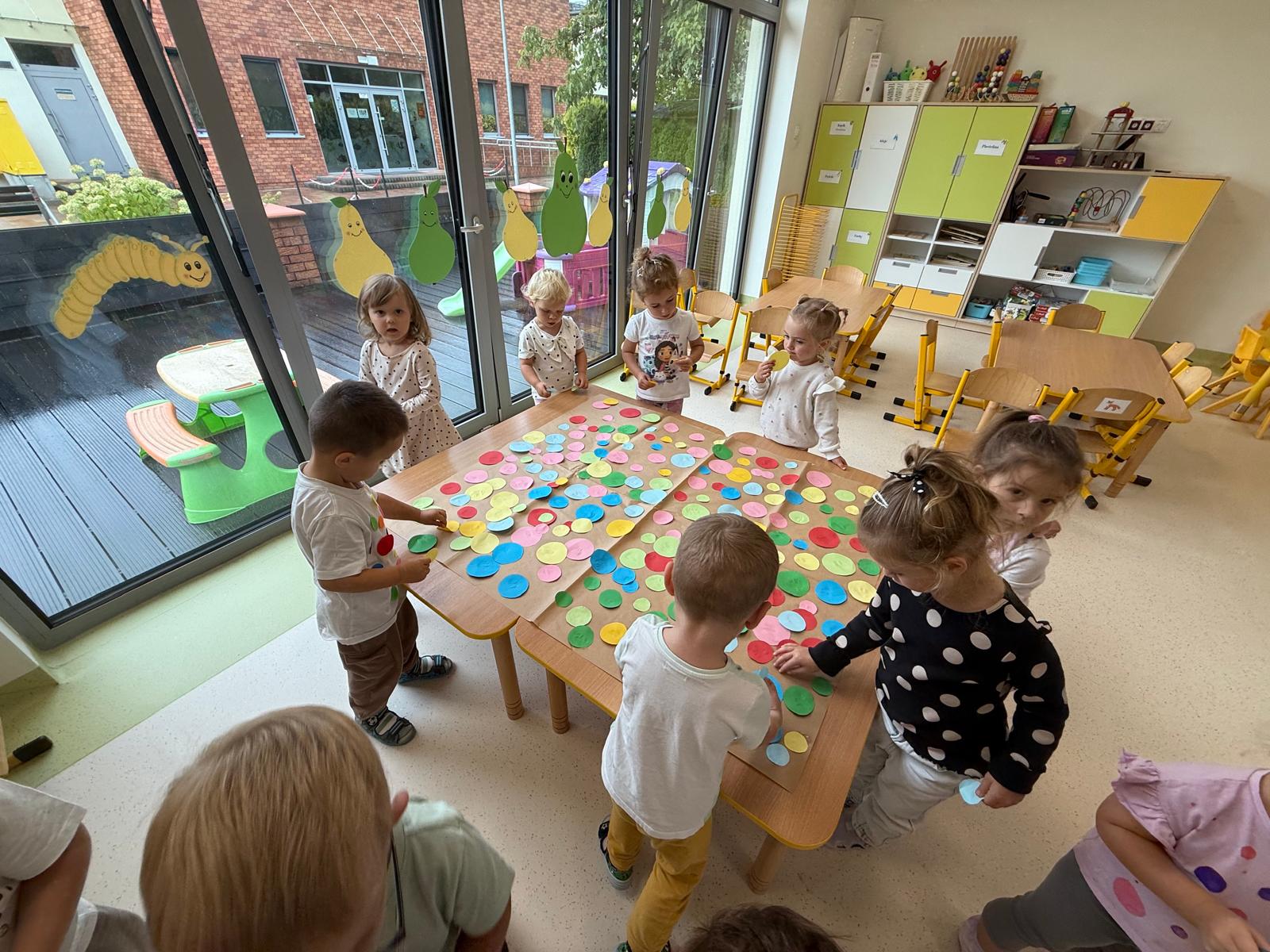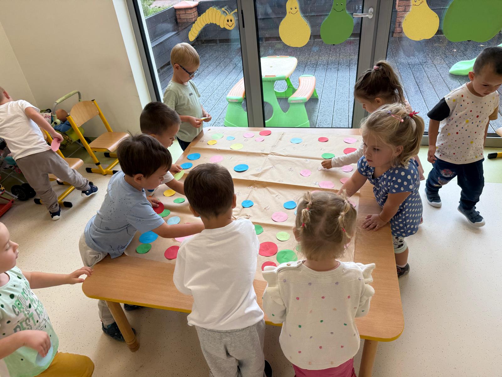 Gruszki w poniedziałek świętowały Międzynarodowy Dzień Kropki – wyjątkowe święto odwagi, kreatywności i wiary we własne możliwości. Dzieci odkrywały, że nawet z małej kropeczki może powstać coś wielkiego! Były zabawy plastyczne, kolorowe kropki na papierze, ubraniach i wesołych buziach. Każda Gruszka mogła poczuć, że jej pomysł jest ważny i wyjątkowy. 🌟 To był dzień pełen radości, twórczości i wspólnej zabawy, w którym nasze Gruszki pokazały, że potrafią rozkwitać tak pięknie, jak tylko one potrafią!