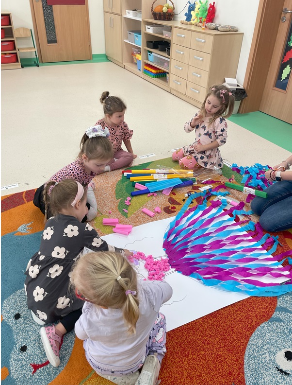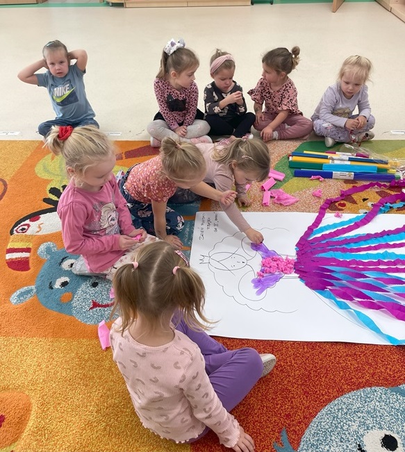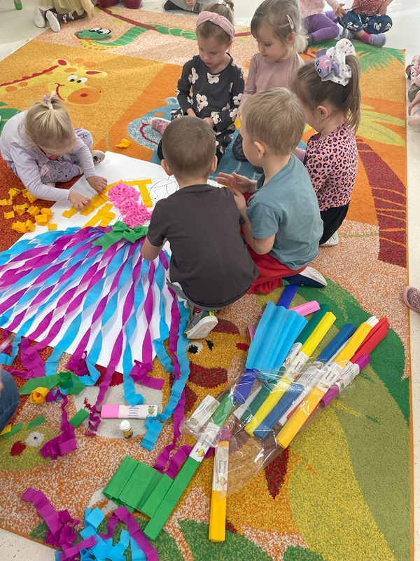 5 Listopada dzieci z grupy „Żabek” świętowały Dzień Postaci z Bajek. Jako pierwsza była zabawa „Jaka to melodia”- dzieci odgadywały tytuły bajek po piosenkach. Rozmawialiśmy o ulubionych bajeczkach w telewizji, bajeczkach czytanych a także o ulubionych bohaterach. Następnie dzieci wykonały piękną księżniczkę z kolorowej bibuły.