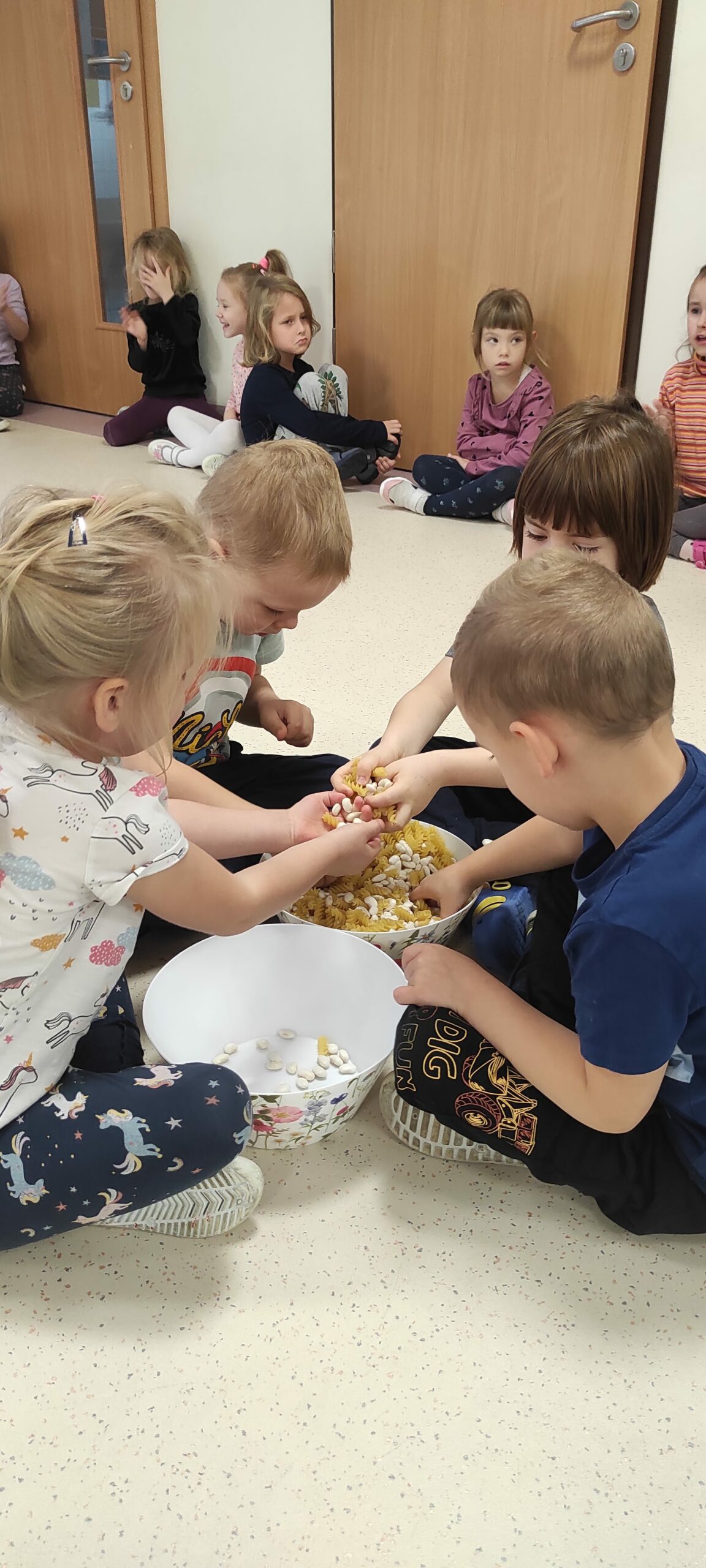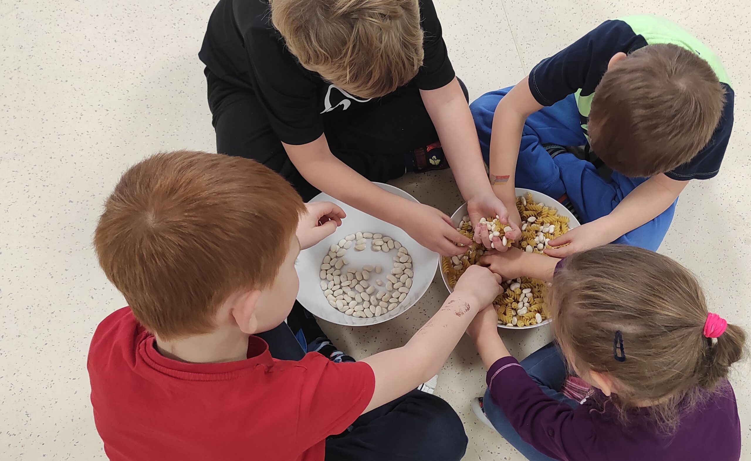 - sprawność manualną podczas segregowania makaronu i fasoli,