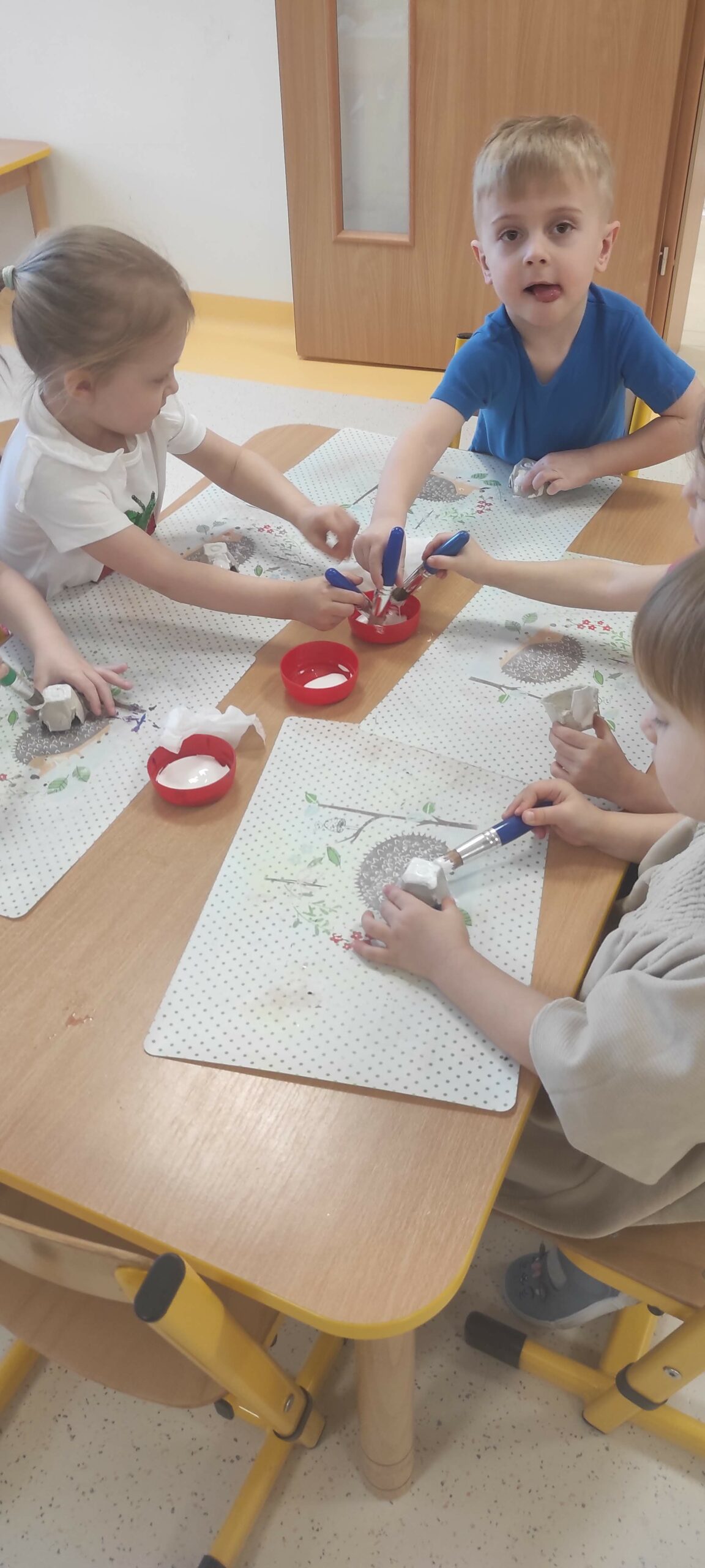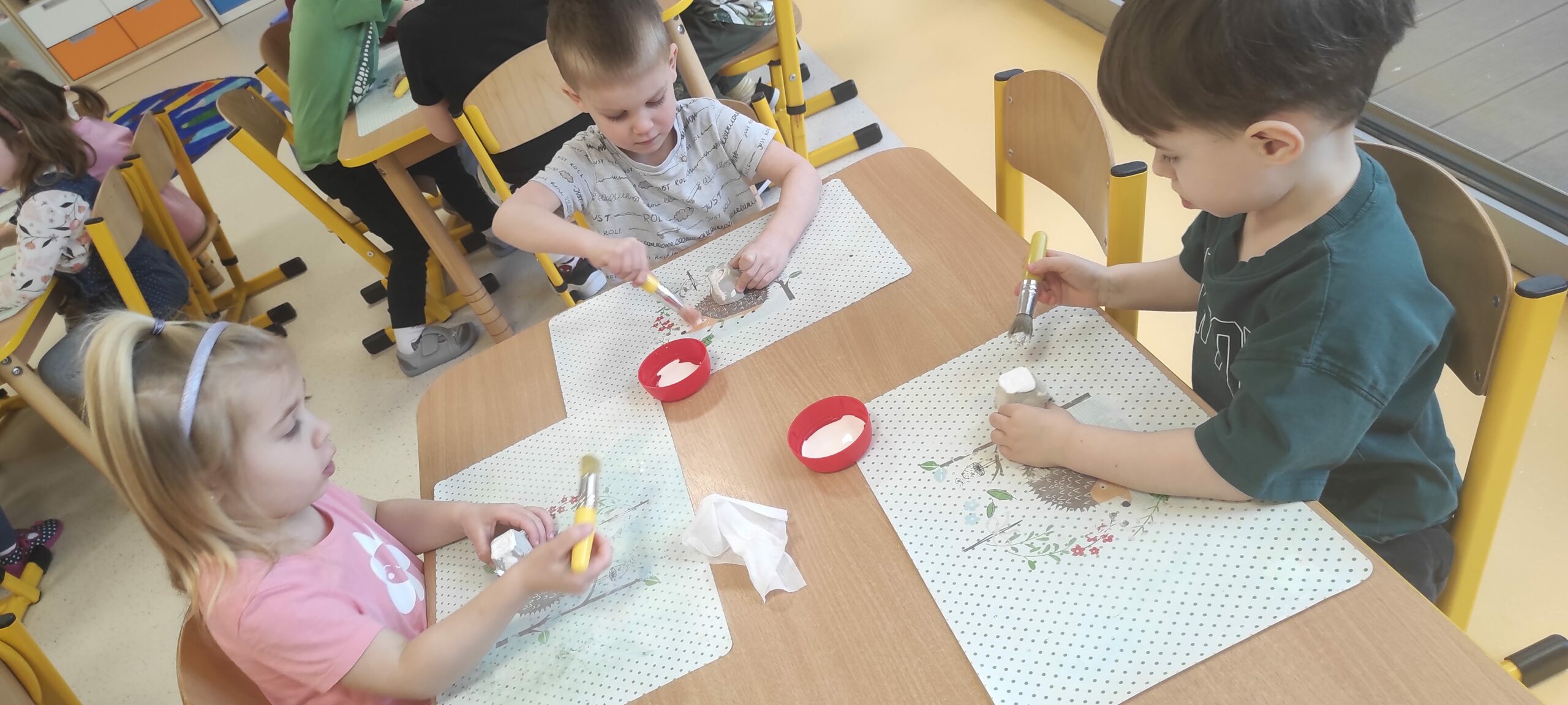 Z okazji przypadającego 5. marca Dnia Stomatologa „Jeżyki” nie tylko przypomniały sobie zasady dbania o higienę jamy ustnej, ale także poznały jej budowę oraz dowiedziały się, czym zajmuje się stomatolog. W ramach zajęć obejrzały film edukacyjny o pracy dentysty, wysłuchały opowiadania „Zuzia idzie do stomatologa” z cyklu „Mądra mysz” oraz własnoręcznie stworzyły model szczęki. Efekty ich pracy można podziwiać w holu przedszkola. A co najważniejsze, w sposób praktyczny zadbały o zdrowie swoich zębów solidnie szczotkując je po zjedzonym śniadanku.