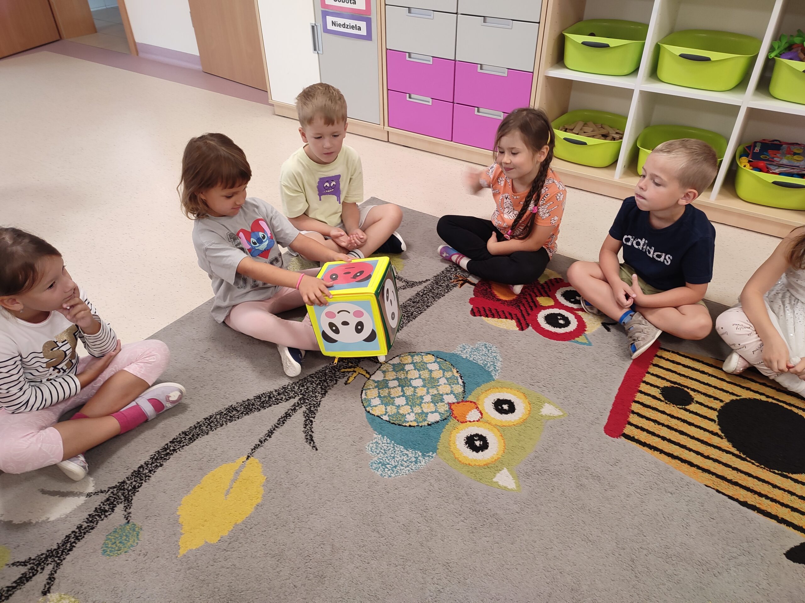 Emocje Post published:22 września, 2025 Post category:Wydarzenia Grupa VI - Biedronki Emocje towarzyszą nam każdego dnia. Dzieci poprzez zajęcia plastyczne mogły je wyrazić w kolorowych barwach. W zabawie grupowej z kostką emocji mogły powiedzieć jak się dziś czują.