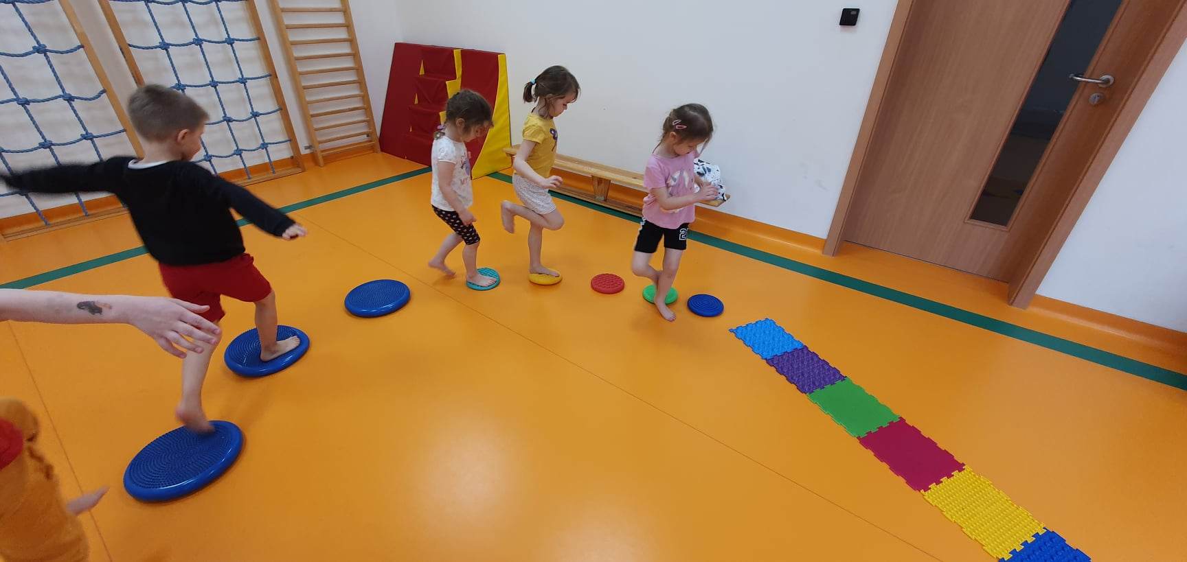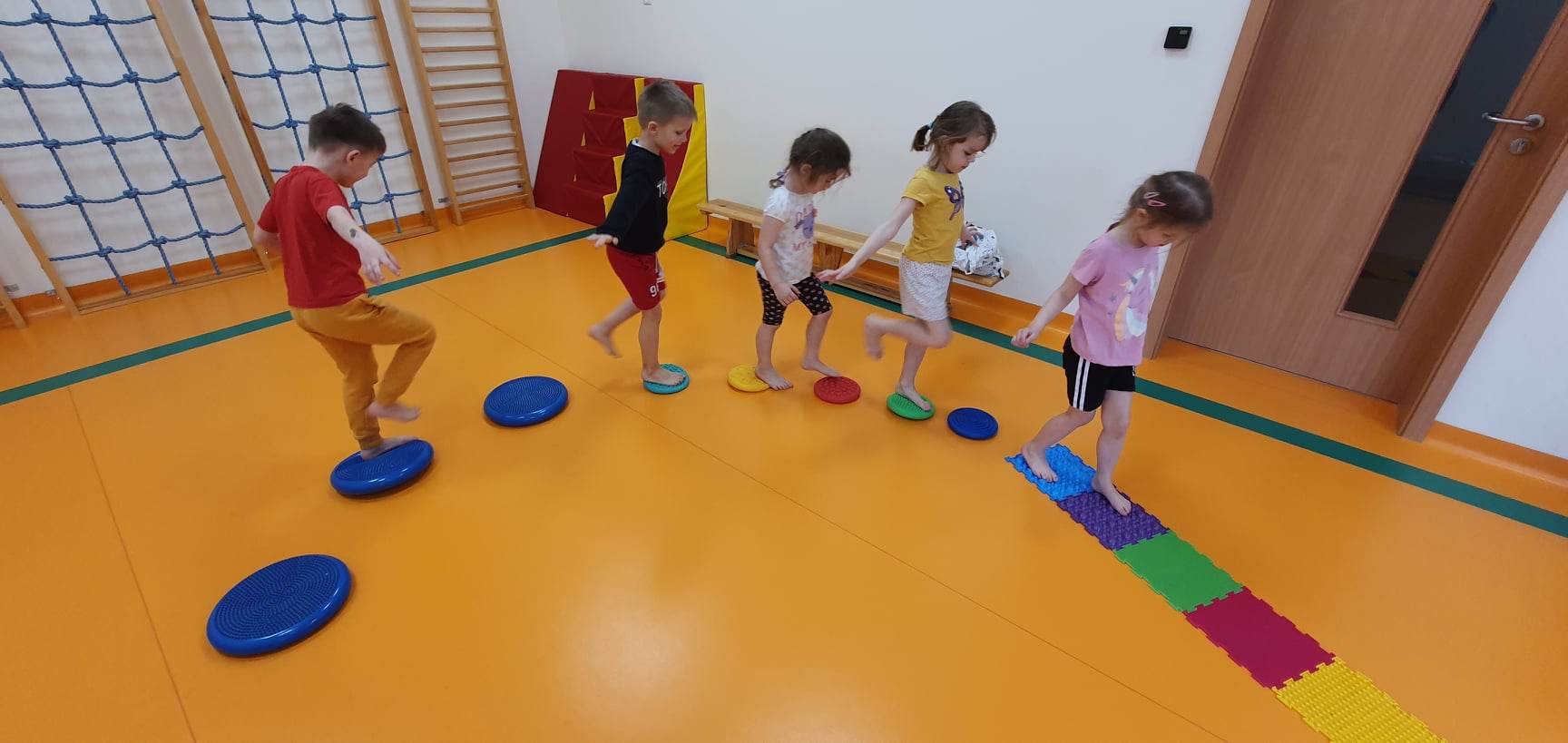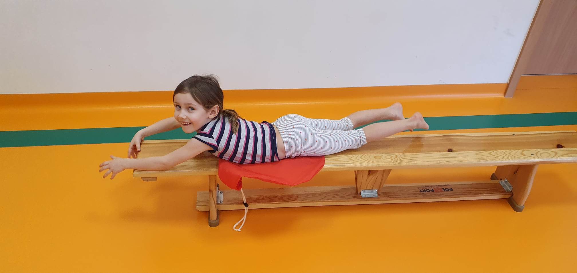 W Naszej placówce prowadzone są zajęcia ogólnorozwojowe z elementami gimnastyki korekcyjnej dla najmłodszych dzieci (grupy 3- latków) oraz gimnastyka korekcyjna w małych grupach dla tych dzieci, które potrzebują wsparcia wynikającego z wad postawy. Wiek przedszkolny uważany jest za okres krytyczny dla kształtowania postawy. W tym okresie występują najczęściej różnego rodzaju nieprawidłowości w postawie ciała, które rozwijają się i przekształcają w wady. Program zajęć gimnastyki korekcyjno – kompensacyjnej służy wspomaganiu prawidłowego rozwoju ruchowego dziecka, kształtowaniu prawidłowej postawy oraz eliminowaniu błędów w postawie dziecka.