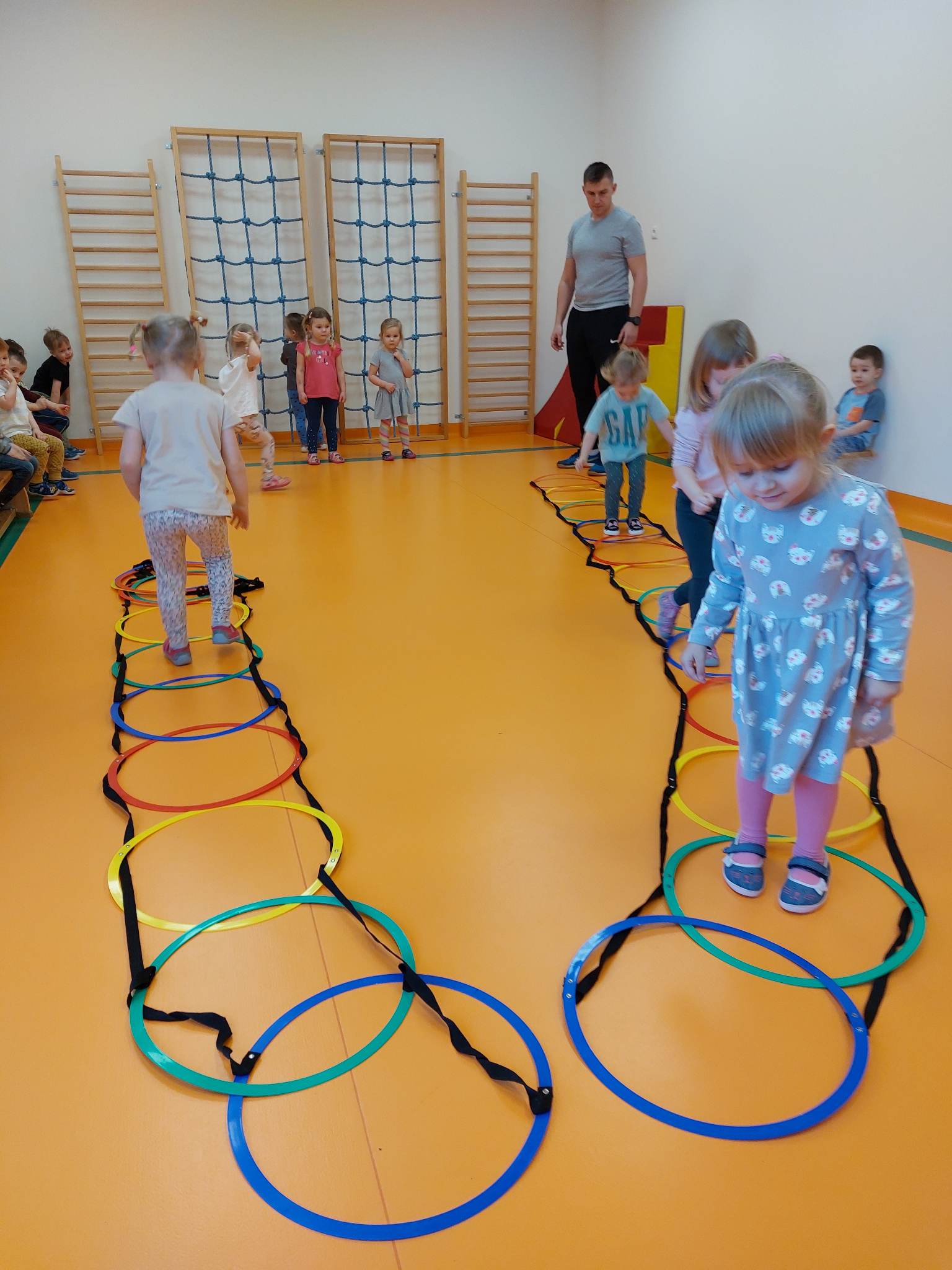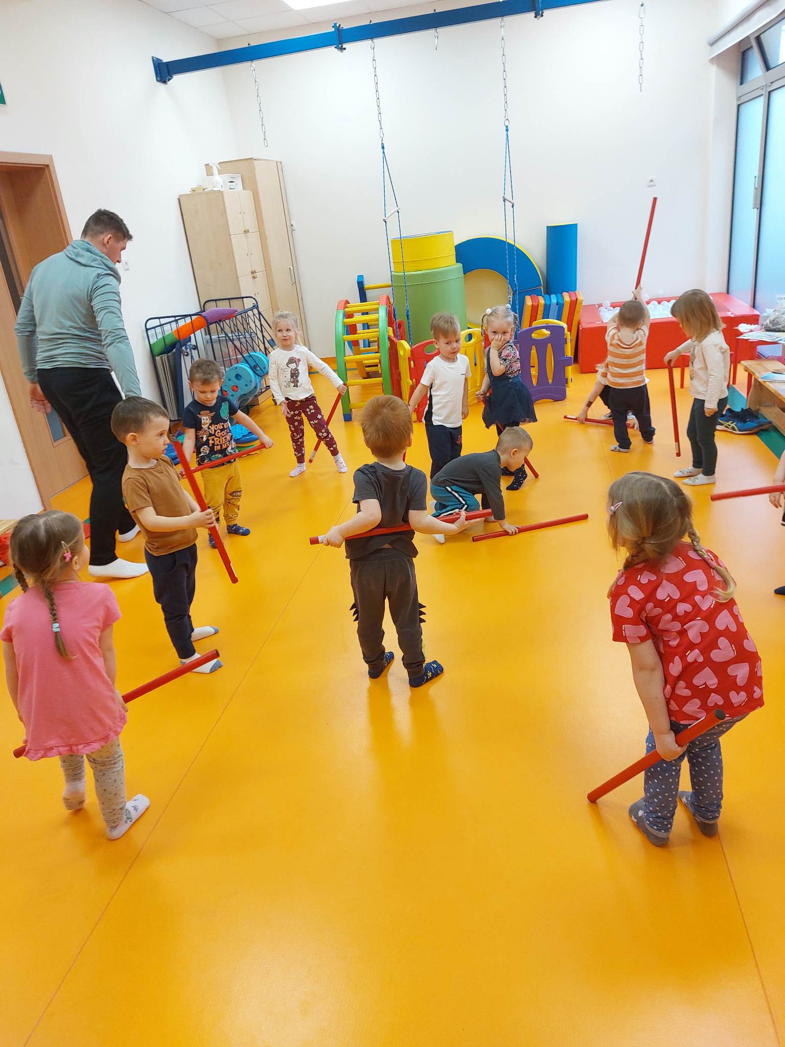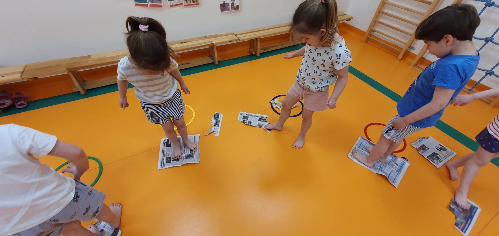 W Naszej placówce prowadzone są zajęcia ogólnorozwojowe z elementami gimnastyki korekcyjnej dla najmłodszych dzieci (grupy 3- latków) oraz gimnastyka korekcyjna w małych grupach dla tych dzieci, które potrzebują wsparcia wynikającego z wad postawy. Wiek przedszkolny uważany jest za okres krytyczny dla kształtowania postawy. W tym okresie występują najczęściej różnego rodzaju nieprawidłowości w postawie ciała, które rozwijają się i przekształcają w wady. Program zajęć gimnastyki korekcyjno – kompensacyjnej służy wspomaganiu prawidłowego rozwoju ruchowego dziecka, kształtowaniu prawidłowej postawy oraz eliminowaniu błędów w postawie dziecka.