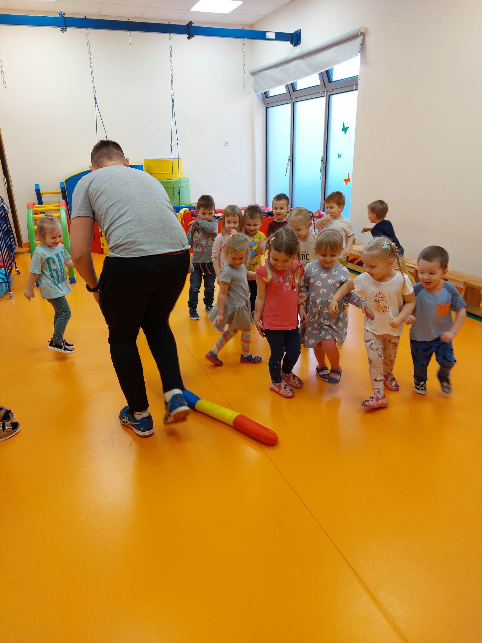 Wszystkie dzieci z chęcią uczestniczą w zajęciach, z Panem Cyprianem, bo każdy przedszkolak wie, że ruch to zdrowie:)