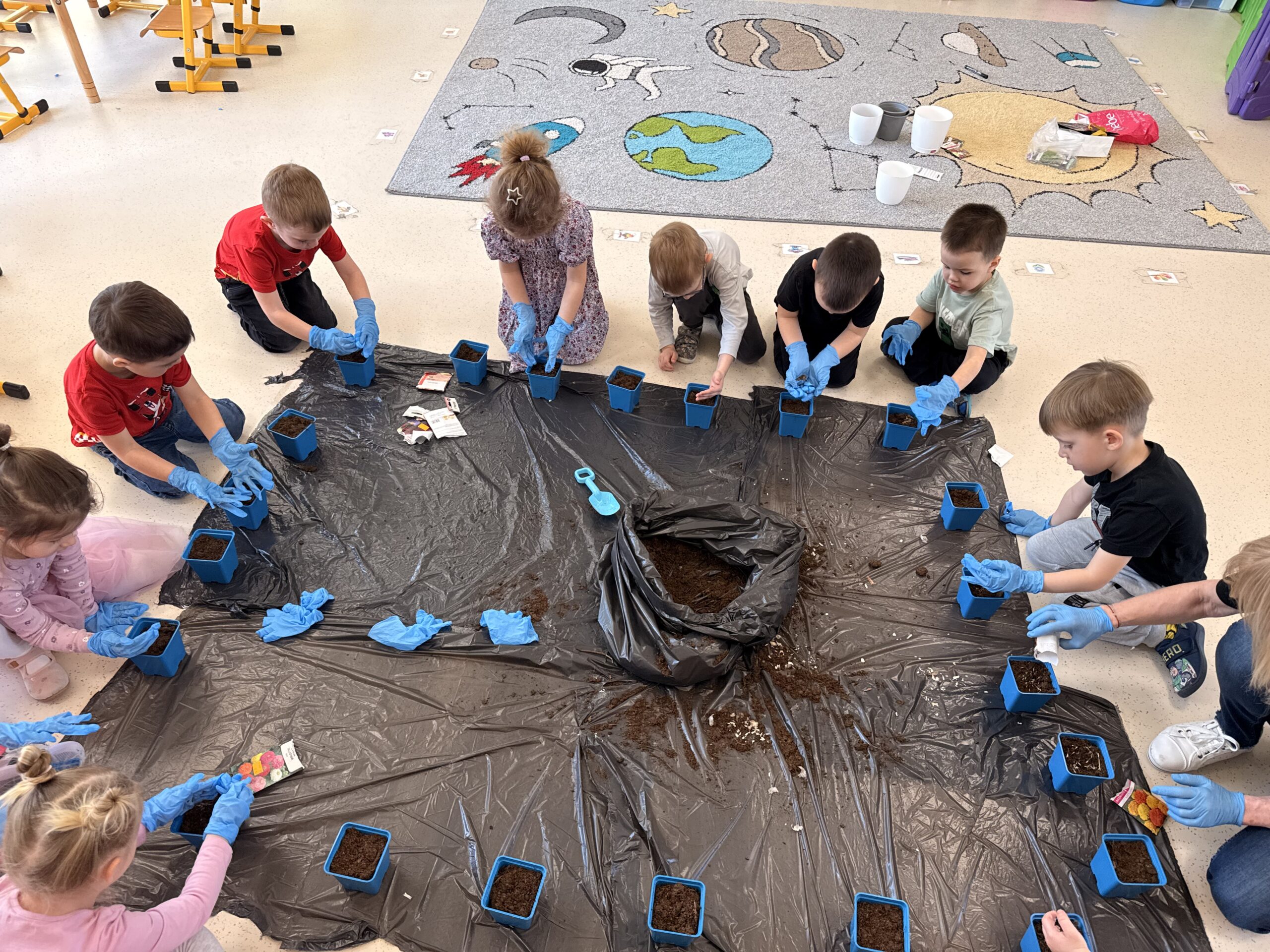Dziś zamieniliśmy się w małych ogrodników! 🌼 Dzieci z ogromnym zaangażowaniem wysiewały kwiatki – zarówno z nasion, jak i z cebulek. Każdy mógł spróbować swoich sił, dotknąć ziemi, wsypać nasionka i podlać swoje roślinki 💧To była nie tylko świetna zabawa, ale też ważna lekcja cierpliwości i troski o przyrodę 🌿 Teraz z niecierpliwością będziemy obserwować, jak nasze kwiatki rosną i się rozwijają 🌷 Brawo dla naszych małych ogrodników! 👩🌾