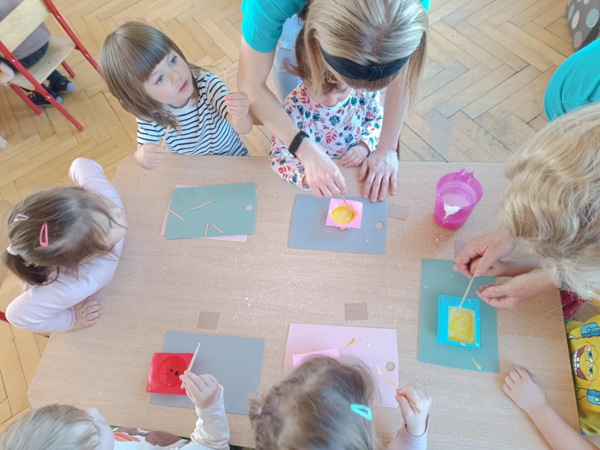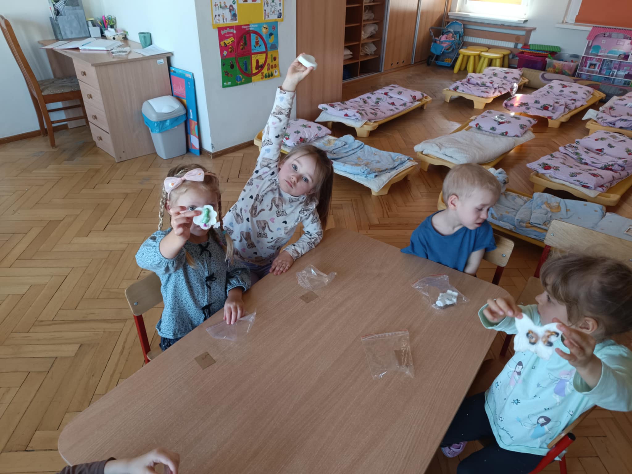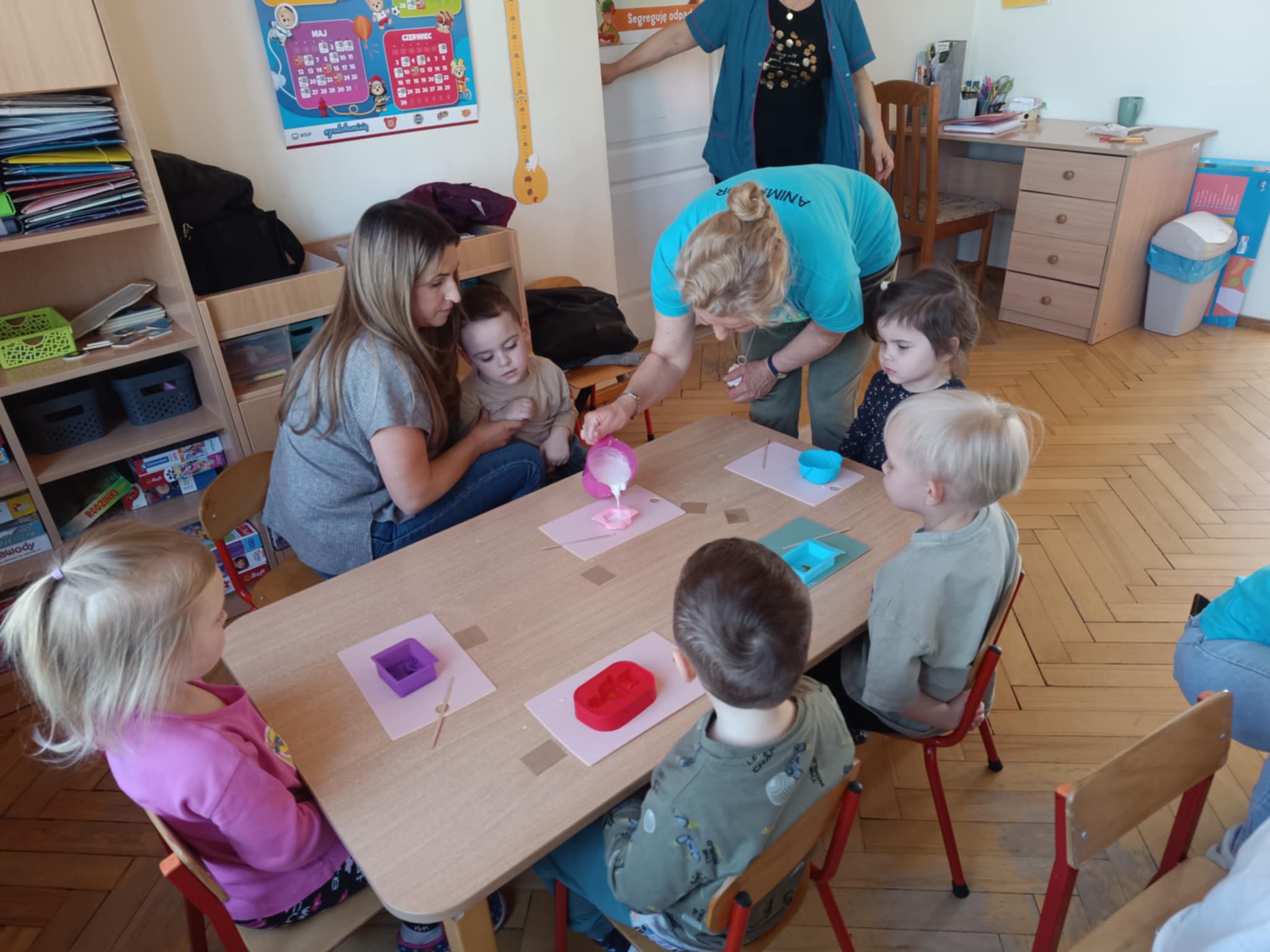 Dzieci z grupy „Słoneczka” wzięły udział w kreatywnych zajęciach mydlarskich, podczas których miały okazję własnoręcznie stworzyć kolorowe i pachnące mydełka. Maluchy z wielkim zaangażowaniem wybierały kształty, barwniki i aromaty, tworząc wyjątkowe kompozycje.Podczas zajęć dzieci nie tylko świetnie się bawiły, ale także dowiedziały się, jak powstaje mydło i dlaczego higiena jest tak ważna w codziennym życiu. To była pachnąca i pełna radości przygoda, która dostarczyła wiele uśmiechu i satysfakcji!