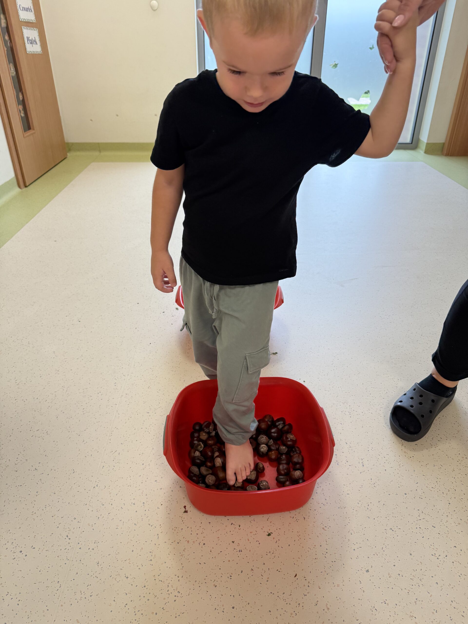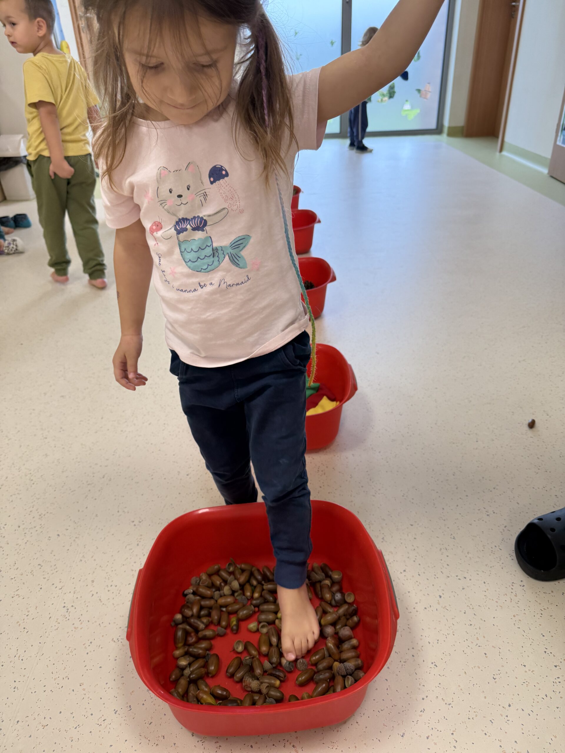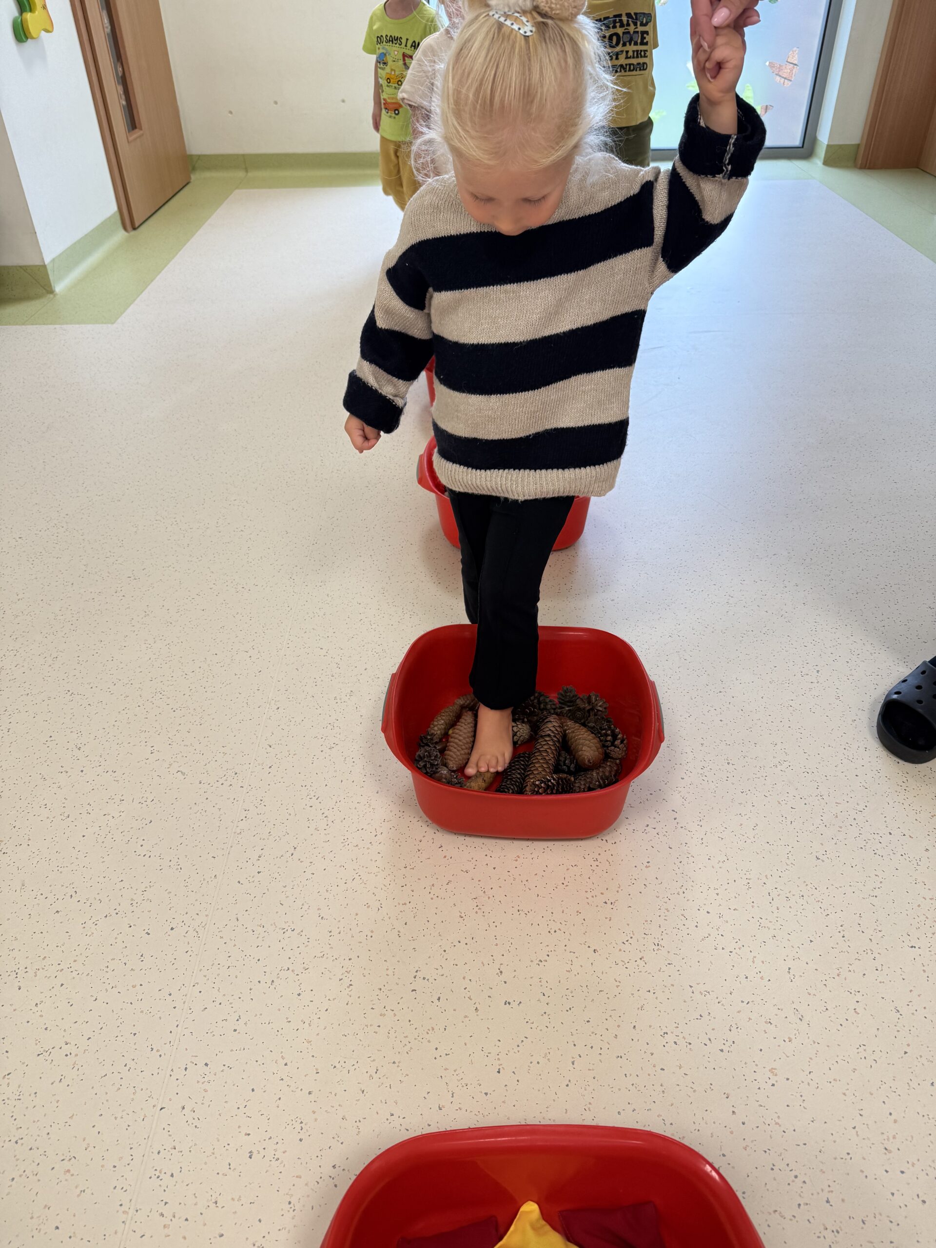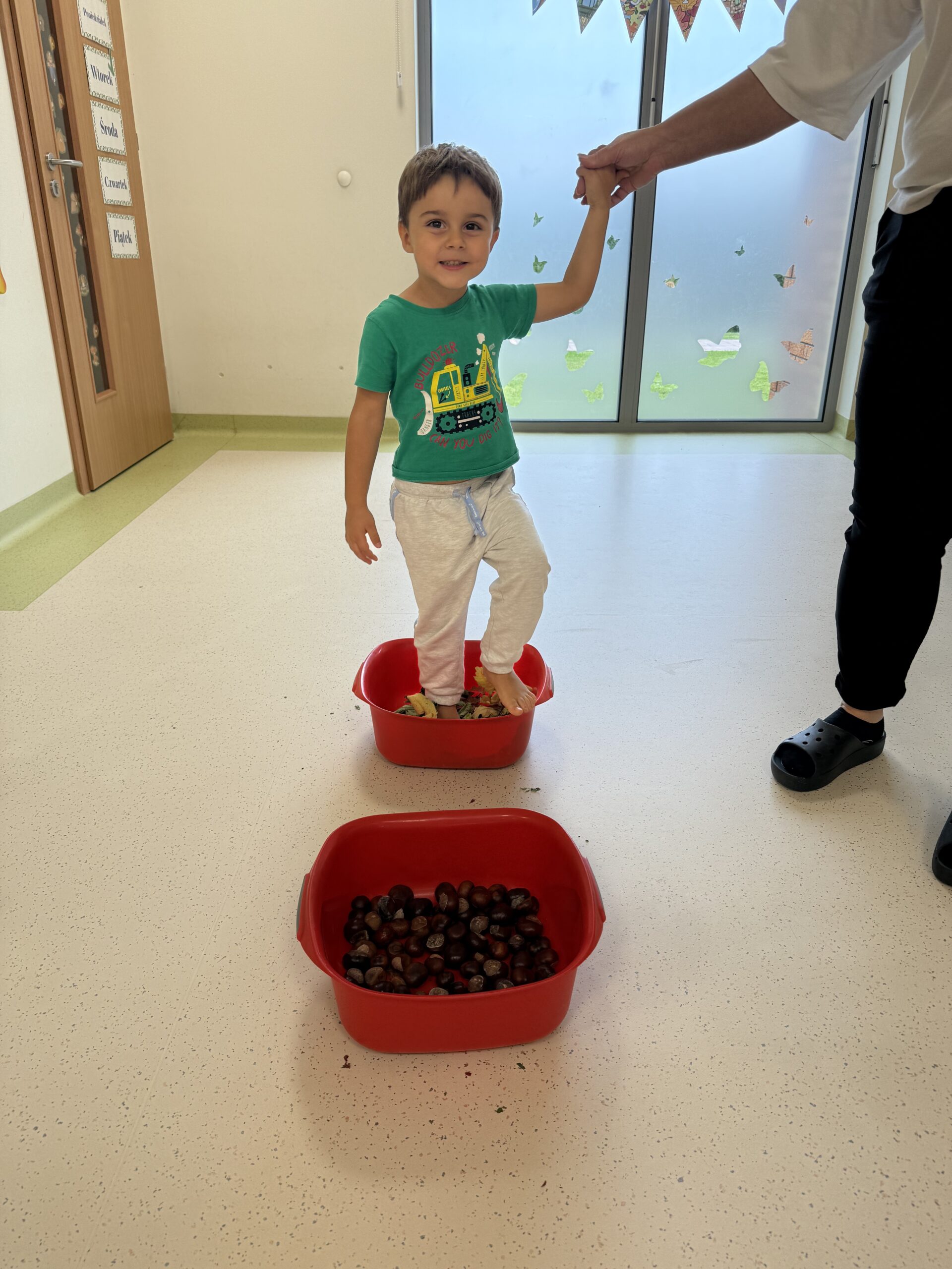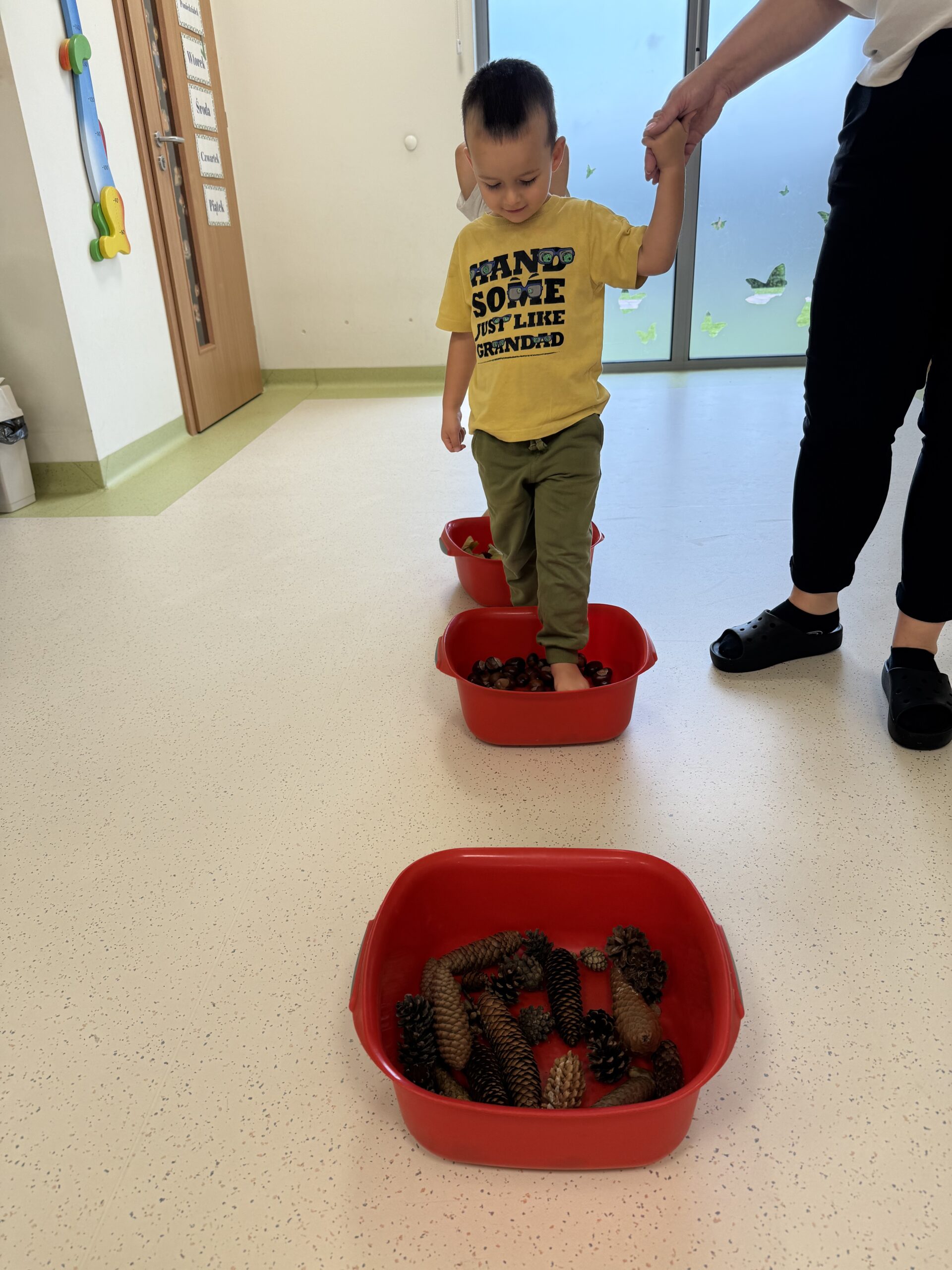 „Gruszki” na jesiennej ścieżce sensorycznej Post published:2 października, 2025 Post category:Wydarzenia Grupa I - Gruszki „Gruszki” na jesiennej ścieżce sensorycznej 🍁🌰🍂 Dzieci z grupy „Gruszki” odkrywały jesień wszystkimi zmysłami, spacerując po ścieżce sensorycznej z liści, kasztanów, żołędzi i szyszek. Każdy krok przynosił nowe wrażenia i mnóstwo radości! 👣🍂