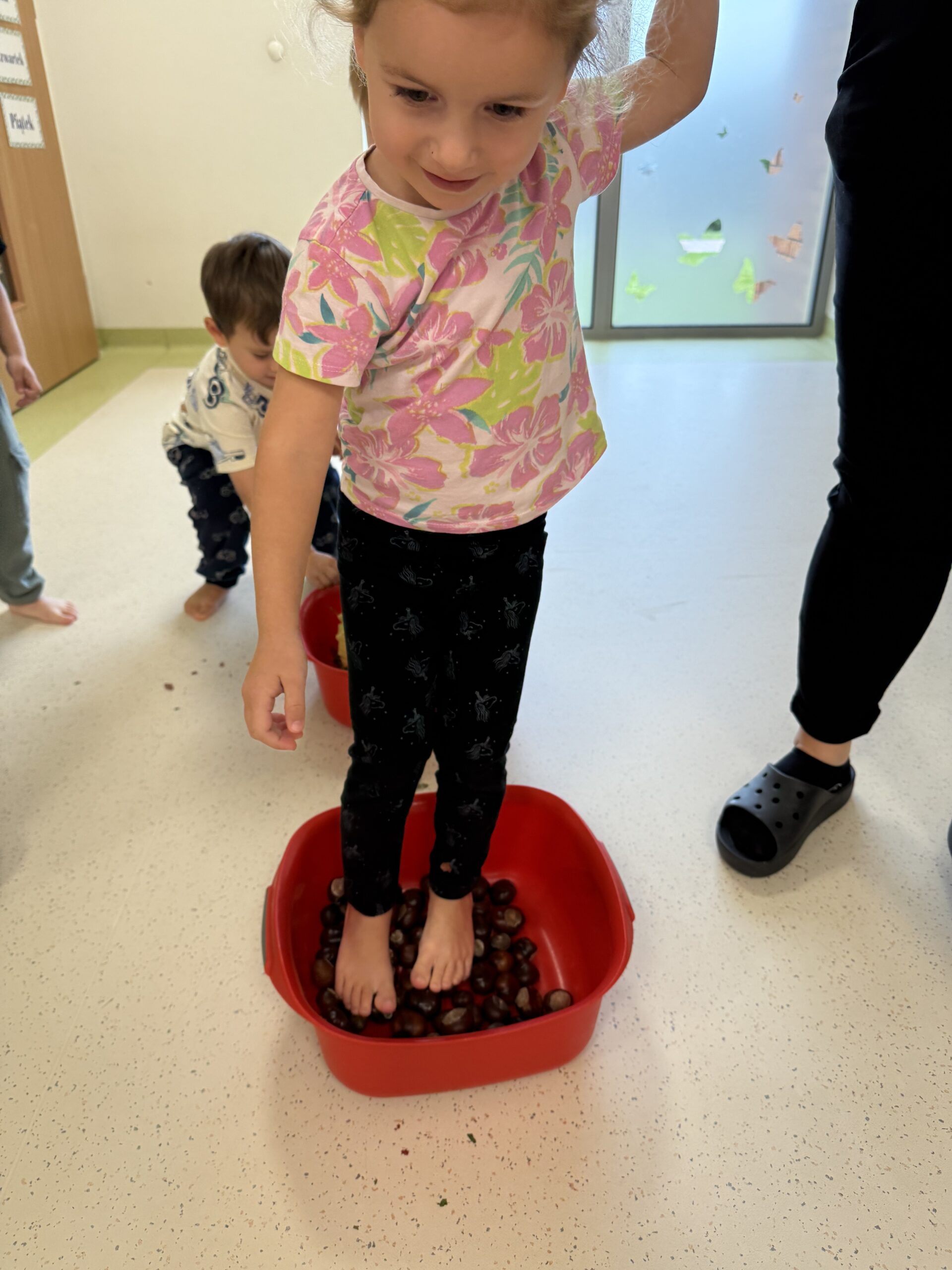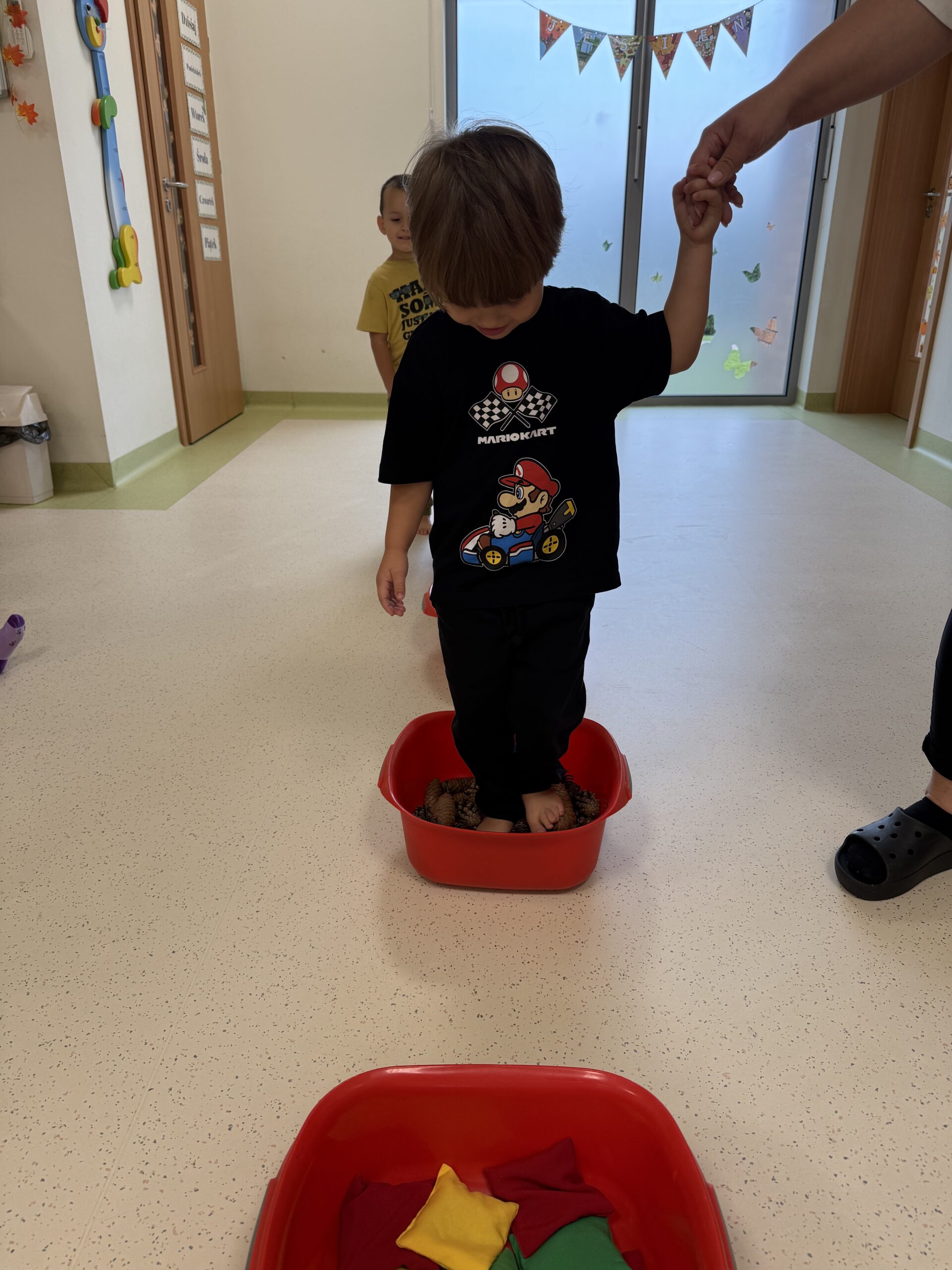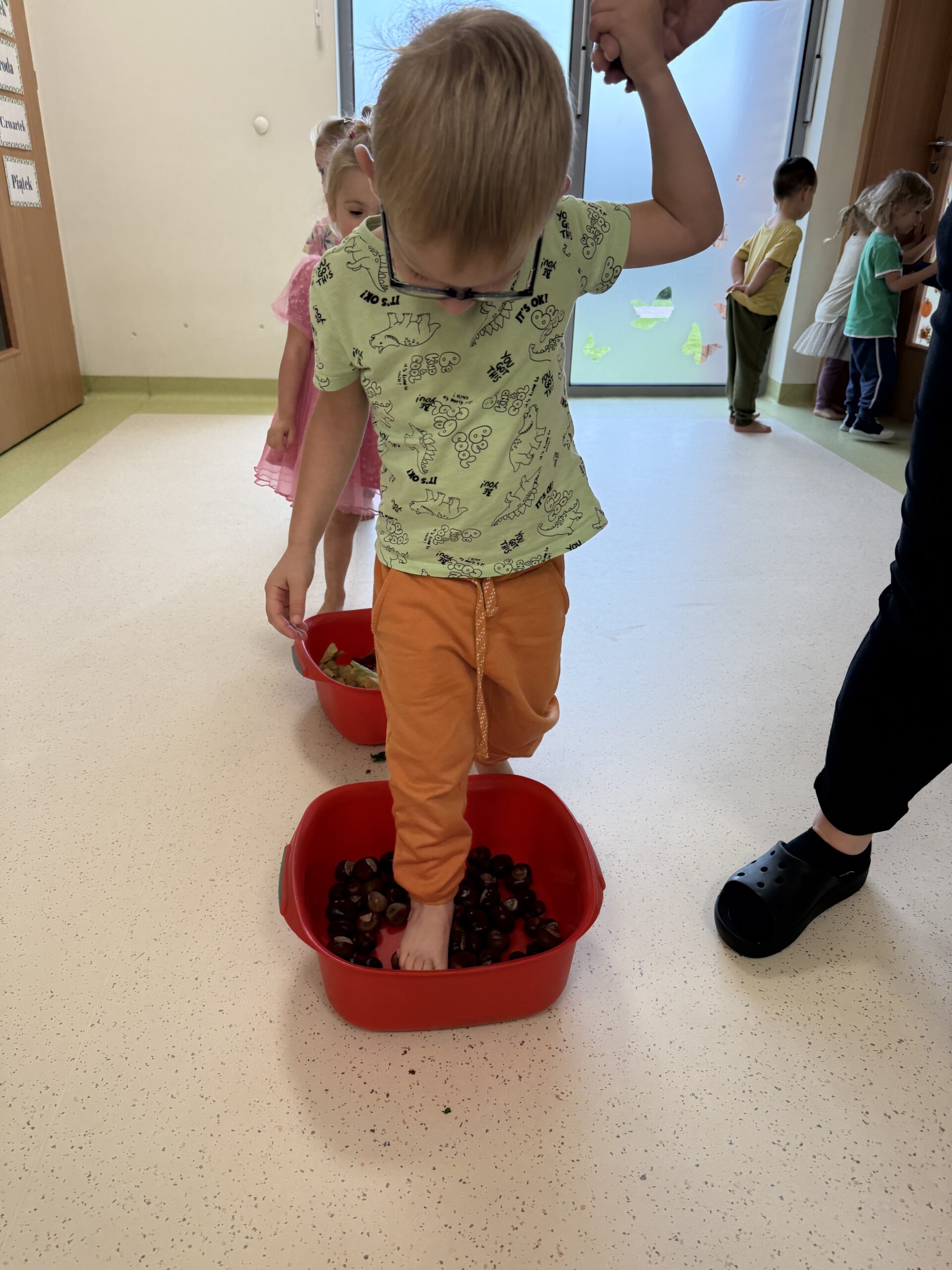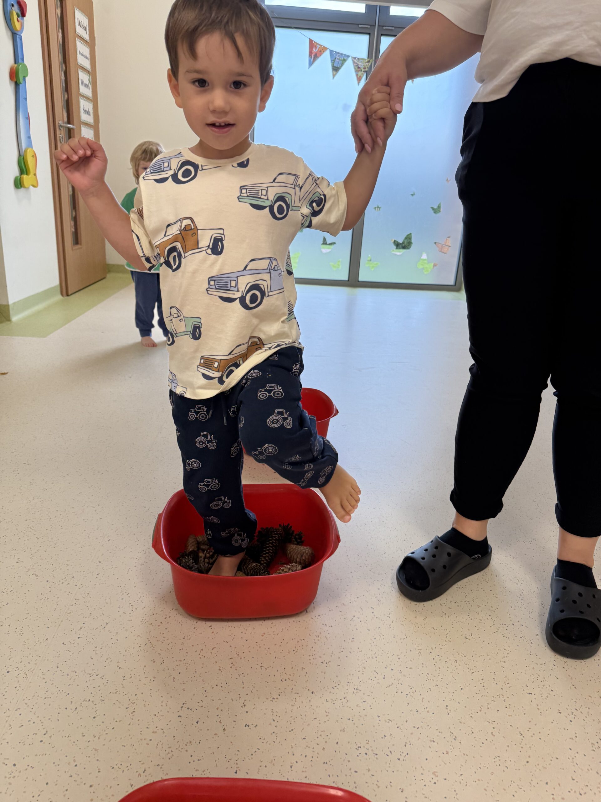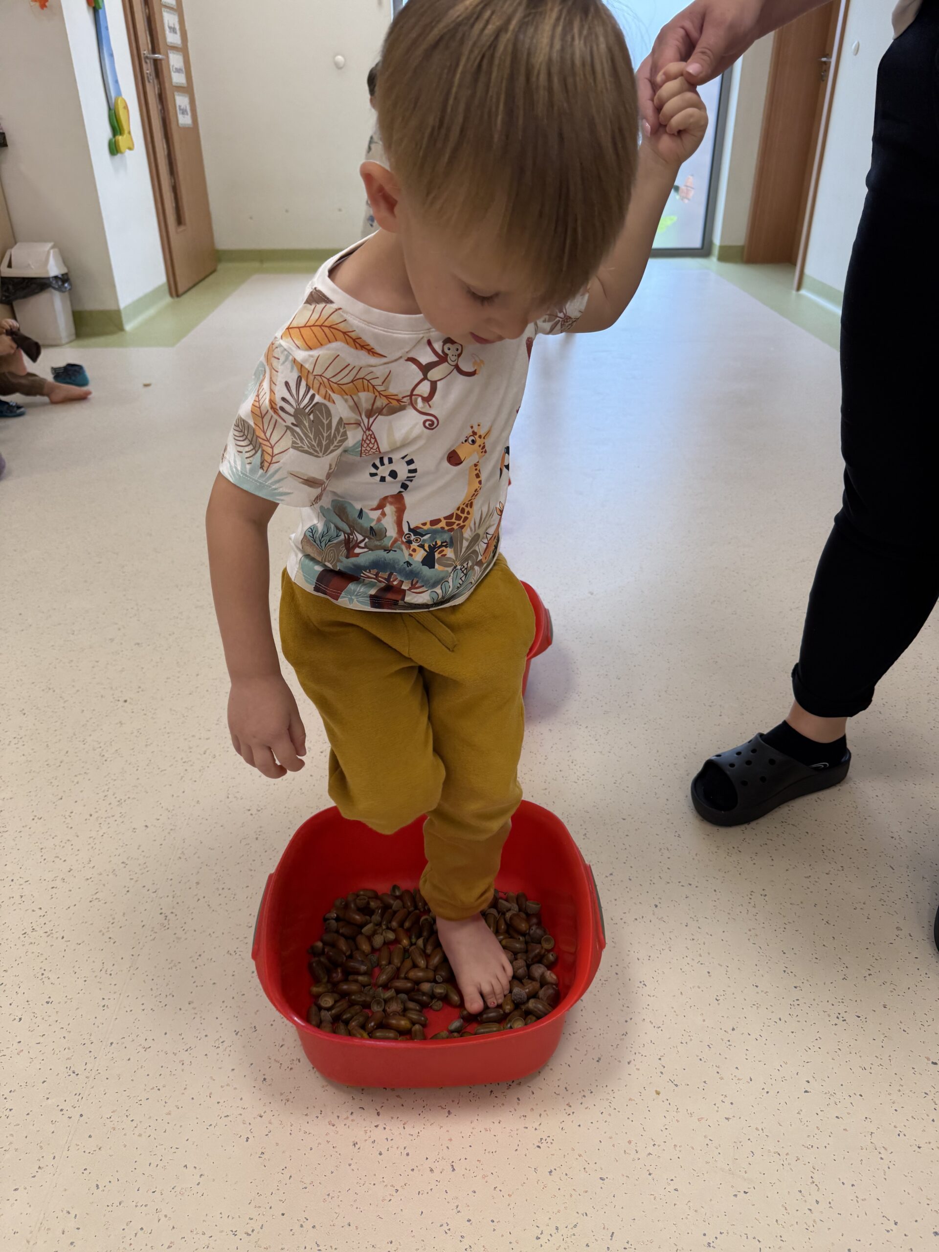 „Gruszki” na jesiennej ścieżce sensorycznej Post published:2 października, 2025 Post category:Wydarzenia Grupa I - Gruszki „Gruszki” na jesiennej ścieżce sensorycznej 🍁🌰🍂 Dzieci z grupy „Gruszki” odkrywały jesień wszystkimi zmysłami, spacerując po ścieżce sensorycznej z liści, kasztanów, żołędzi i szyszek. Każdy krok przynosił nowe wrażenia i mnóstwo radości! 👣🍂