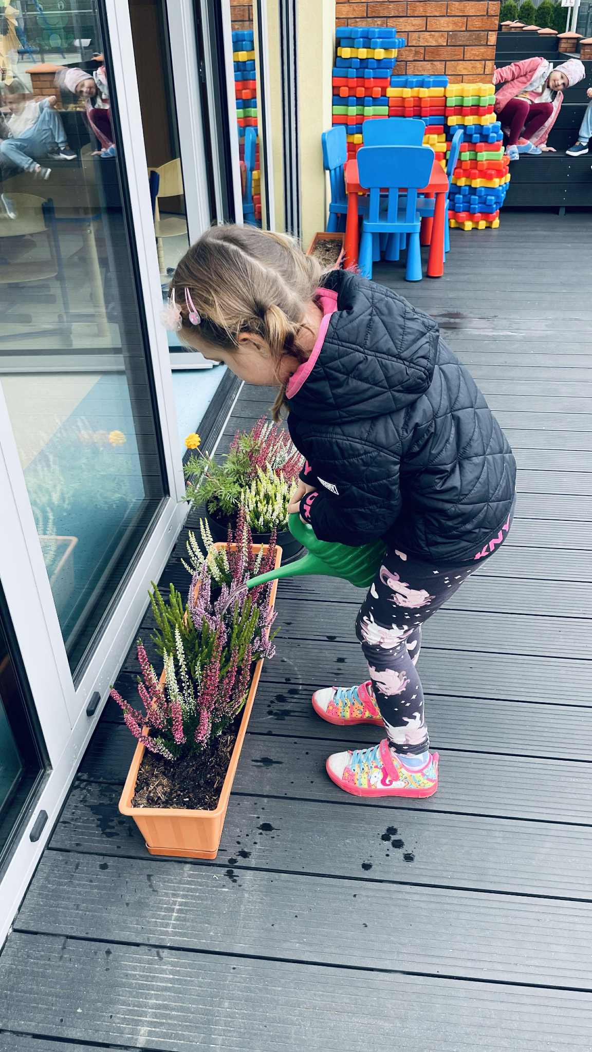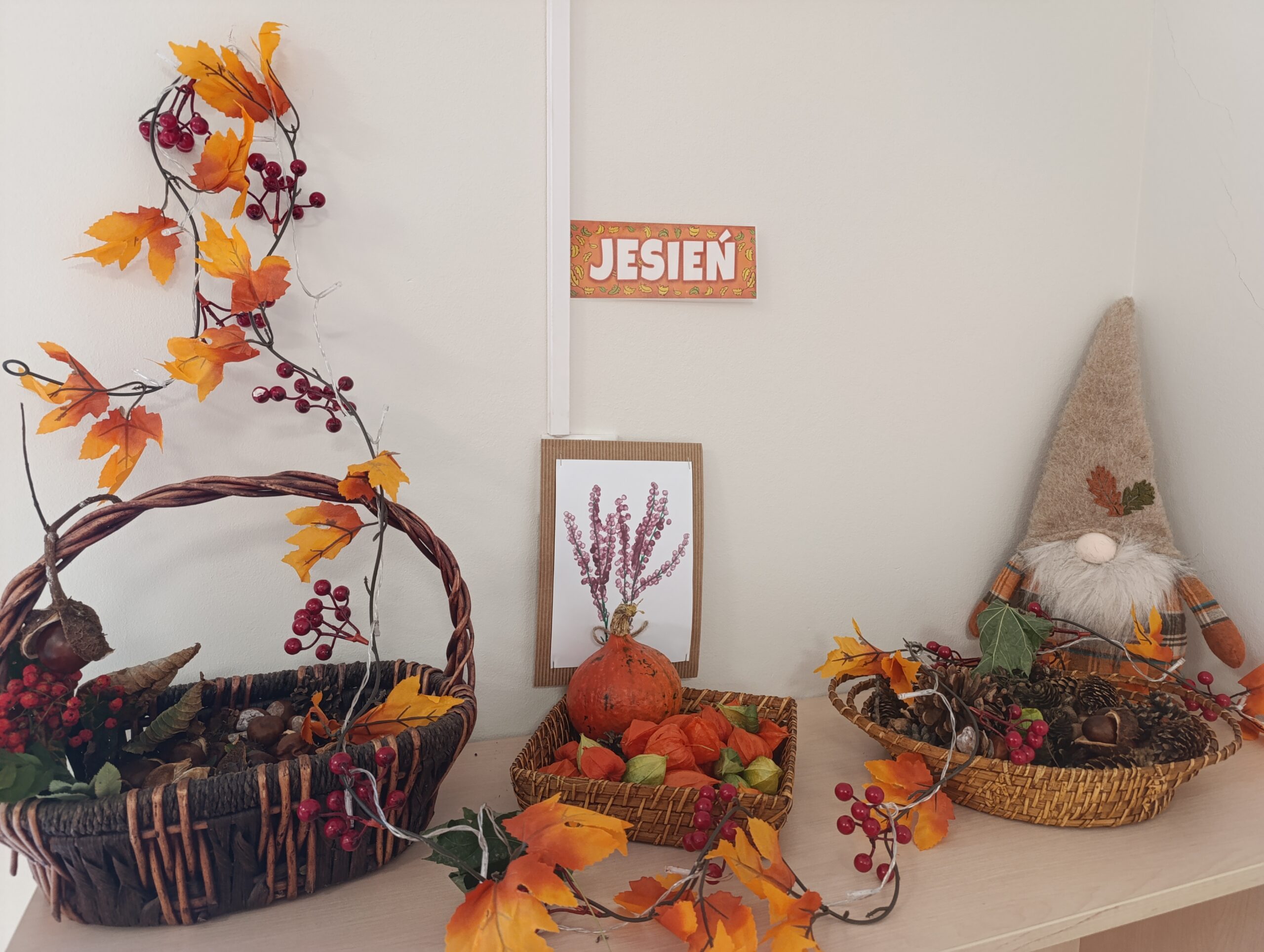 Wraz ze zmianami w przyrodzie zmieniła sie nasza sala oraz taras. Żabki udekorowały salę jesiennymi ozdobami, stworzyły kącik jesienny. Wystrój zmienił się również na tarasie. Przedszkolaki z zaangażowaniem sadziły wrzosy, a także przypomniały sobie, jak dbać o rośliny i jak ważna jest troska o środowisko naturalne.