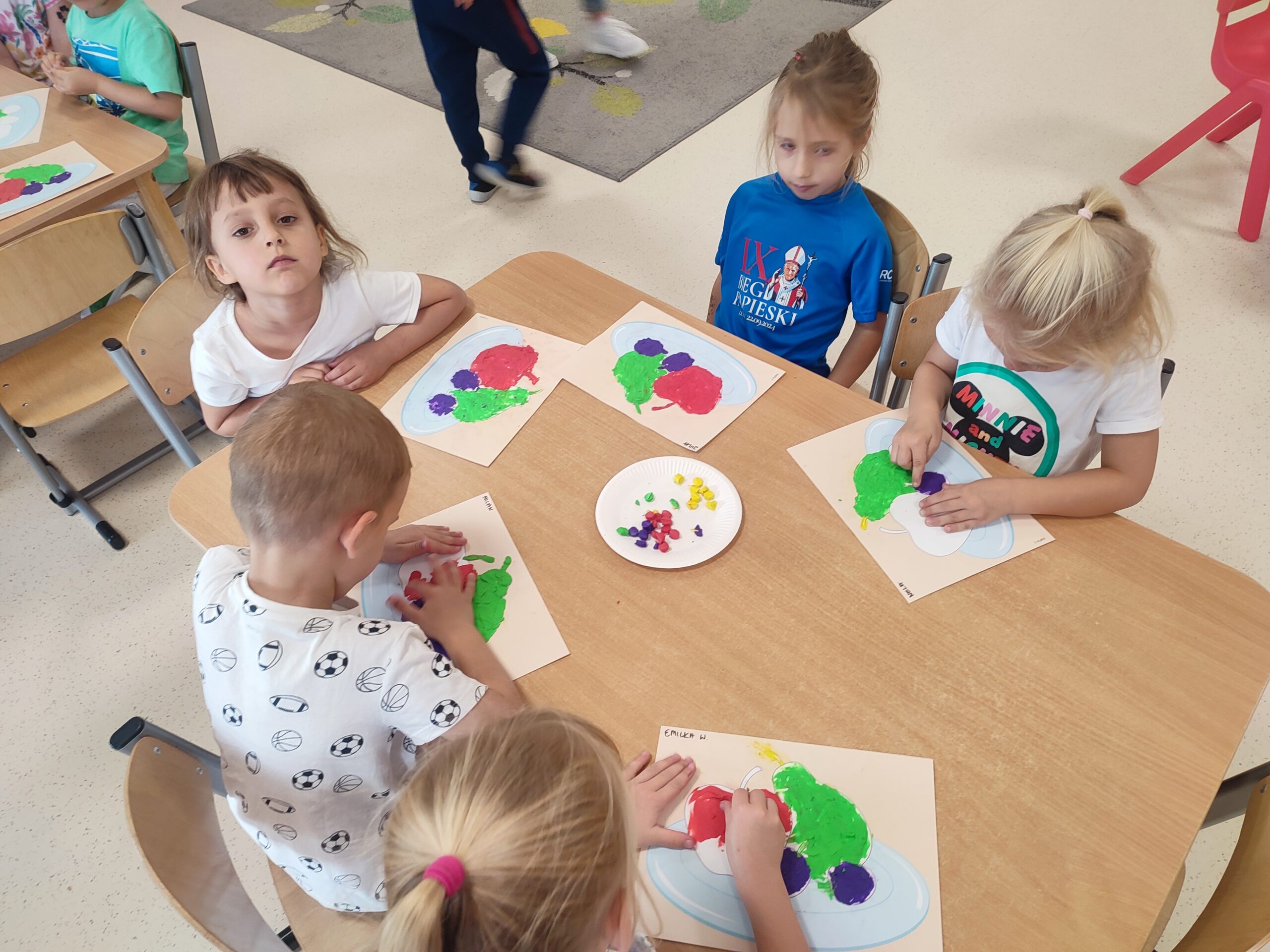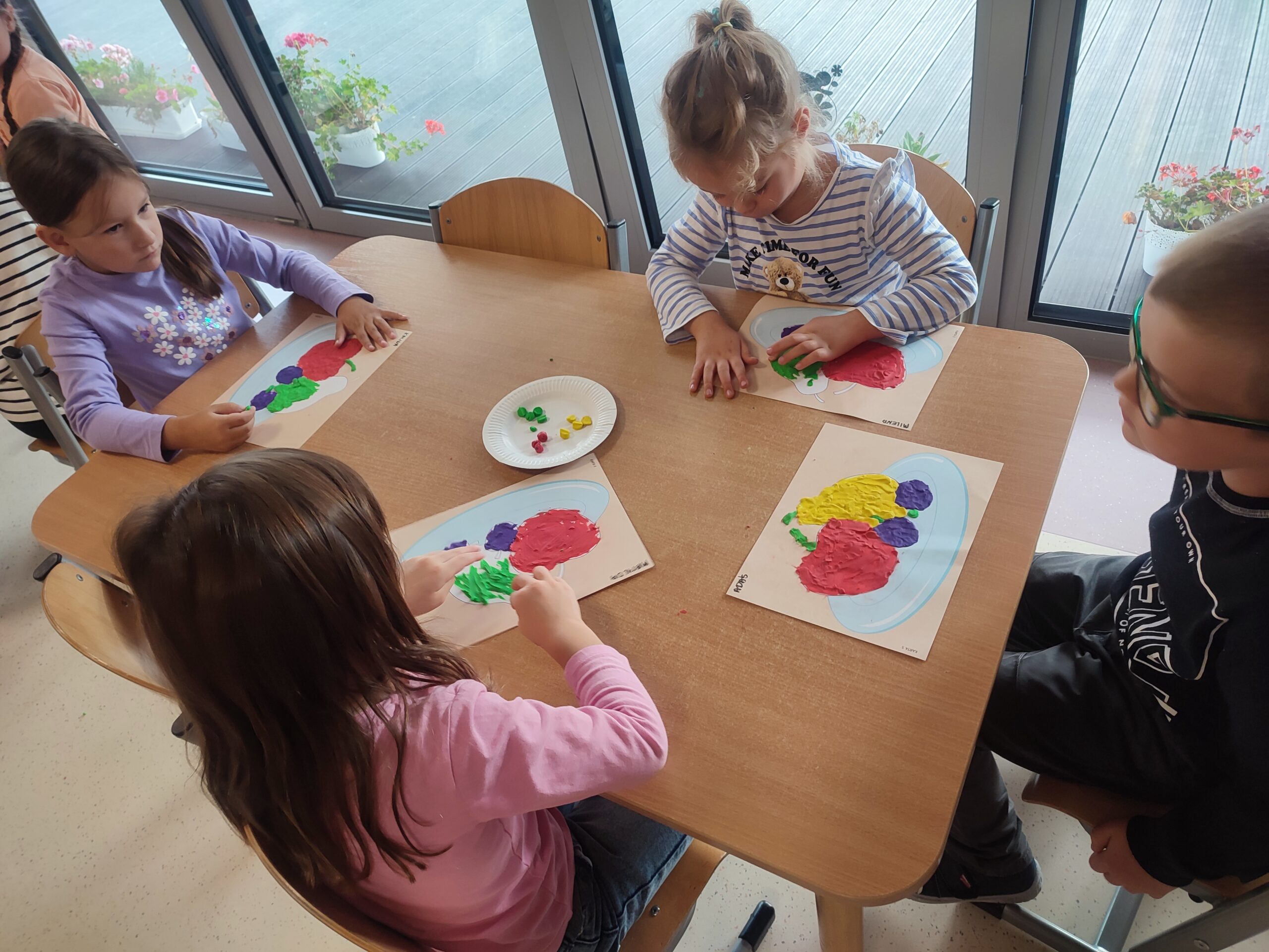 Celem zajęć plastycznych „Jesienne owoce” było przede wszystkim rozwijanie sprawności manualnej wyklejanie plasteliną, wzbogacenie wiedzy o jesiennych zbiorach oraz ich przeznaczeniu w przemyśle spożywczym.