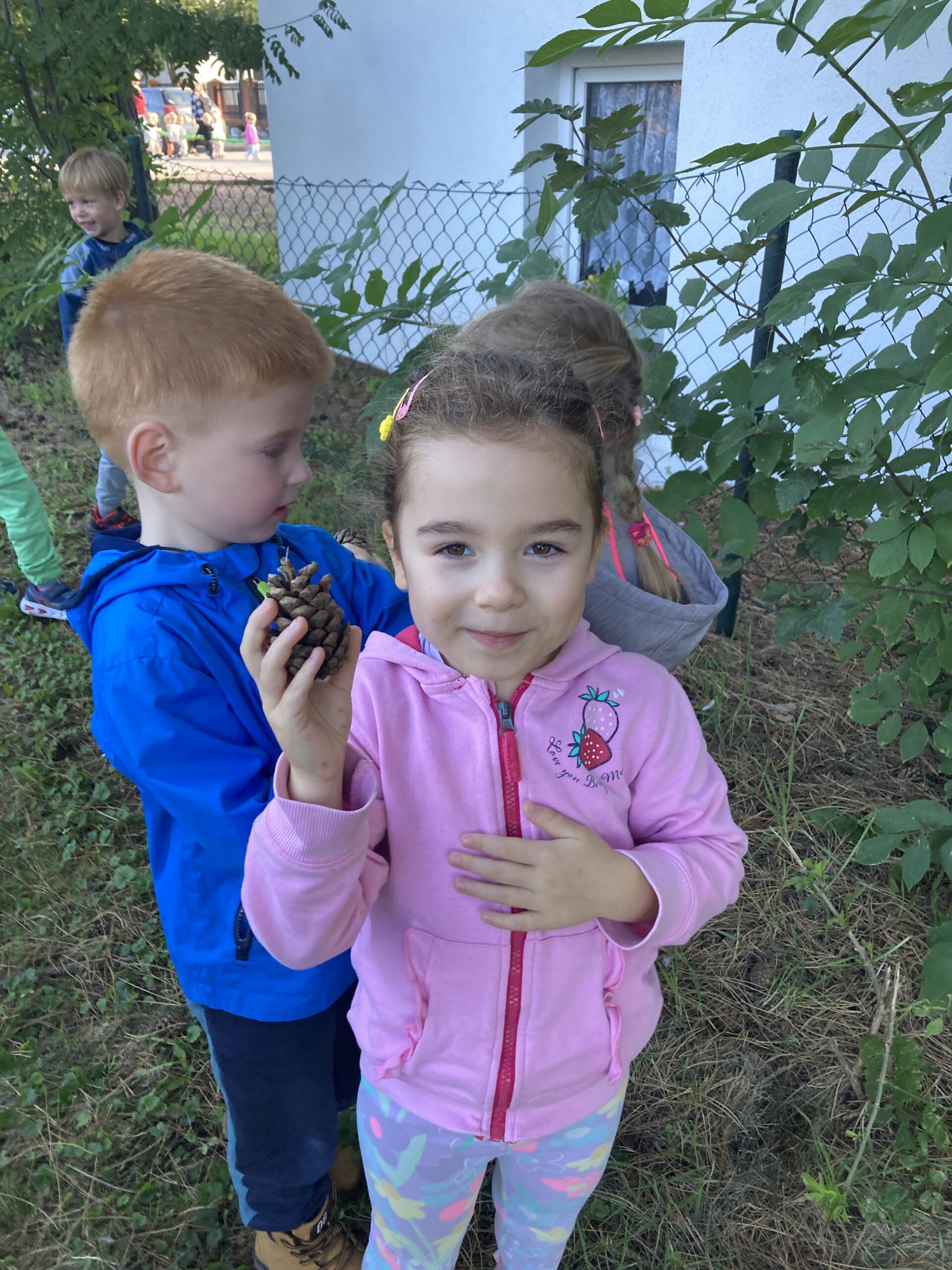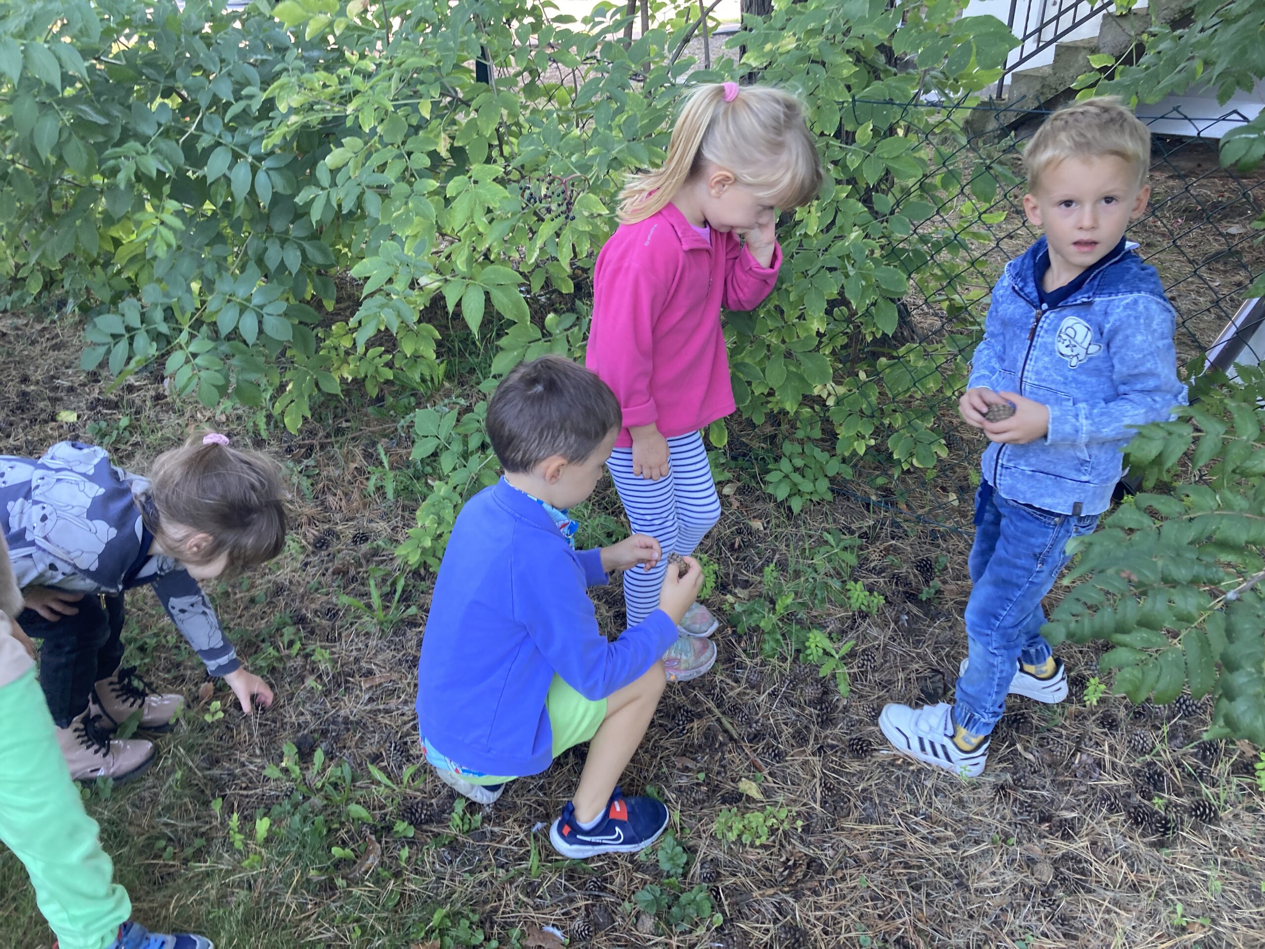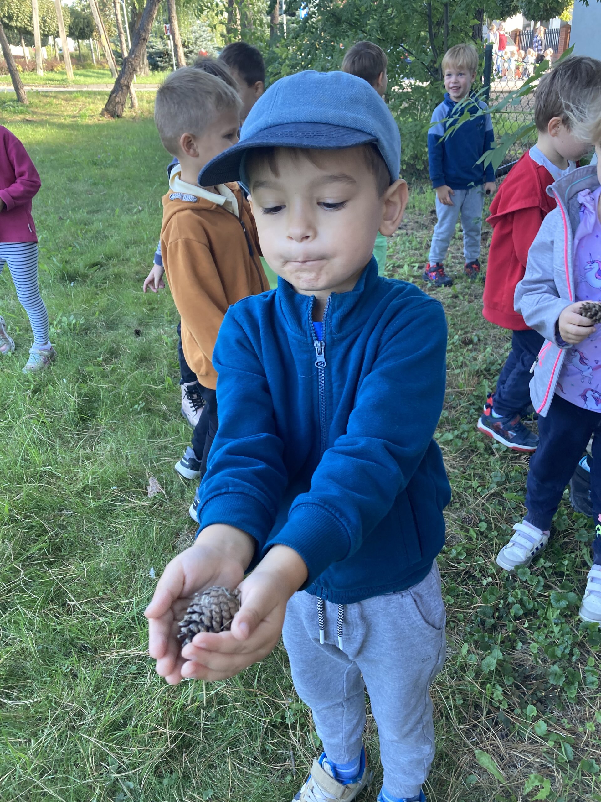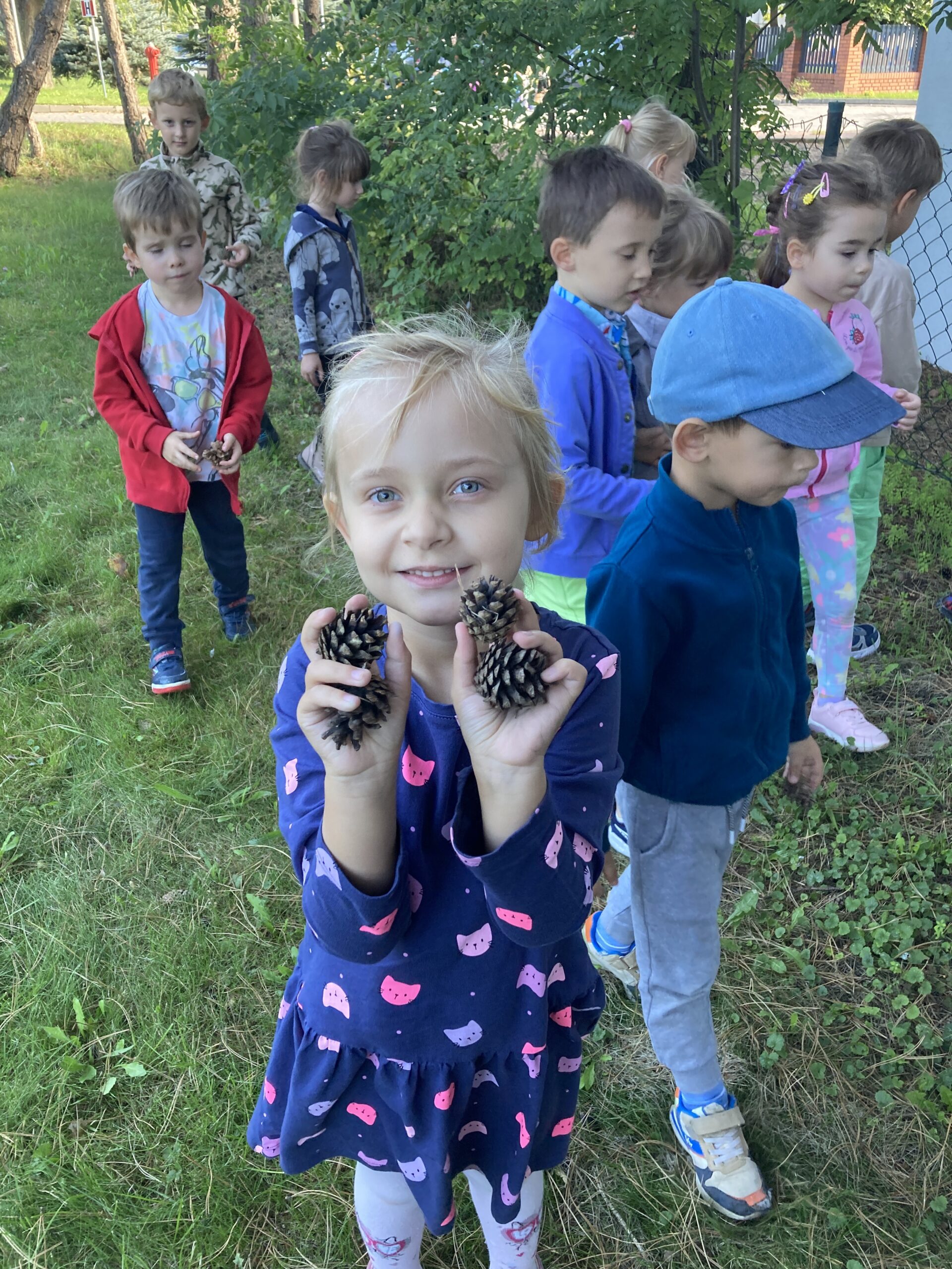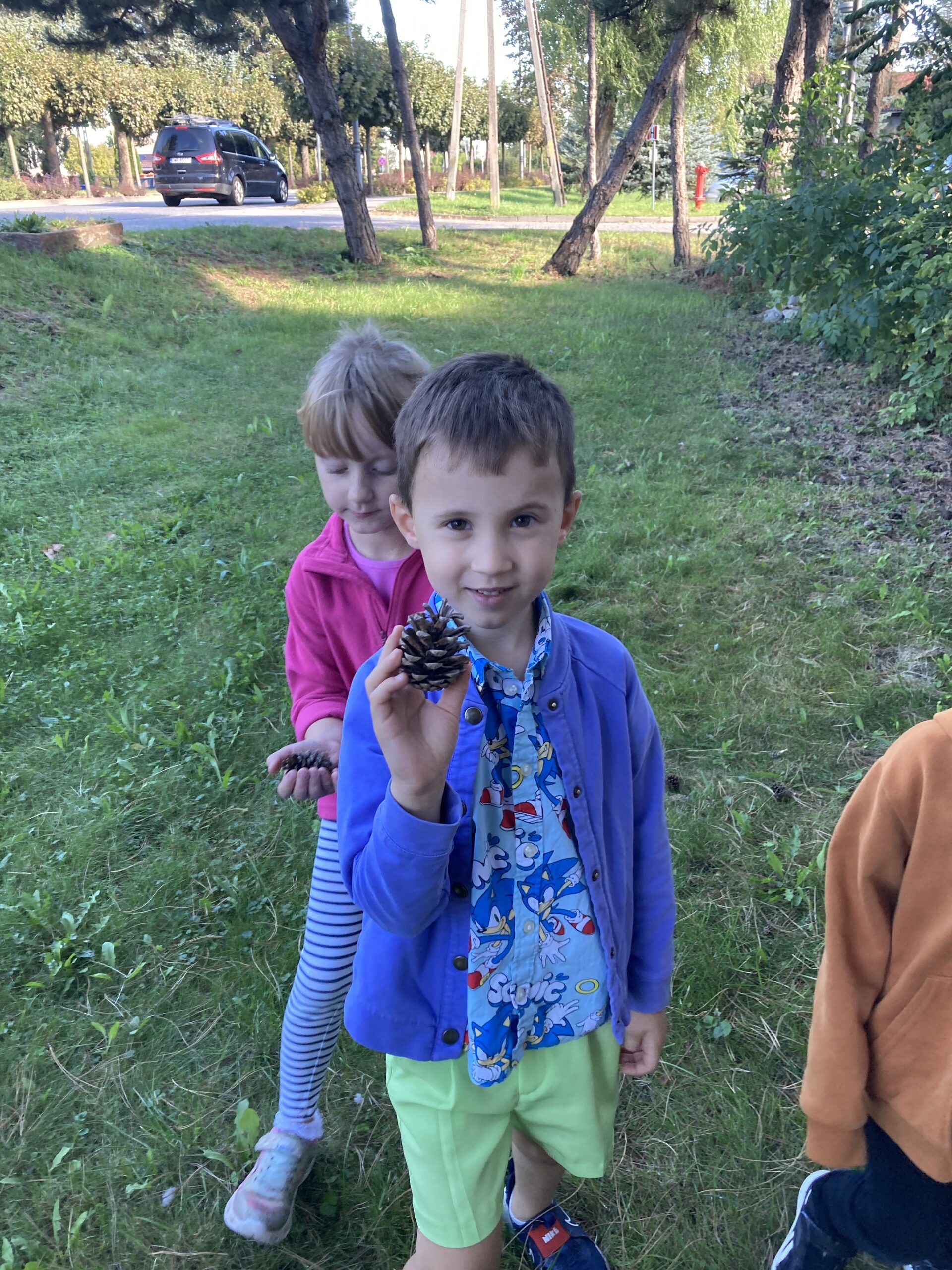 Jesień to piękna pora roku, pełna kolorów i cudownych widoków dlatego Tygryski wyruszyły na spacer, by obserwować zmiany, jakie zaszły w przyrodzie. Przedszkolaki bezpośrednio obcowały z przyrodą, rozpoznawały rodzaje drzew po liściach i owocach oraz zbierały jesienne skarby do kosza w celu wzbogacenia kącika przyrody. Po powrocie do przedszkola namalowały kolorowe liście, przygotowały plakat „Pani Jesień” oraz kosz z darami Jesieni.