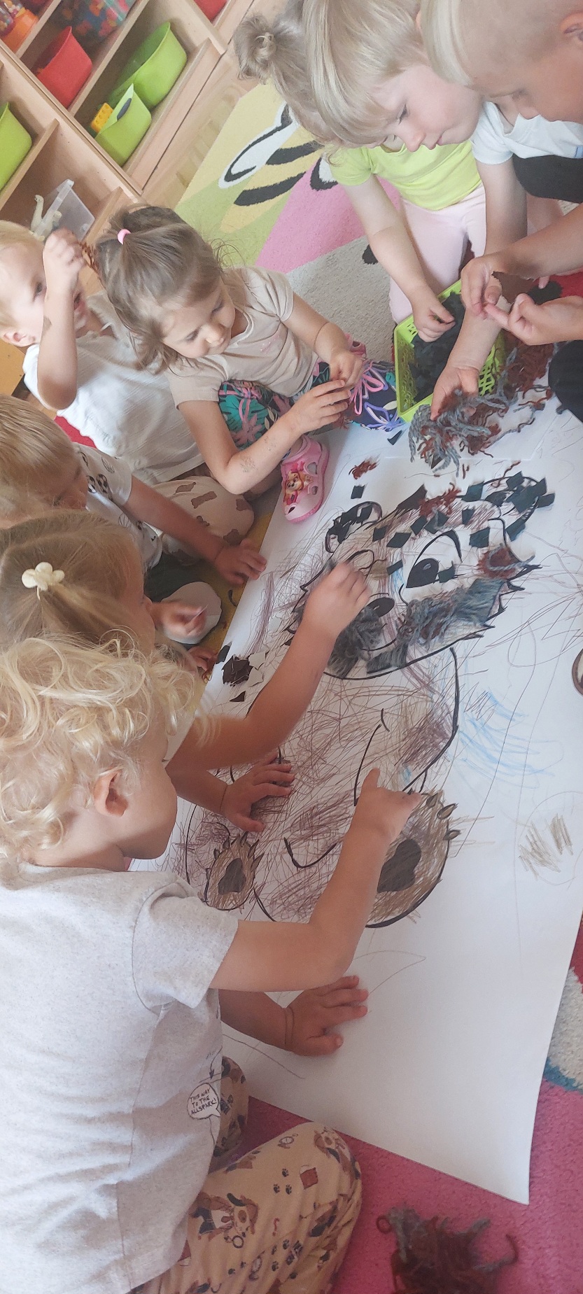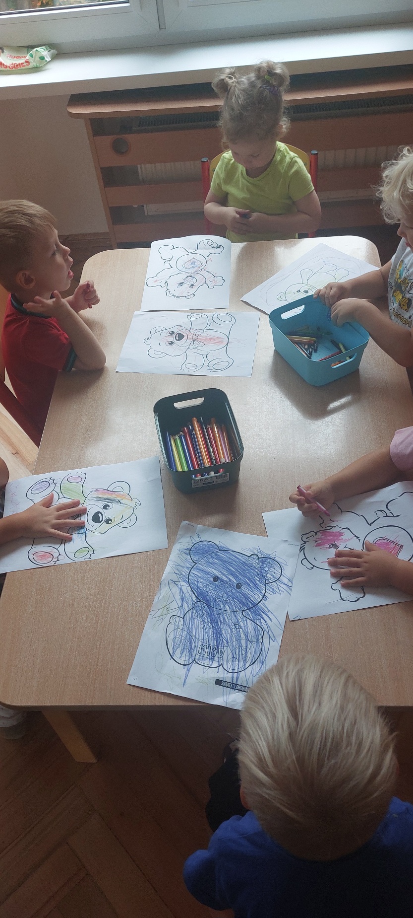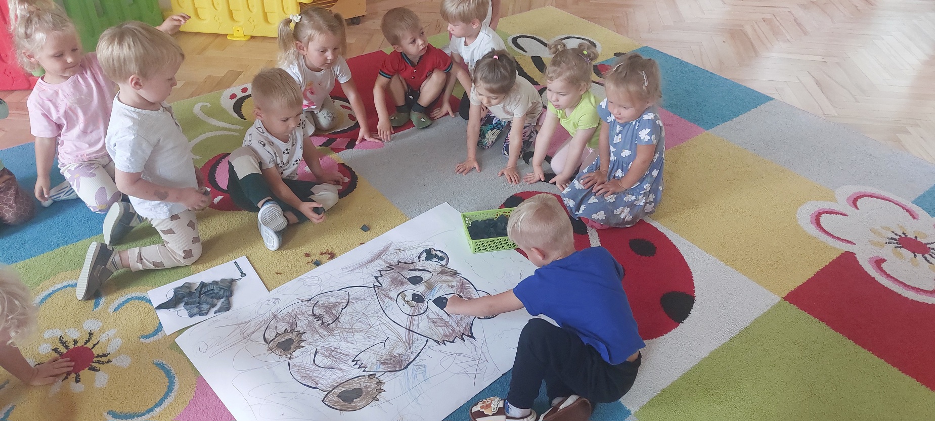 Przedszkolaki z grupy VII poznały swoją nazwę grupy- Niedzwiadki. Dzieci śpiewały piosenki o niedzwiadkach, bawiły się w śpiącego niedzwiadka oraz powtarzały wierszyk o misiu. Na koniec stworzyły piękną, wspólną dekoracje oraz ozdobiły swoje misiowe kolorowanki.