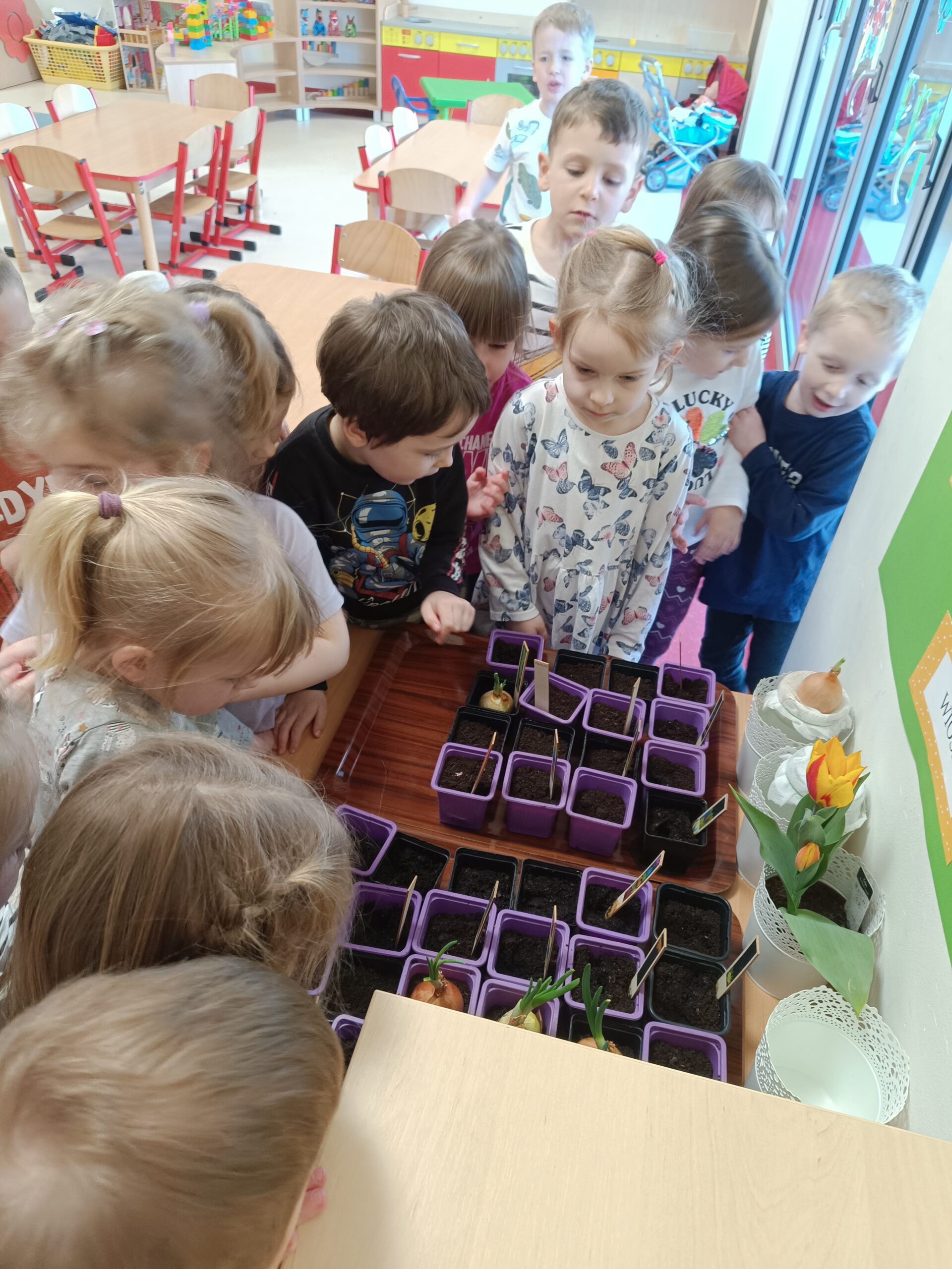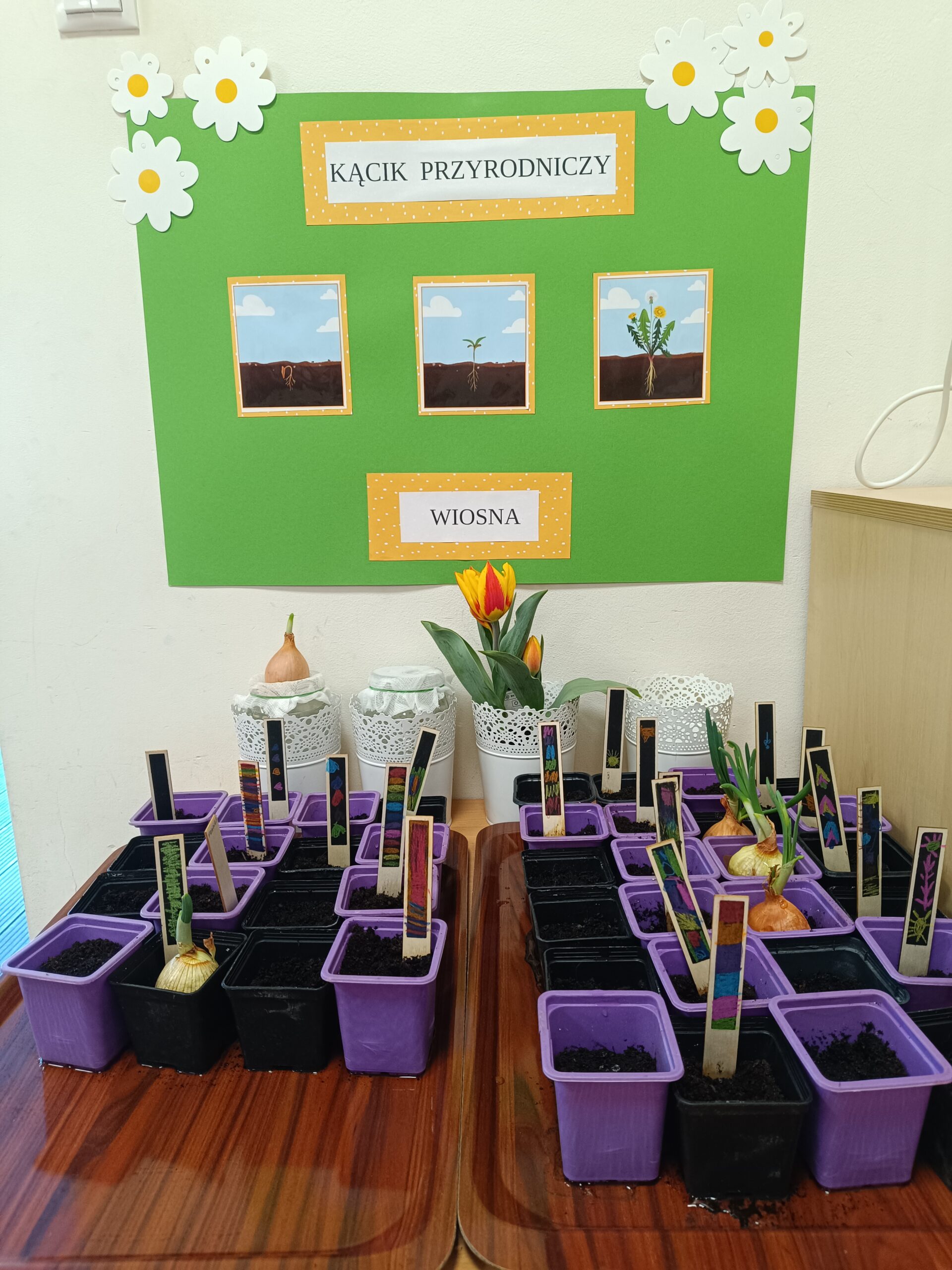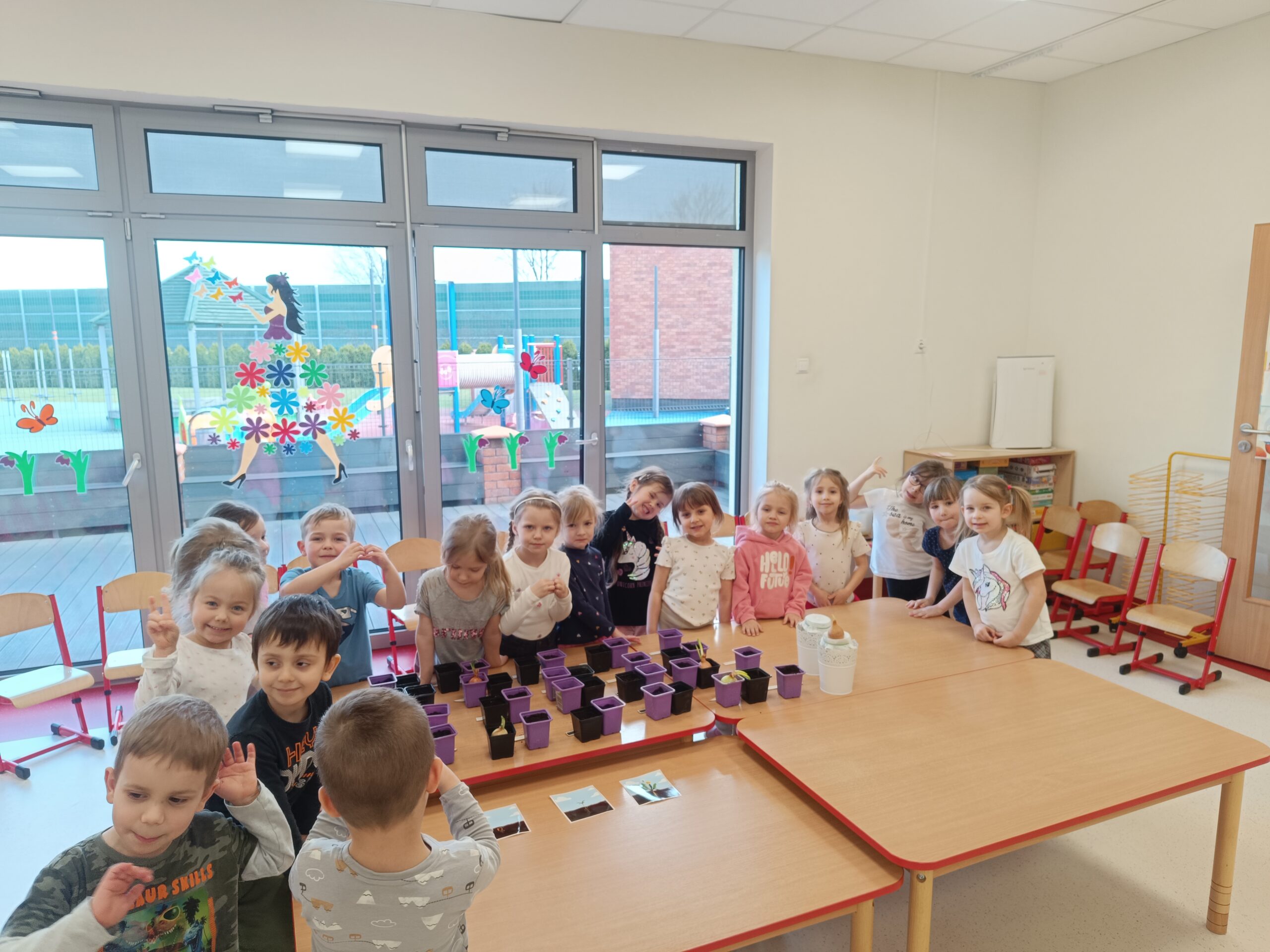 Dzieci z naszej grupy nie mogą się doczekać wiosny dlatego postanowiliśmy założyć w sali kącik przyrodniczy. Dzieci dotykały, wąchały, nazywały i samodzielnie sadziły różne roślinki oraz nasiona. Teraz z niecierpliwością, codziennie je pielęgnują i czekają na rozwoju swoich hodowli.