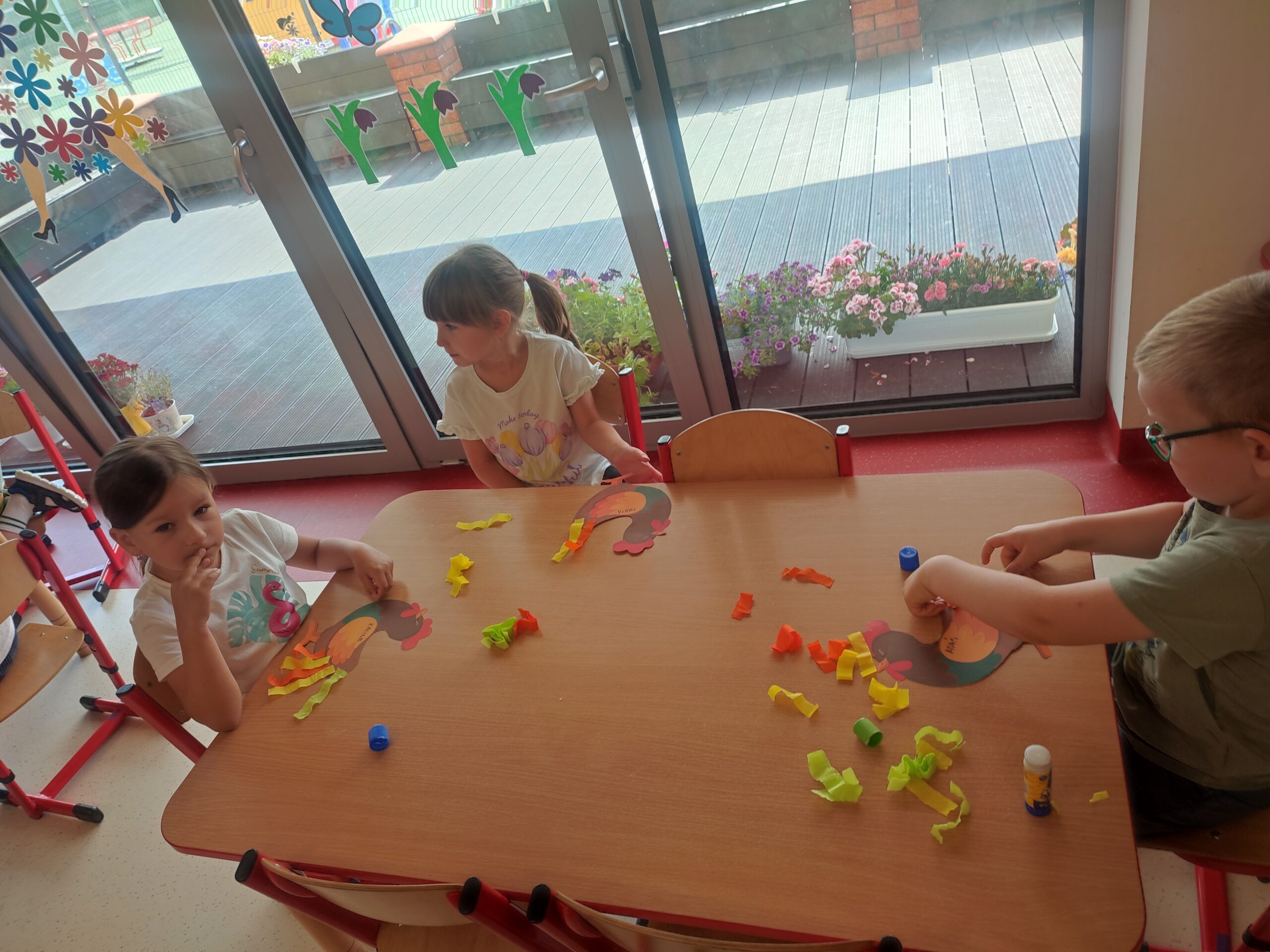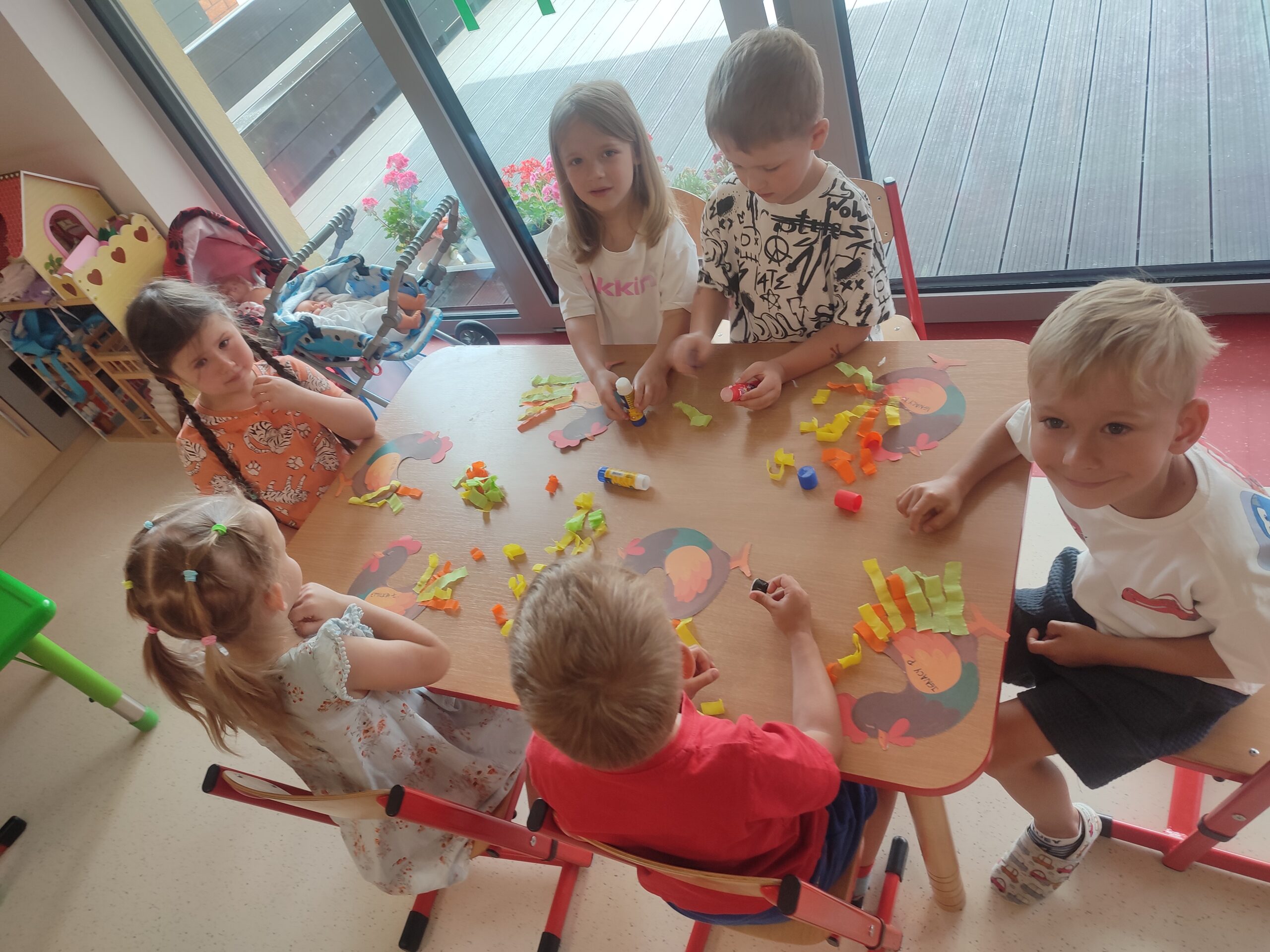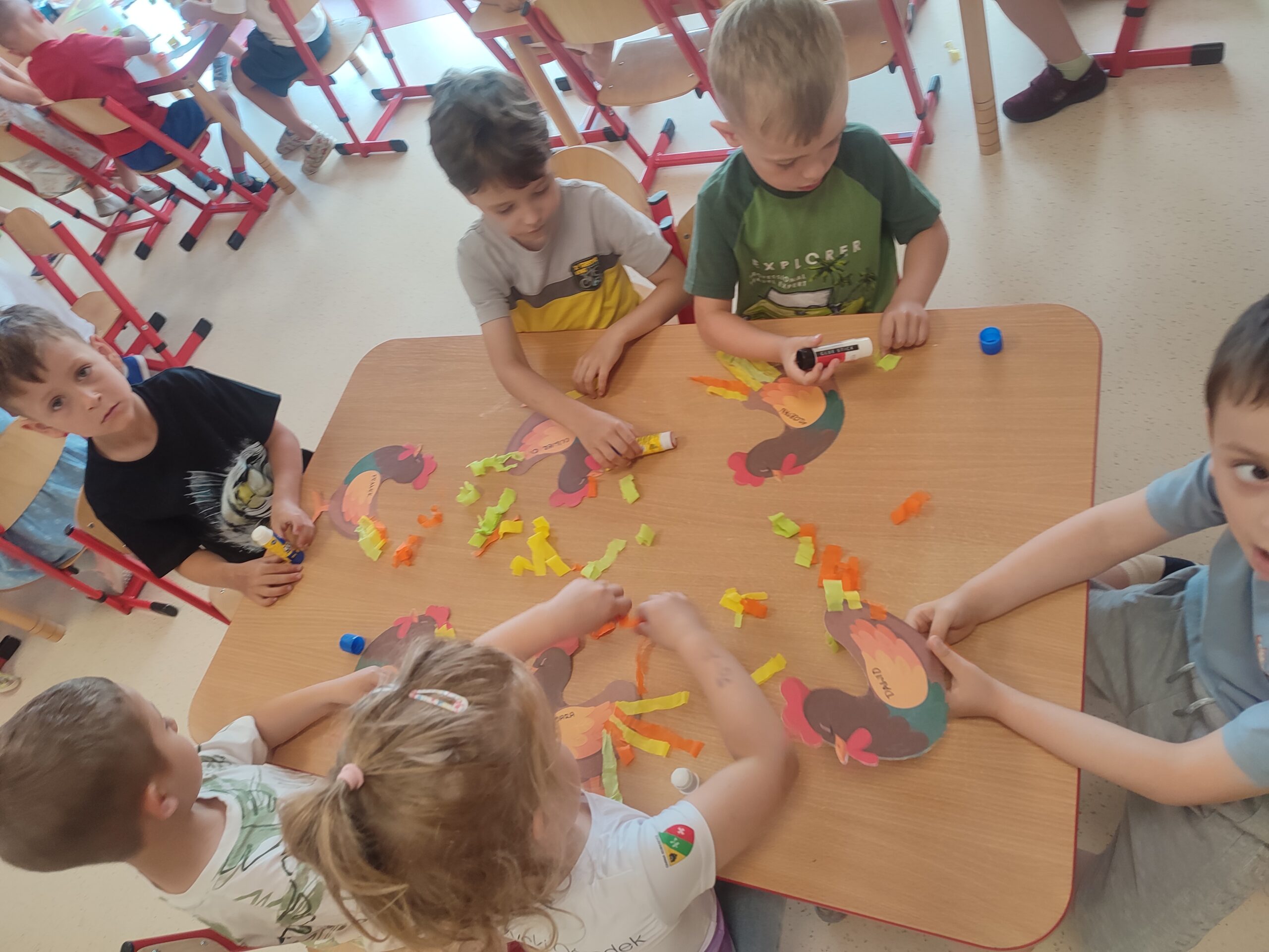 Dzieci w ciągu roku poznawały i utrwalały nazwy zwierząt i ptaków kolorowych jakie można spotkać w zoo, na łące oraz gospodarstwie wiejskim . Tym razem skupiliśmy się na kolorowych kogutach.