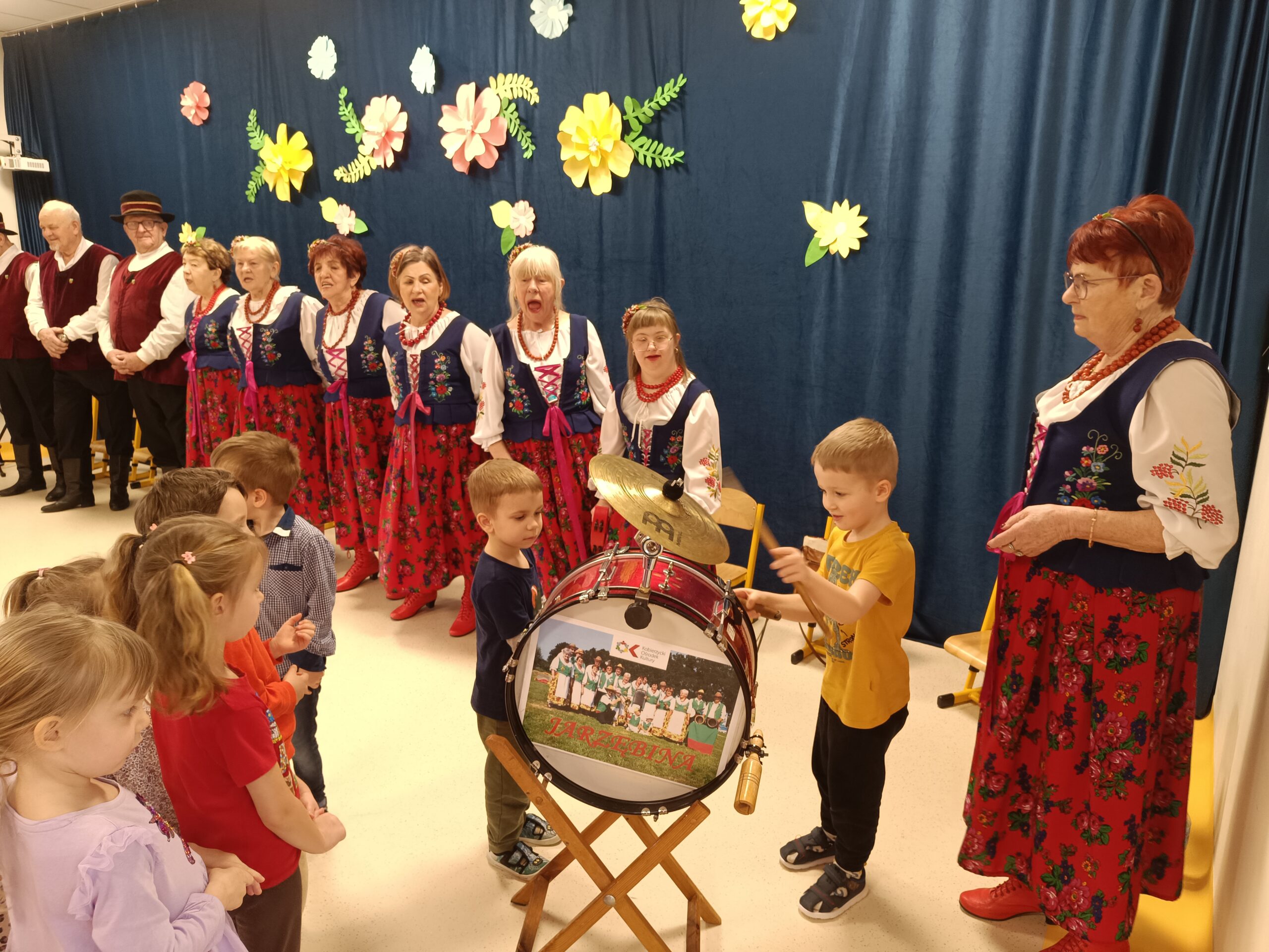 27 lutego uczestniczyliśmy w koncercie kobierzyckiego zespołu folklorystycznego Jarzębiny. Jest to zespół wokalno-instrumentalny dzięki czemu dzieci poznały ie tylko ludowe piosenki ale także nowe instrumenty muzyczne oraz miały okazję zagrania na nich. Było wesoło i tanecznie.