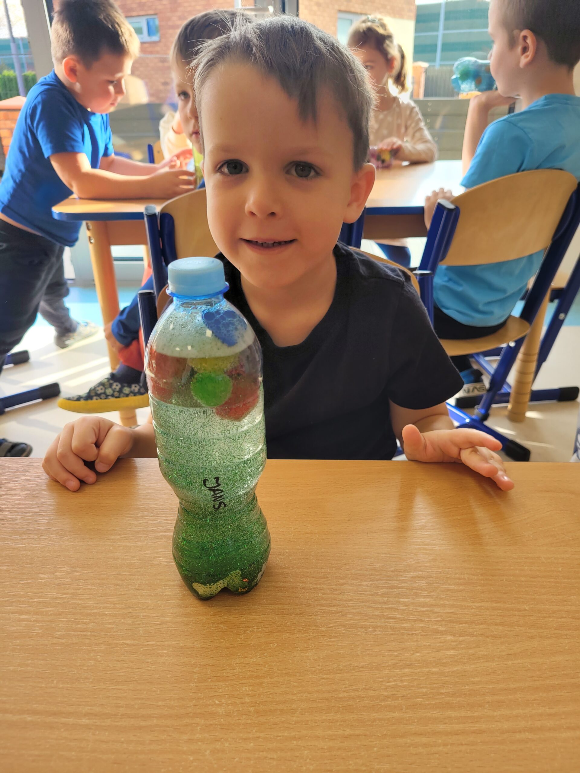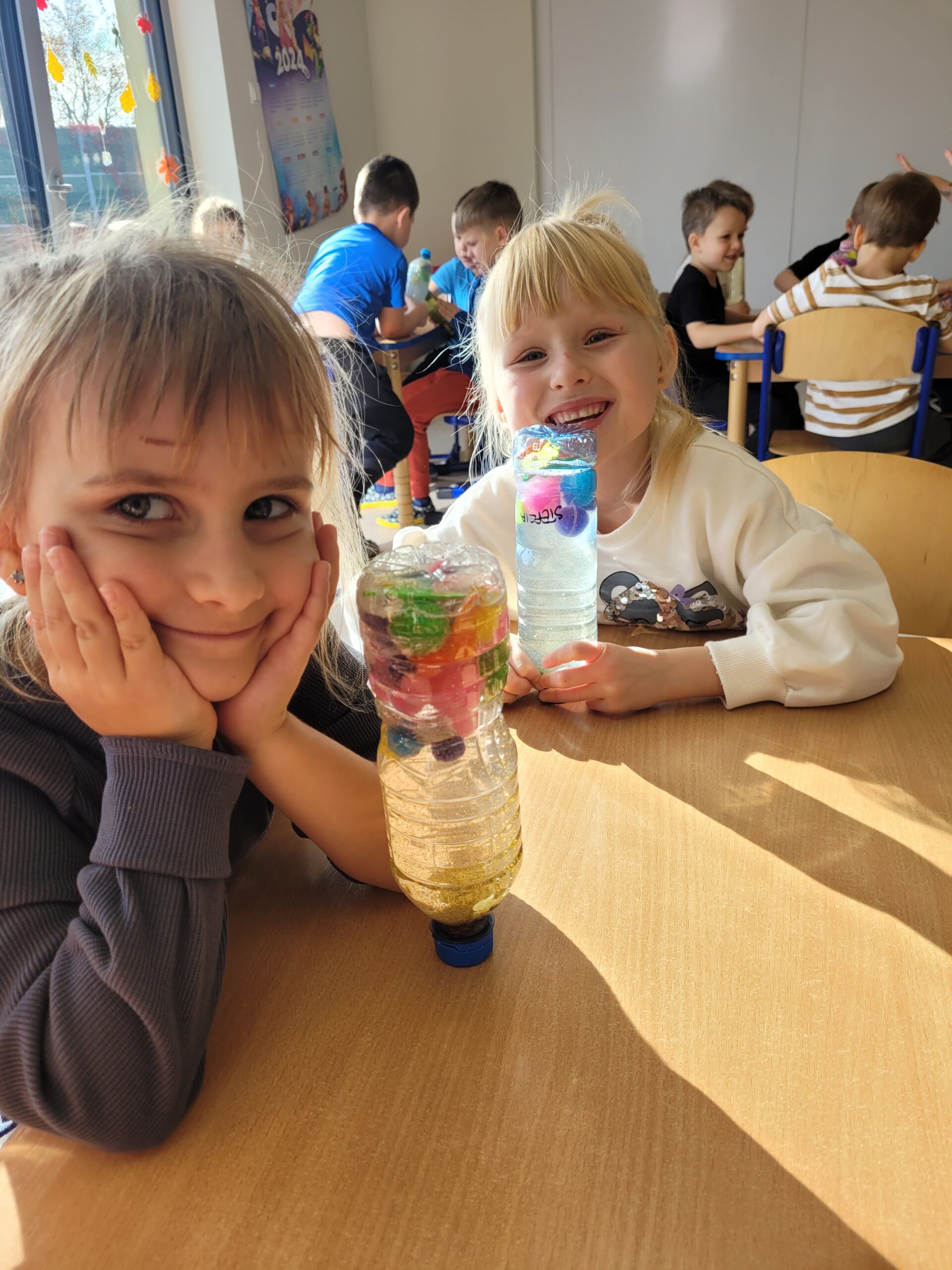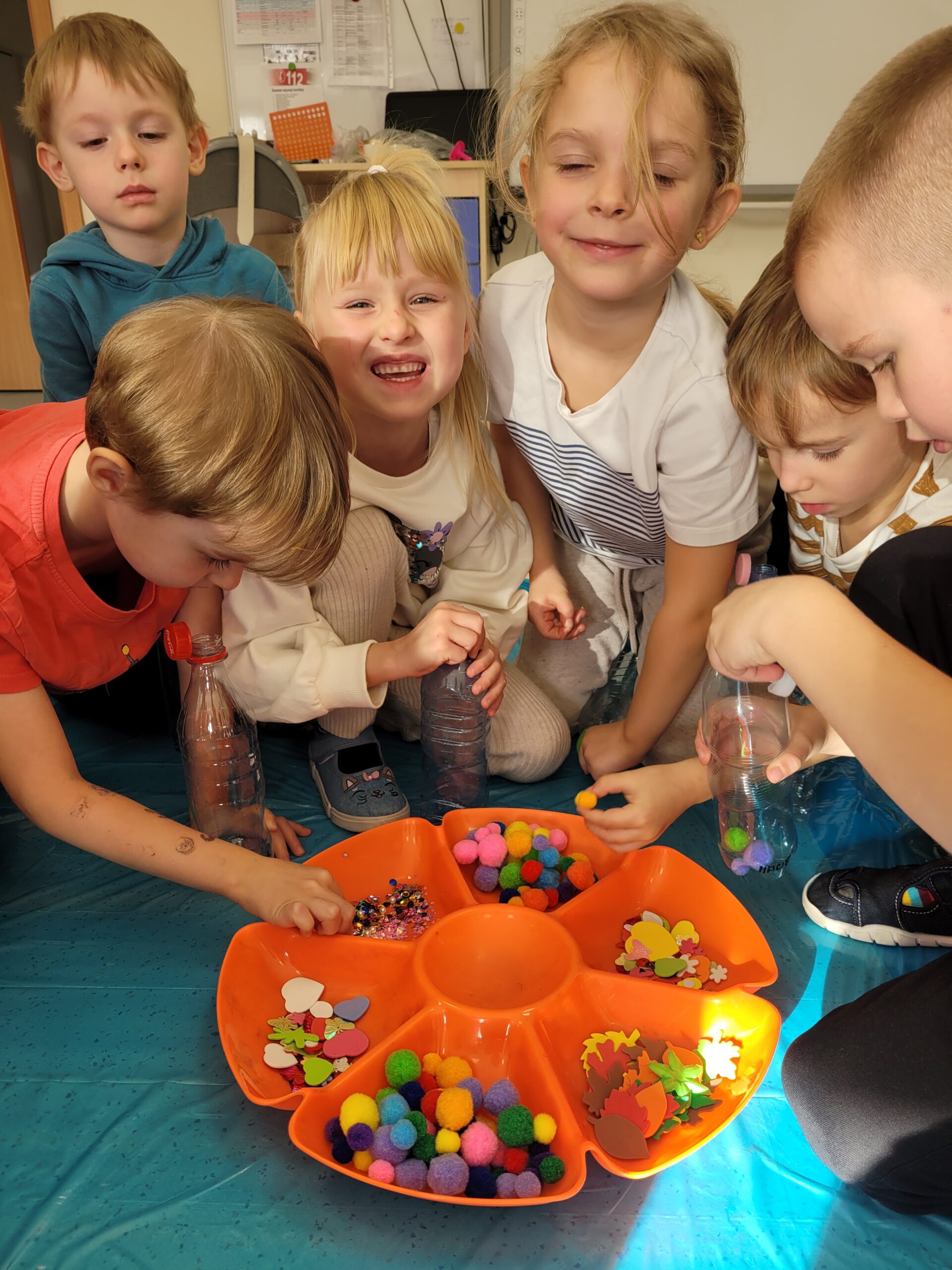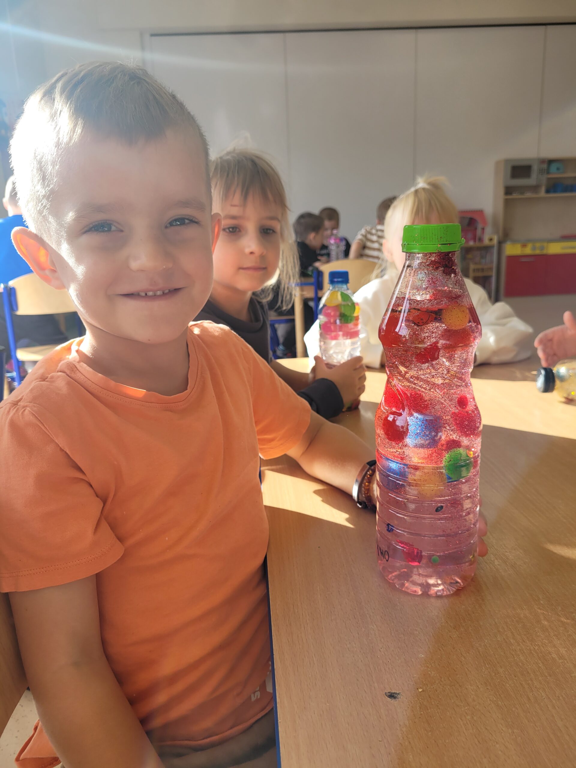 W dniu 23 października w grupie Kropek odbyły się warsztaty sensoryczne, podczas których dzieci miały okazję samodzielnie wykonać „magiczne butelki”. Celem warsztatów sensorycznych było doskonale umiejętności chwytu pęsetowego oraz chwytu szczypcowego, rozwijanie umiejętności dokonywania wyboru oraz pobudzenie zmysłu dotyku oraz wzroku.
