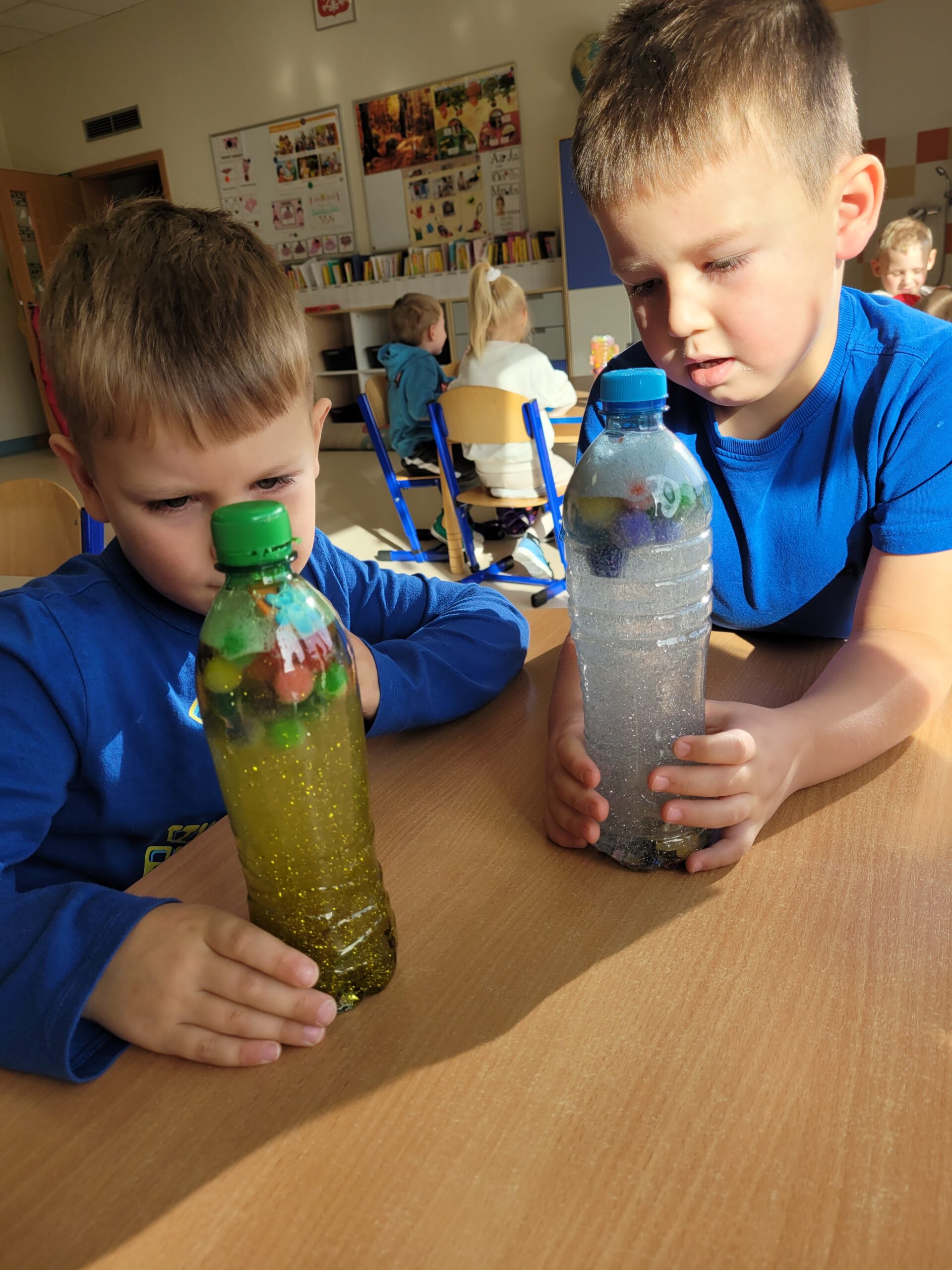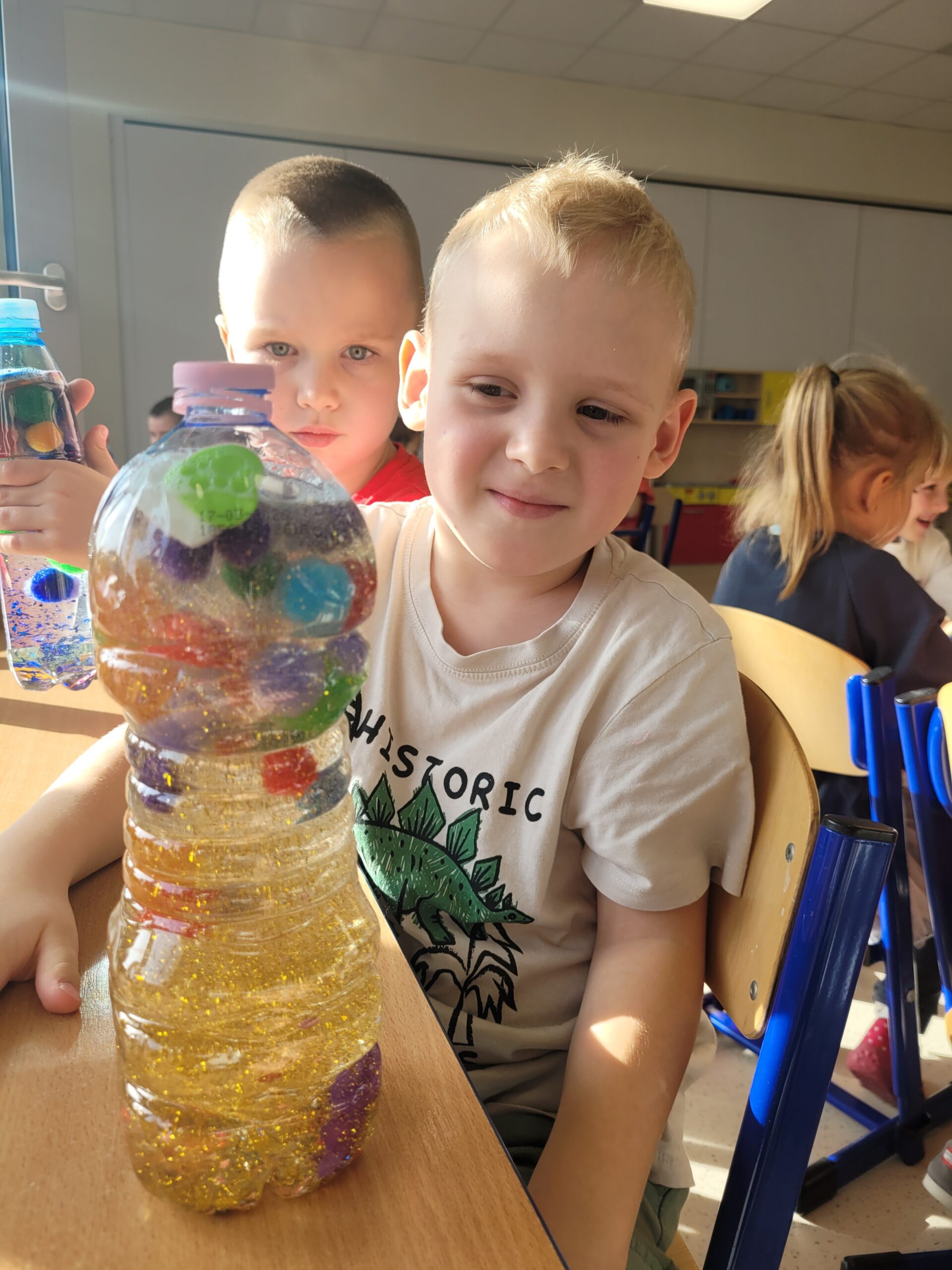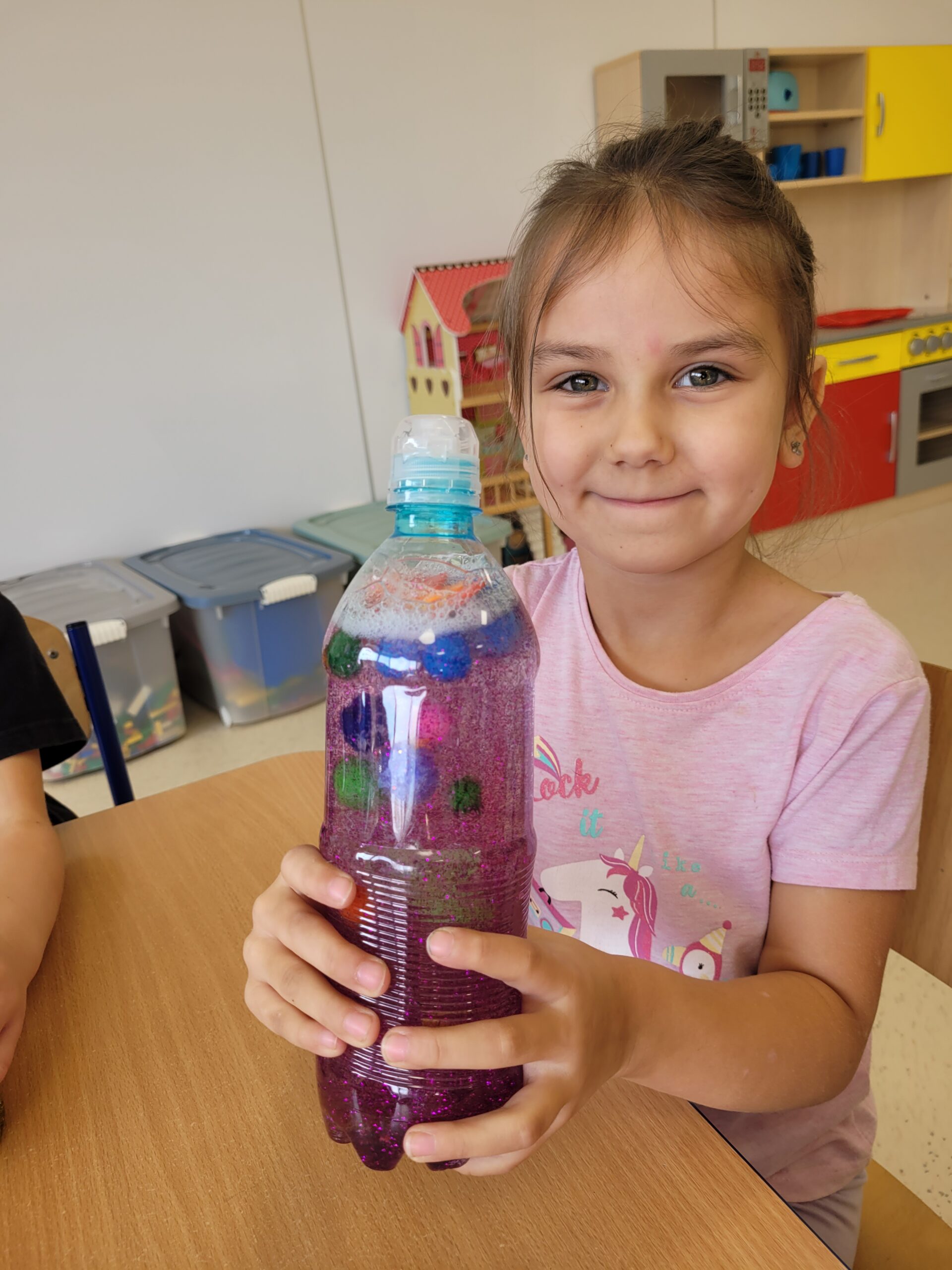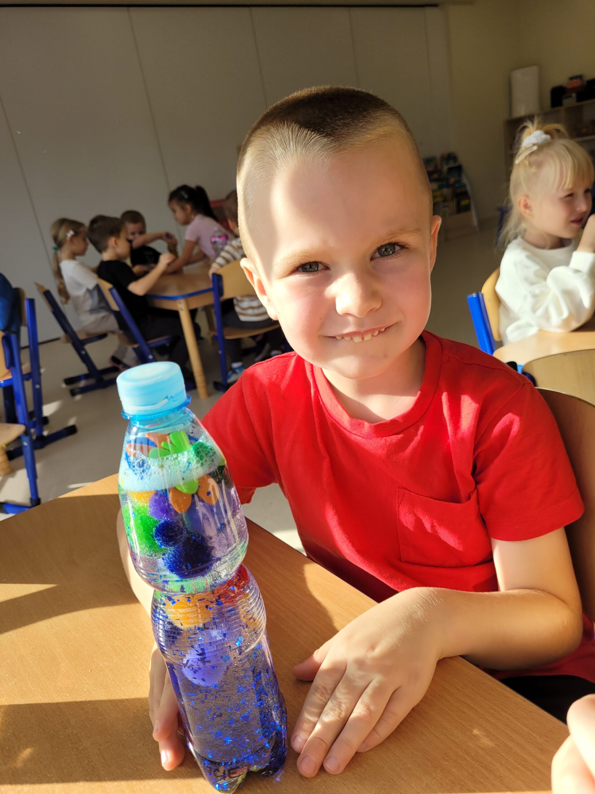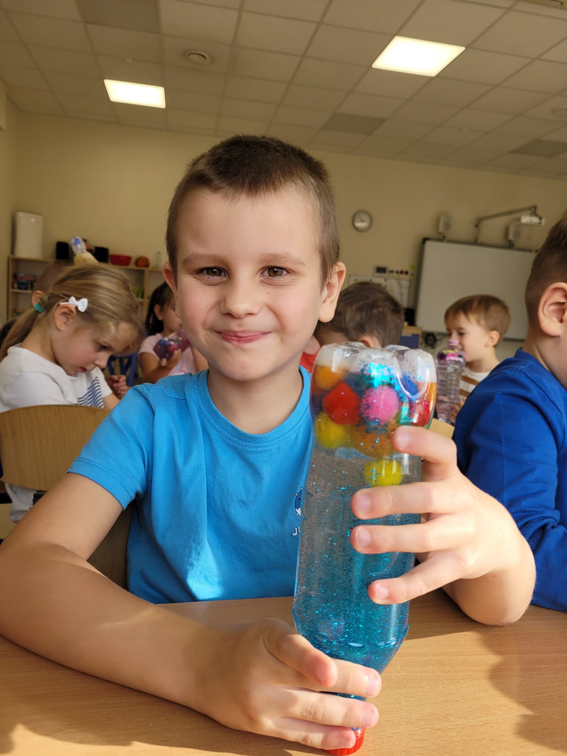 W dniu 23 października w grupie Kropek odbyły się warsztaty sensoryczne, podczas których dzieci miały okazję samodzielnie wykonać „magiczne butelki”. Celem warsztatów sensorycznych było doskonale umiejętności chwytu pęsetowego oraz chwytu szczypcowego, rozwijanie umiejętności dokonywania wyboru oraz pobudzenie zmysłu dotyku oraz wzroku.