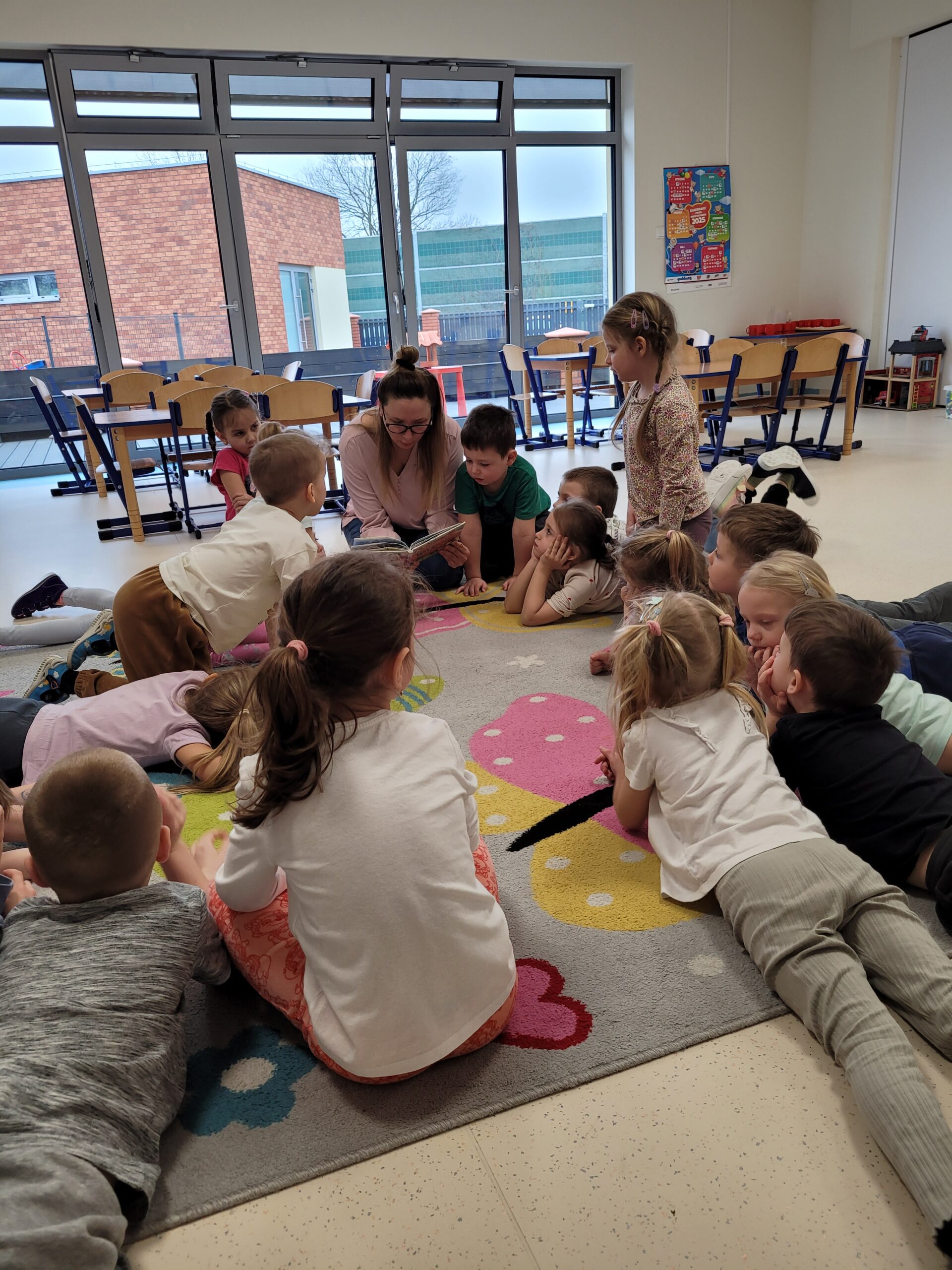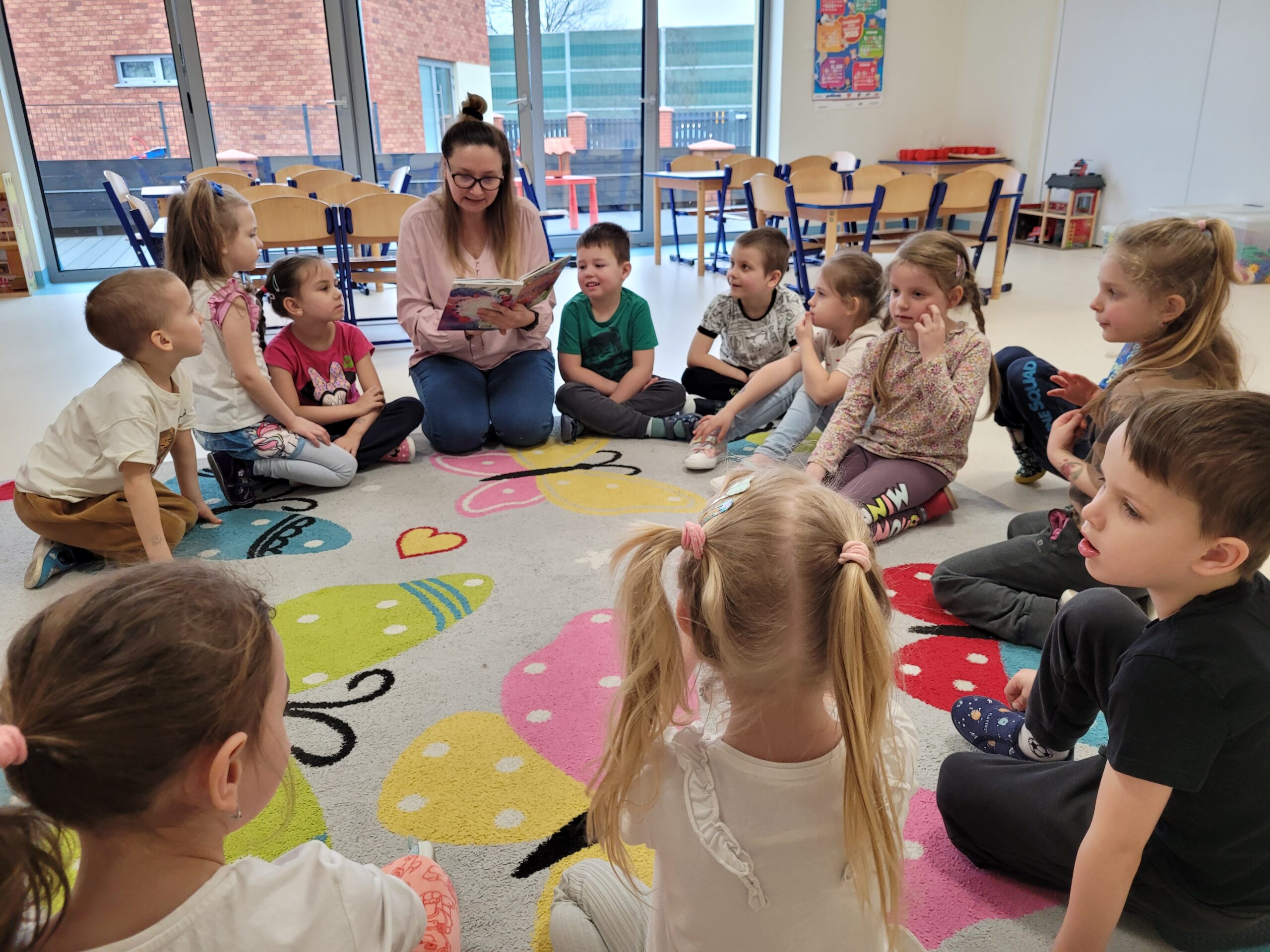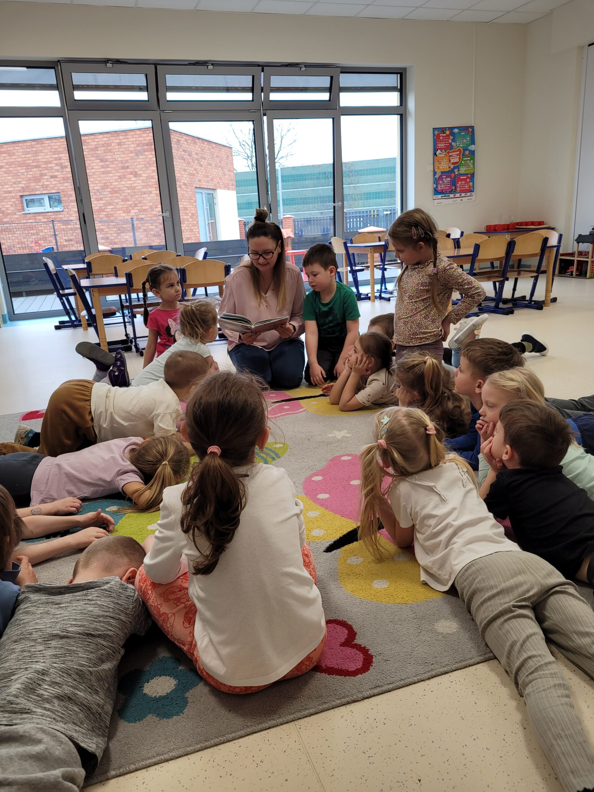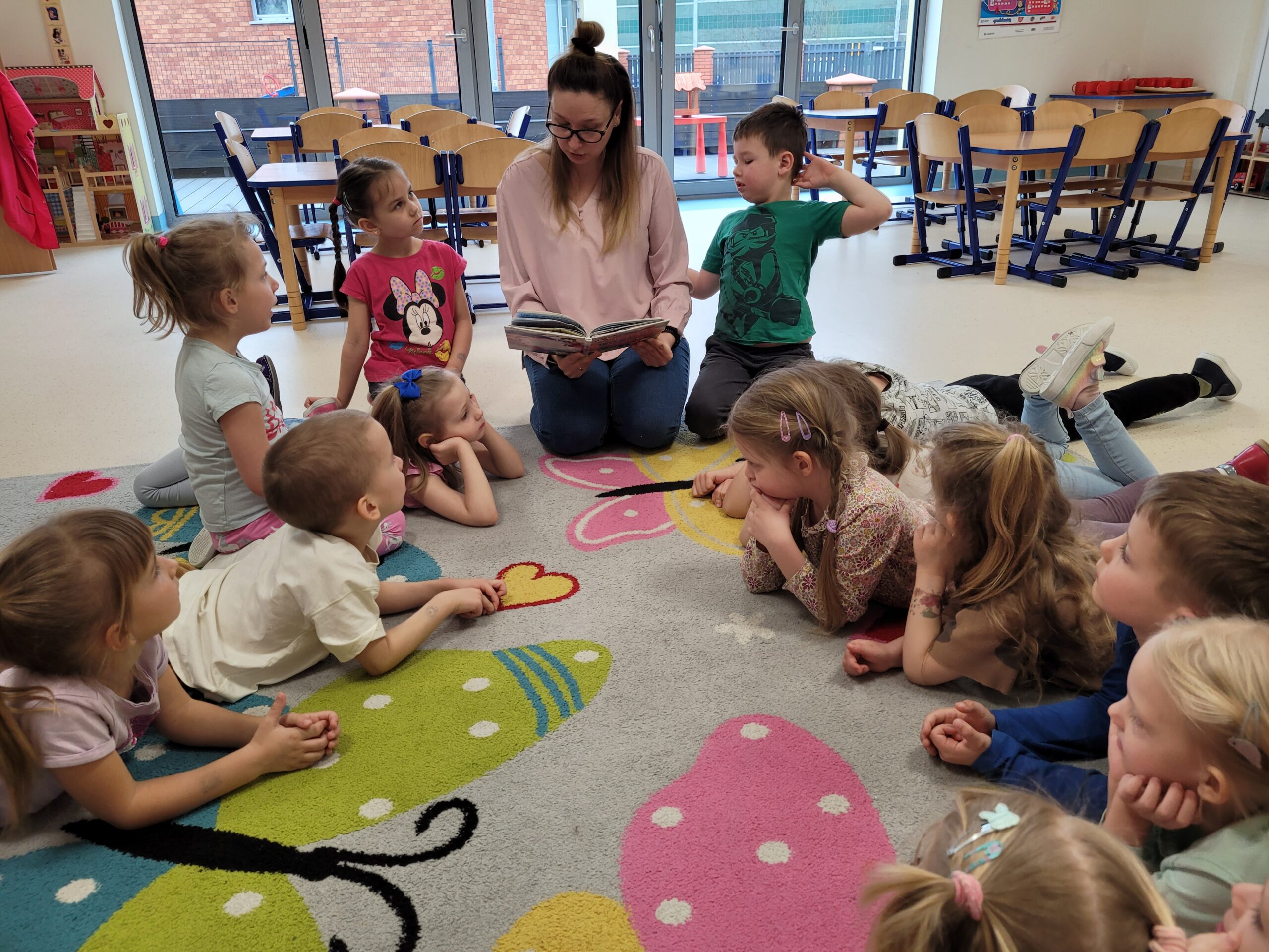 W dniu 11.03.2025 r grupę Kropek odwiedziła Pani Patrycja Demska, która z wielkim zaangażowaniem przeprowadziła zajecia czytelnicze w towarzystwie dzieci i wychowawcy. Podczas zajęć czytelniczych Pani Patrycja przeczytała dzieciom wiersze Juliana Tuwima. Zajęcia czytelnicze miały na celu pogłębianie świadomości społecznej o potrzebie głośnego czytania dzieciom, rozwijanie u dzieci pasji czytania, zainteresowanie literaturą, a także uczenie prawidłowych zasad zachowywania się w kontakcie z książką. Serdecznie dziękujemy Pani Patrycji Demskiej za przeprowadzenie zajęć czytelniczych. Były one dla dzieci świetnym doświadczeniem.