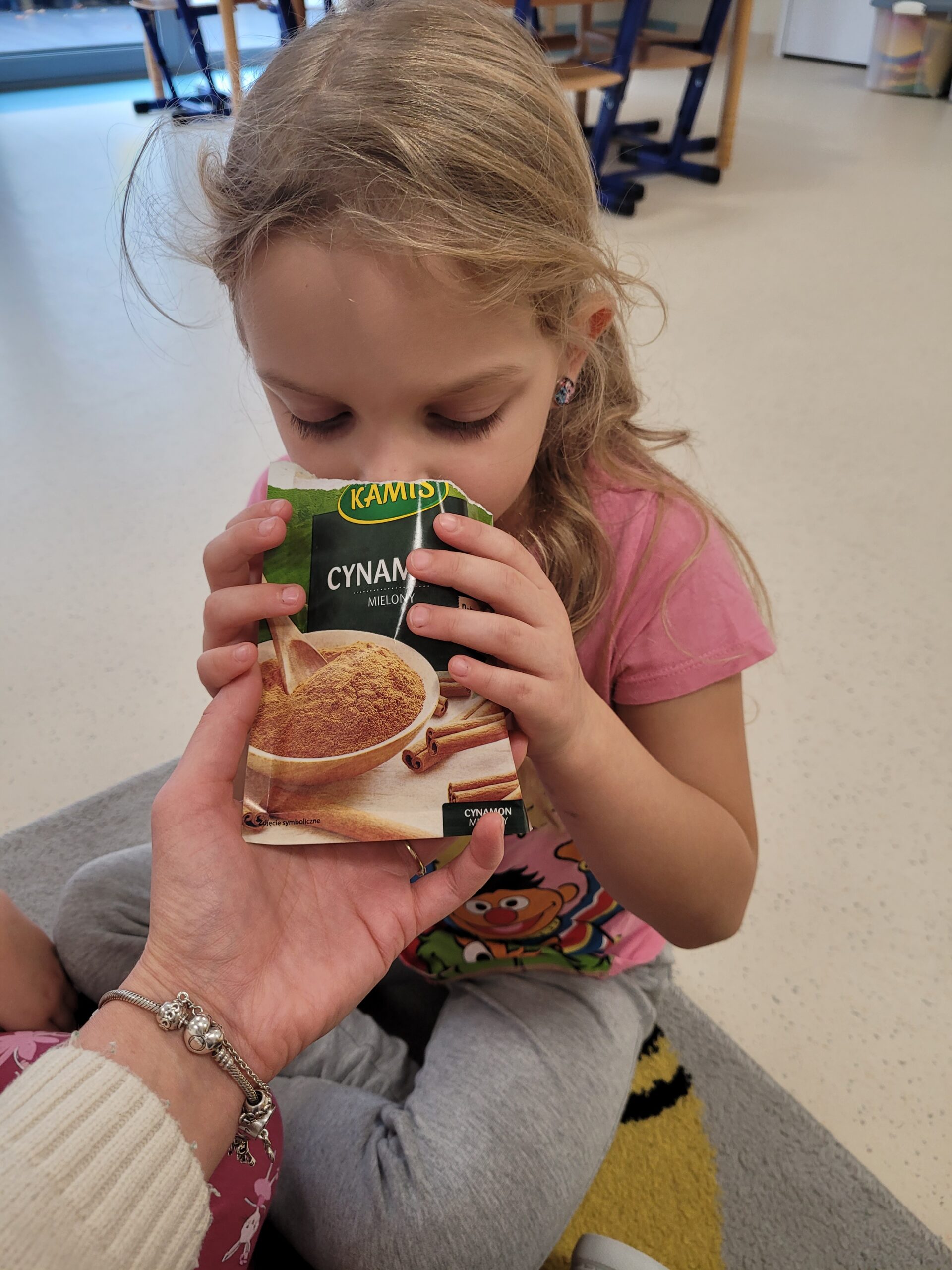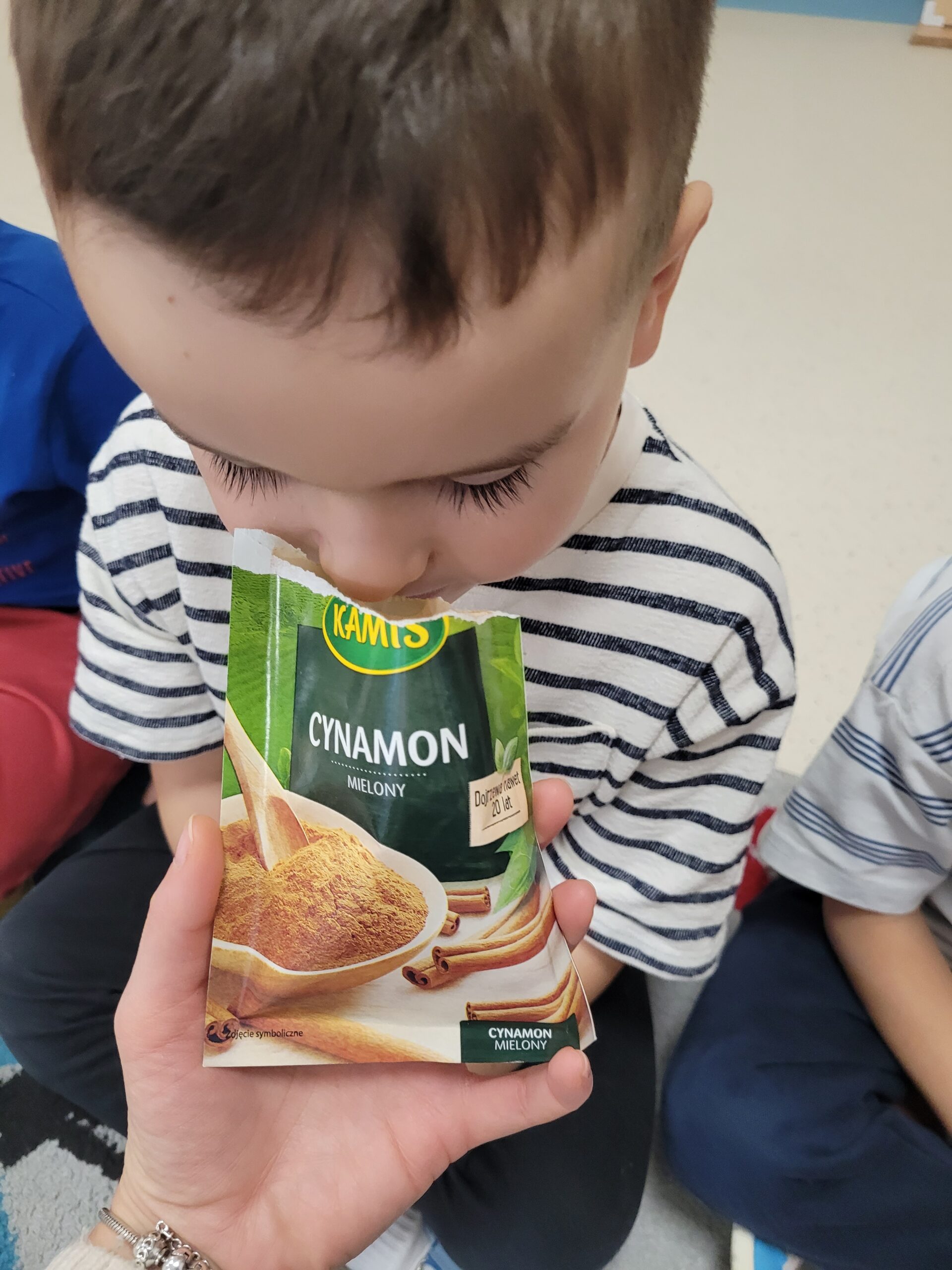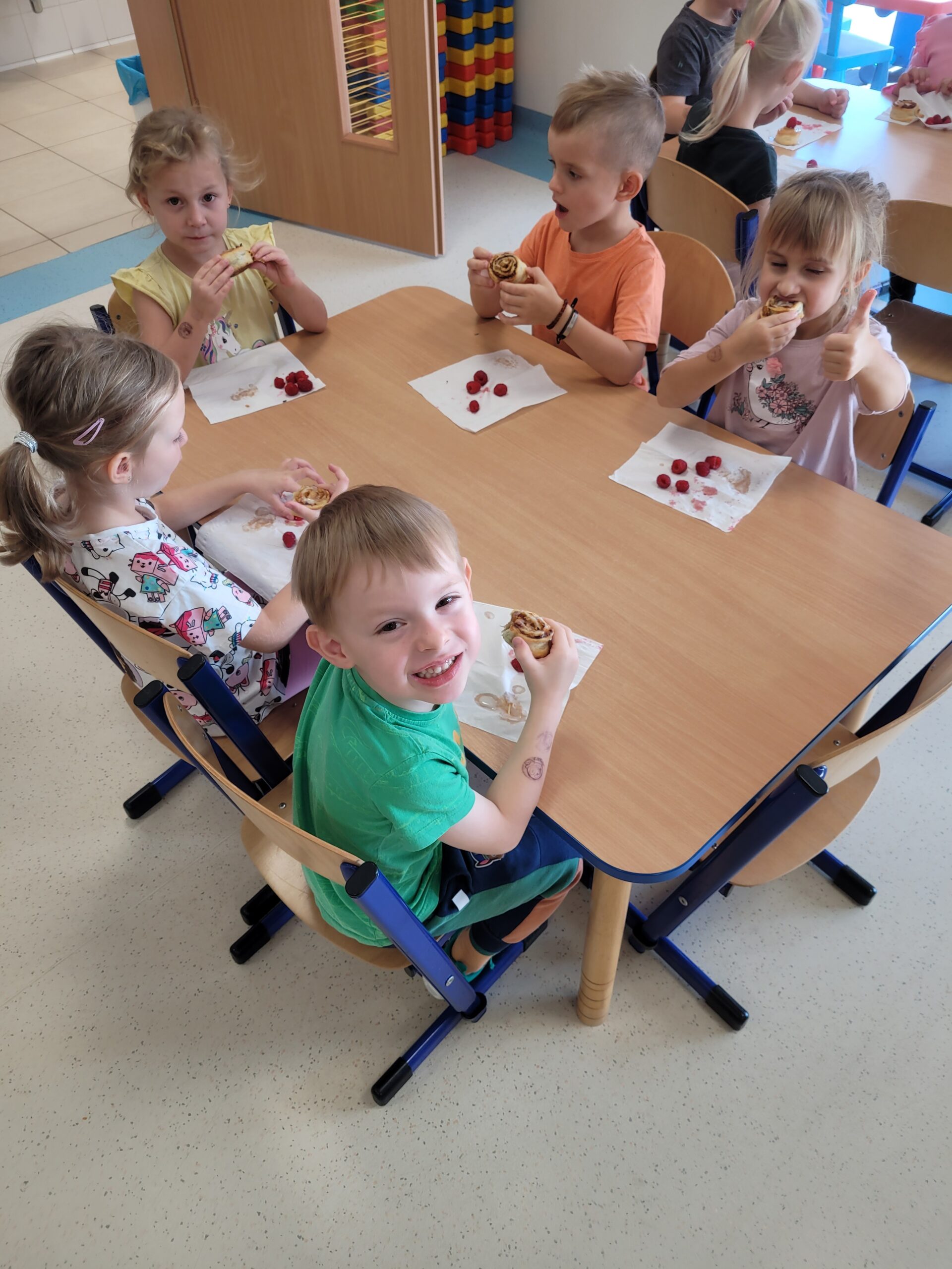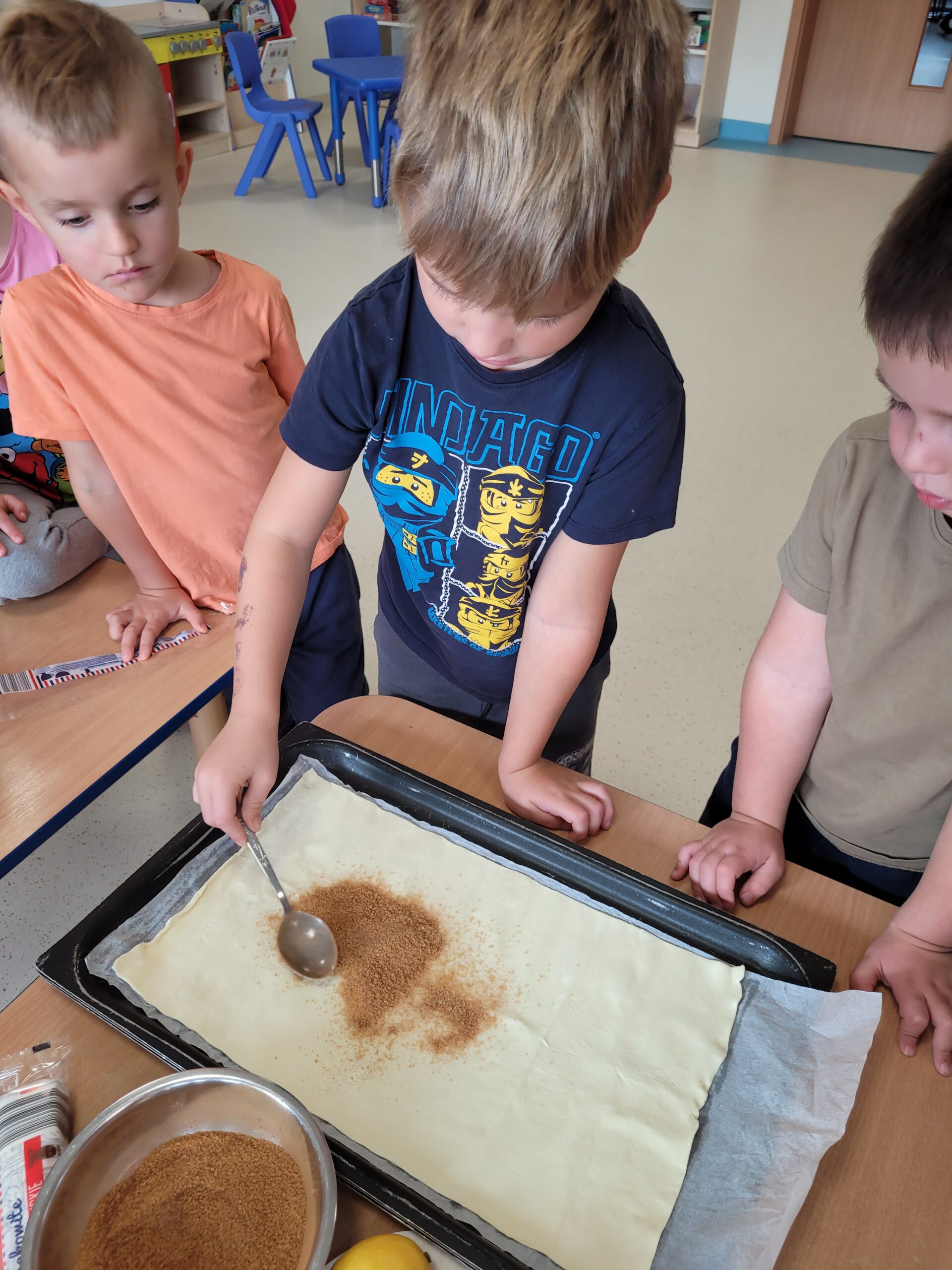 „Cynamonowo Nam” – pod takim hasłem przewodnim dzieci w grupie „Kropek” spędziły dzień w przedszkolu. W dniu 15.10 „Kropki” wzięły udział w warsztatach kulinarnych, podczas których miały okazję zrobić przepyszne „cynamonki”. Dzieci wzięły również udział w zajęciach dydaktycznych, podczas których miały okazję użyć zmysłu węchu oraz smaku oraz poszerzyły swoją wiedzę na temat tego jak powstaje cynamon.