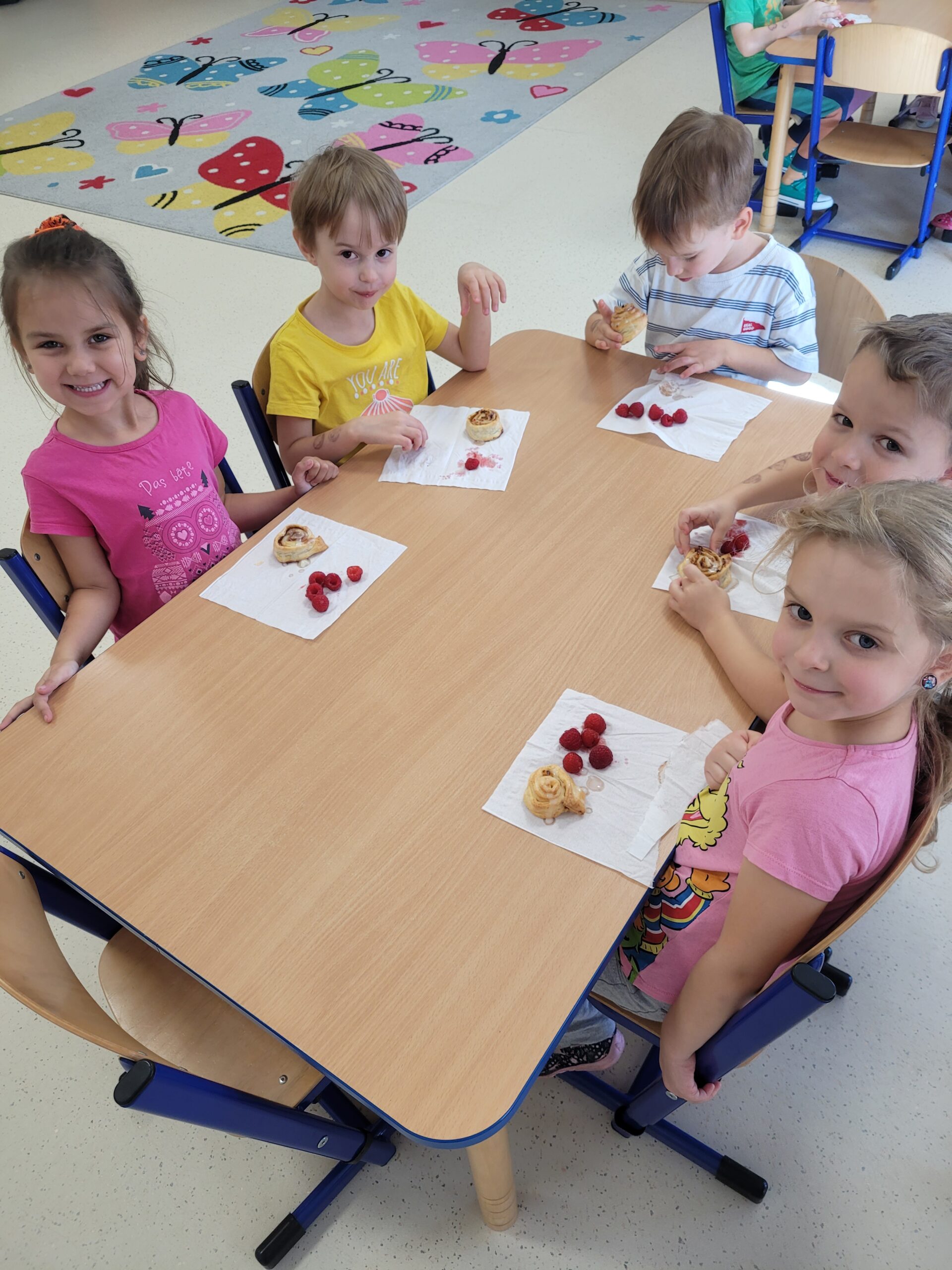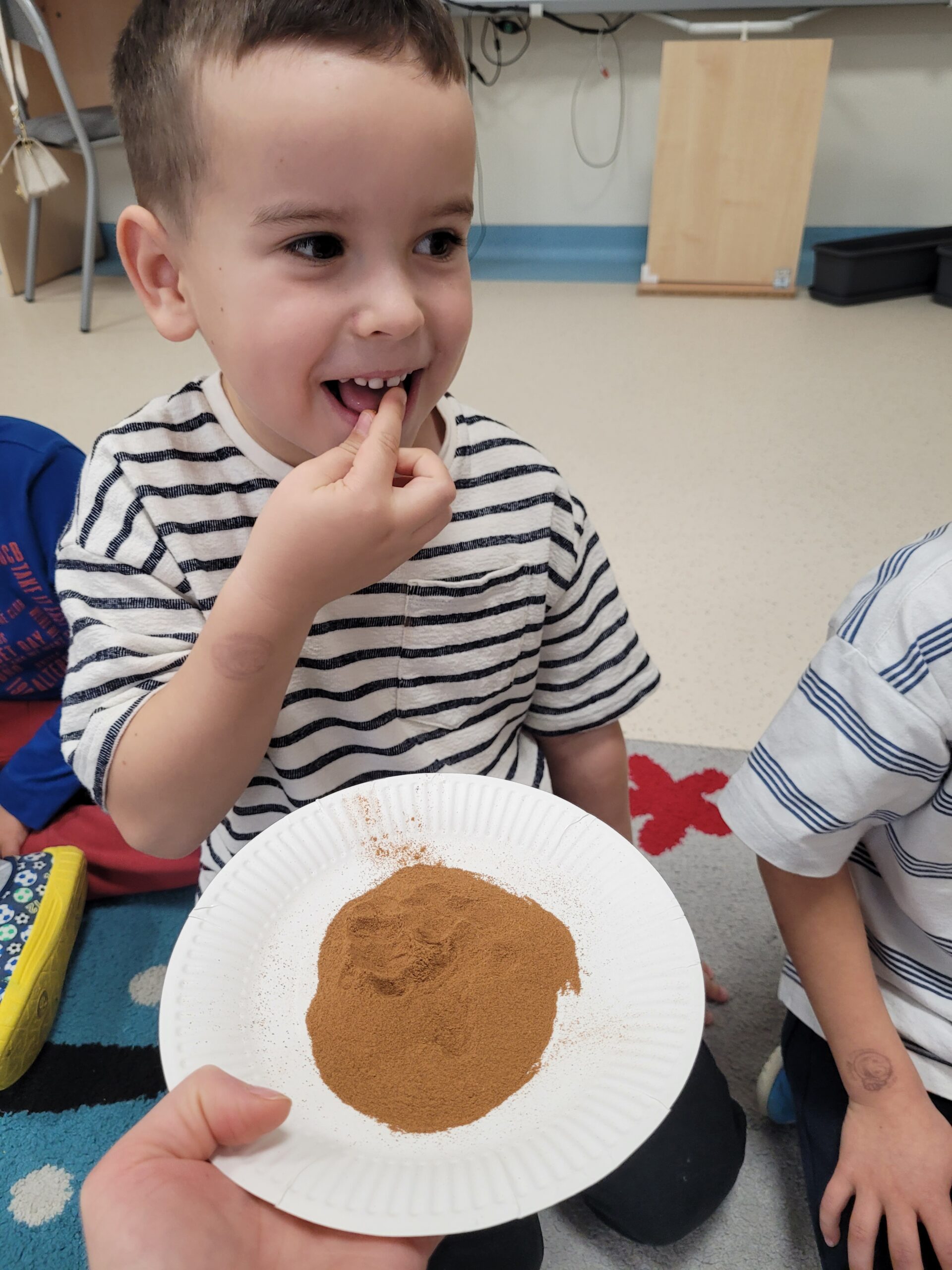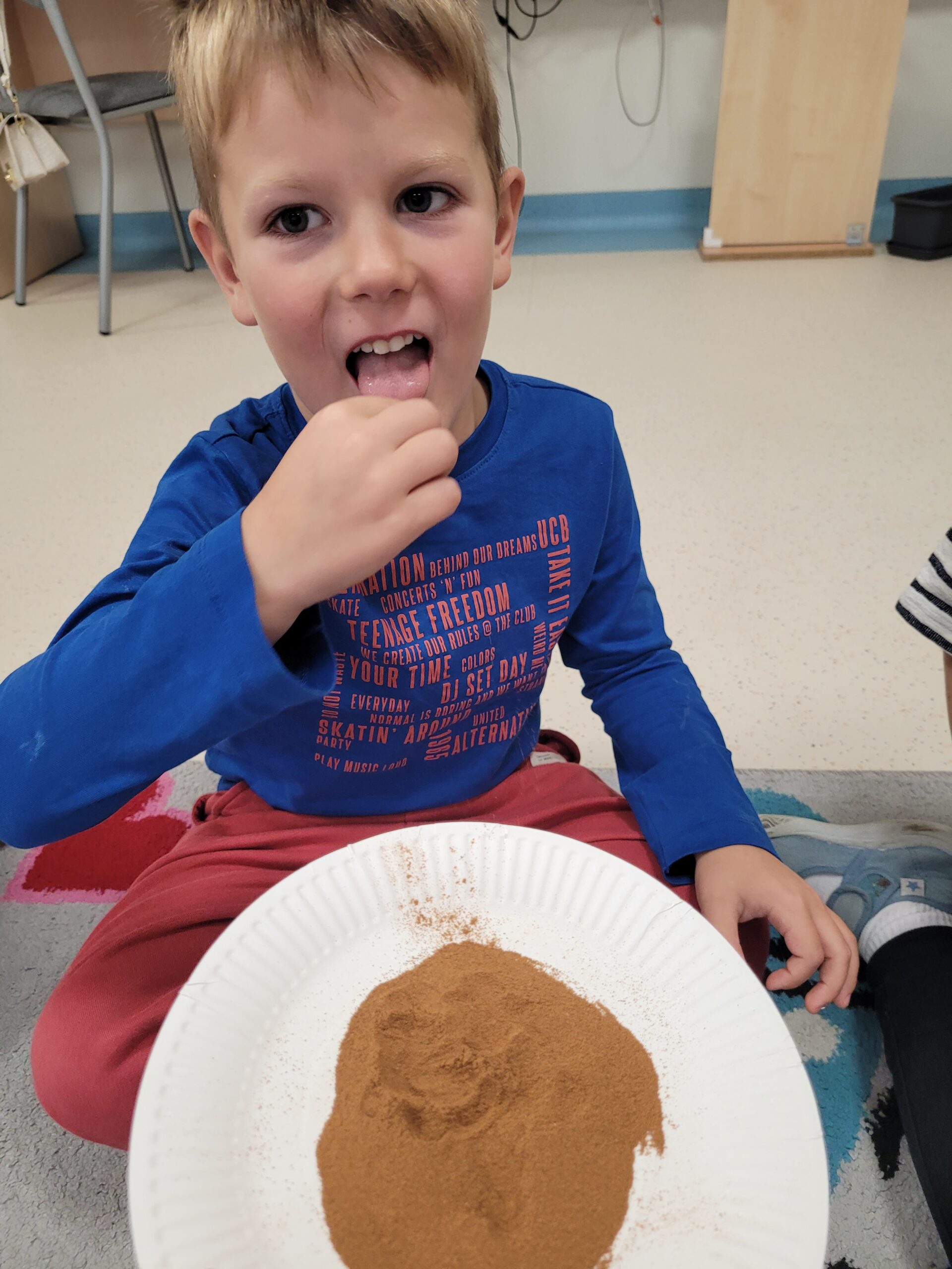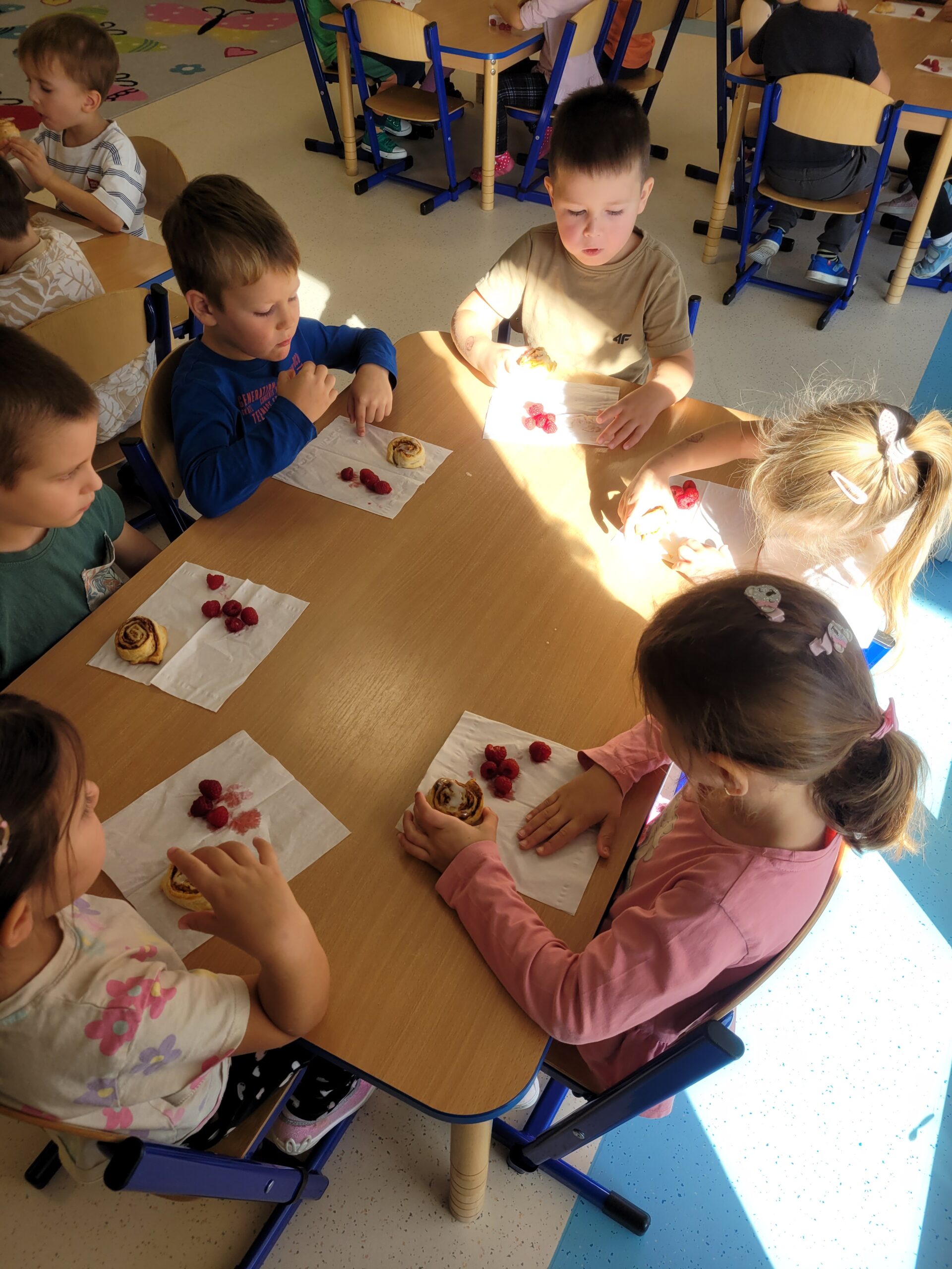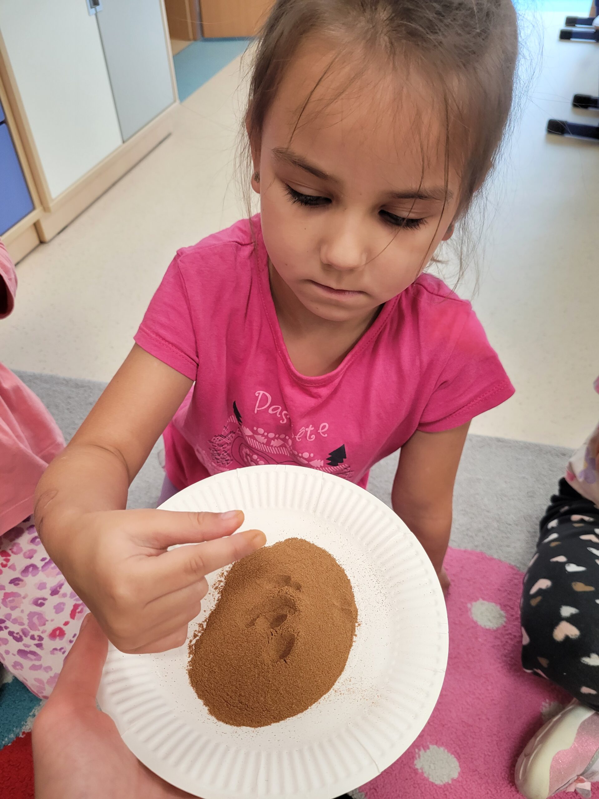 „Cynamonowo Nam” – pod takim hasłem przewodnim dzieci w grupie „Kropek” spędziły dzień w przedszkolu. W dniu 15.10 „Kropki” wzięły udział w warsztatach kulinarnych, podczas których miały okazję zrobić przepyszne „cynamonki”. Dzieci wzięły również udział w zajęciach dydaktycznych, podczas których miały okazję użyć zmysłu węchu oraz smaku oraz poszerzyły swoją wiedzę na temat tego jak powstaje cynamon.