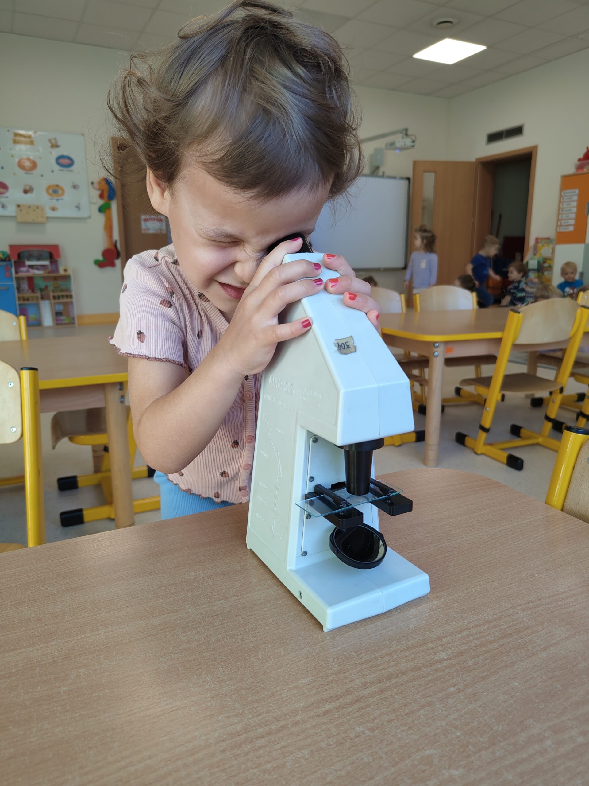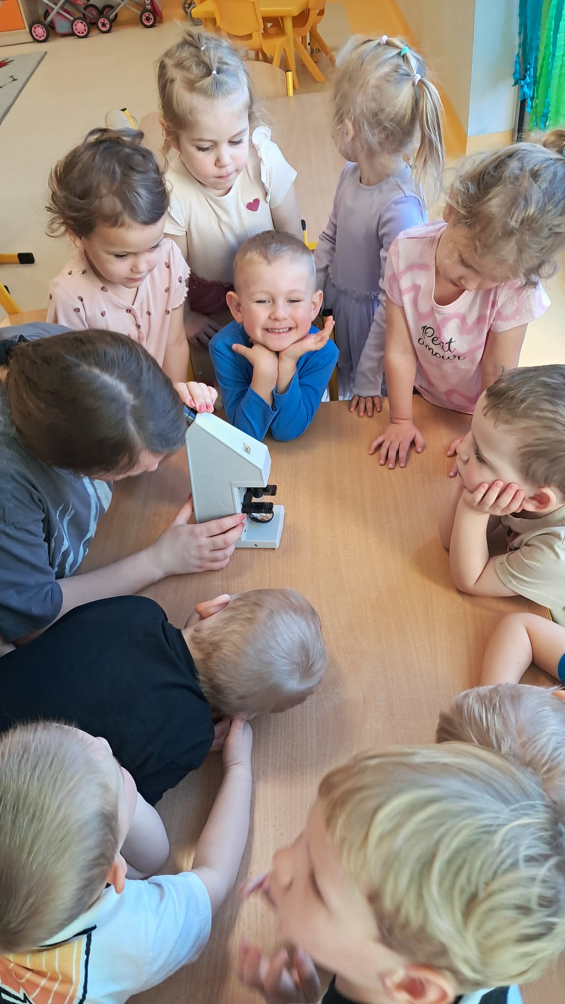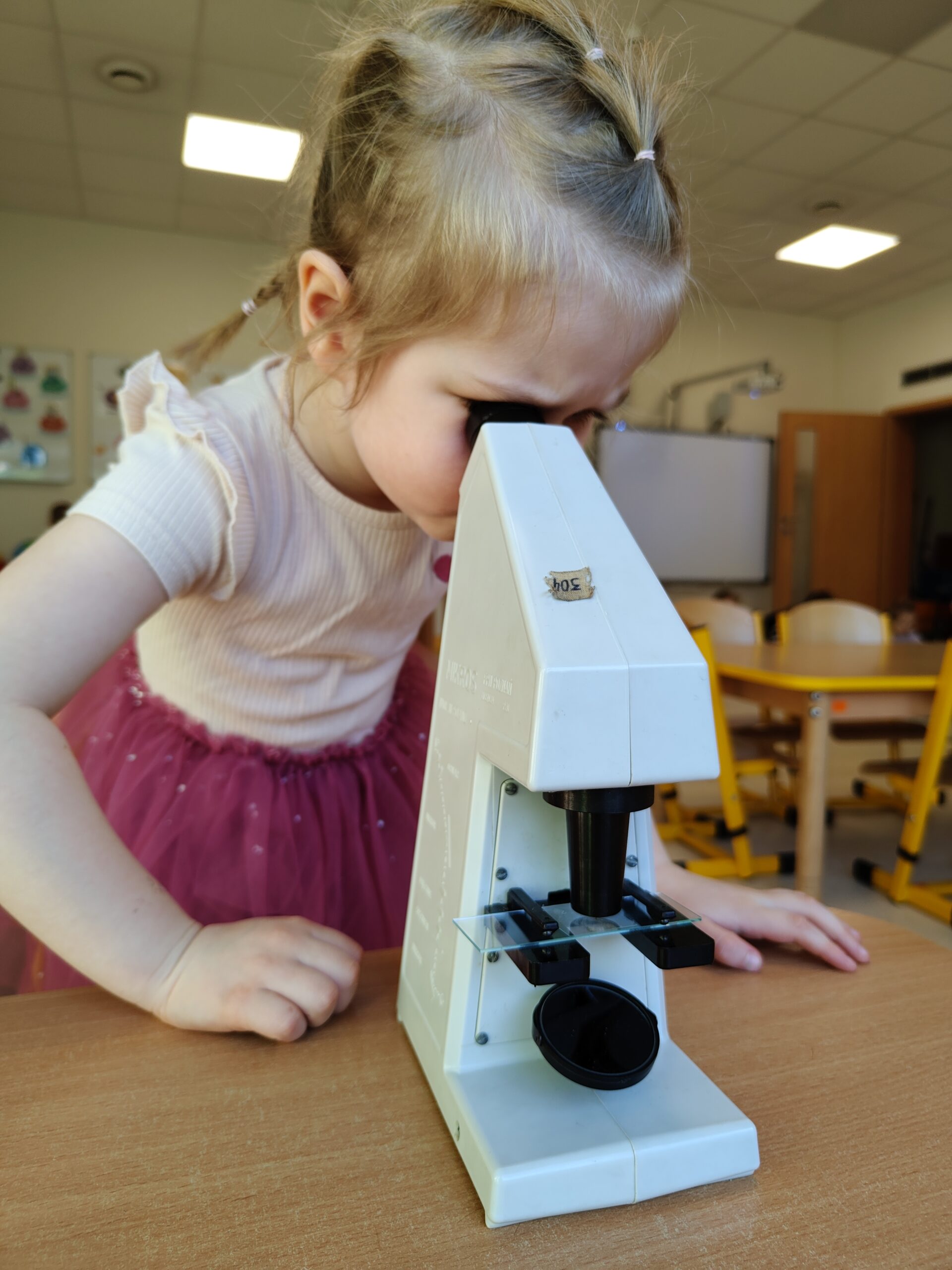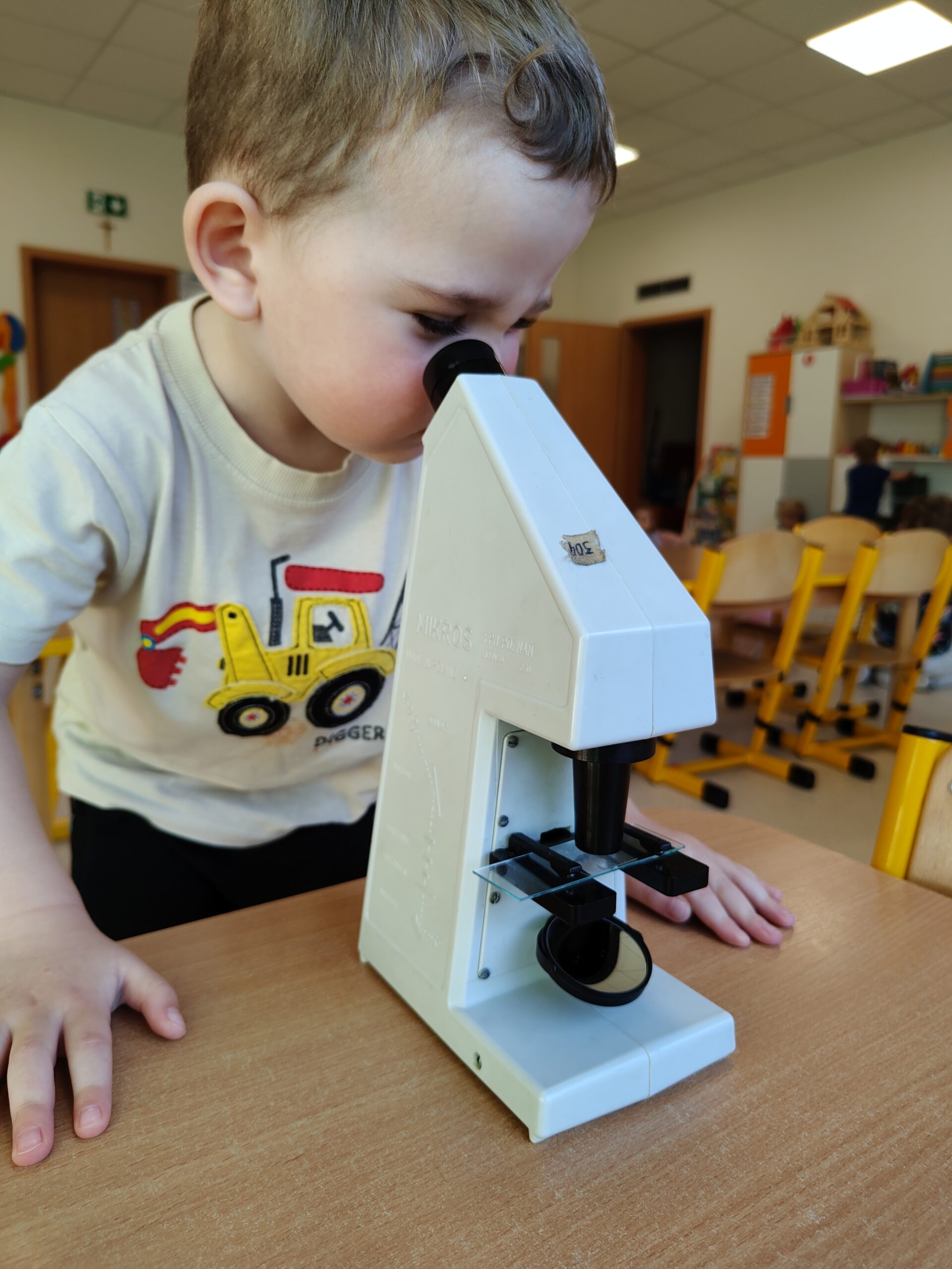Dzieci z grupy „Kotki” zamieniły się dziś w prawdziwych małych naukowców 🔬 Pod lupę (a właściwie pod mikroskop!) trafiła woda z kałuży, włosy oraz kawałek pomidora. Było mnóstwo zdziwienia, zachwytu i pytań: „A co to pływa?”, „Dlaczego to tak wygląda?”, „Czy to żyje?”. Obserwacje przez mikroskop okazały się fascynującą przygodą i świetną okazją do rozwijania ciekawości świata.