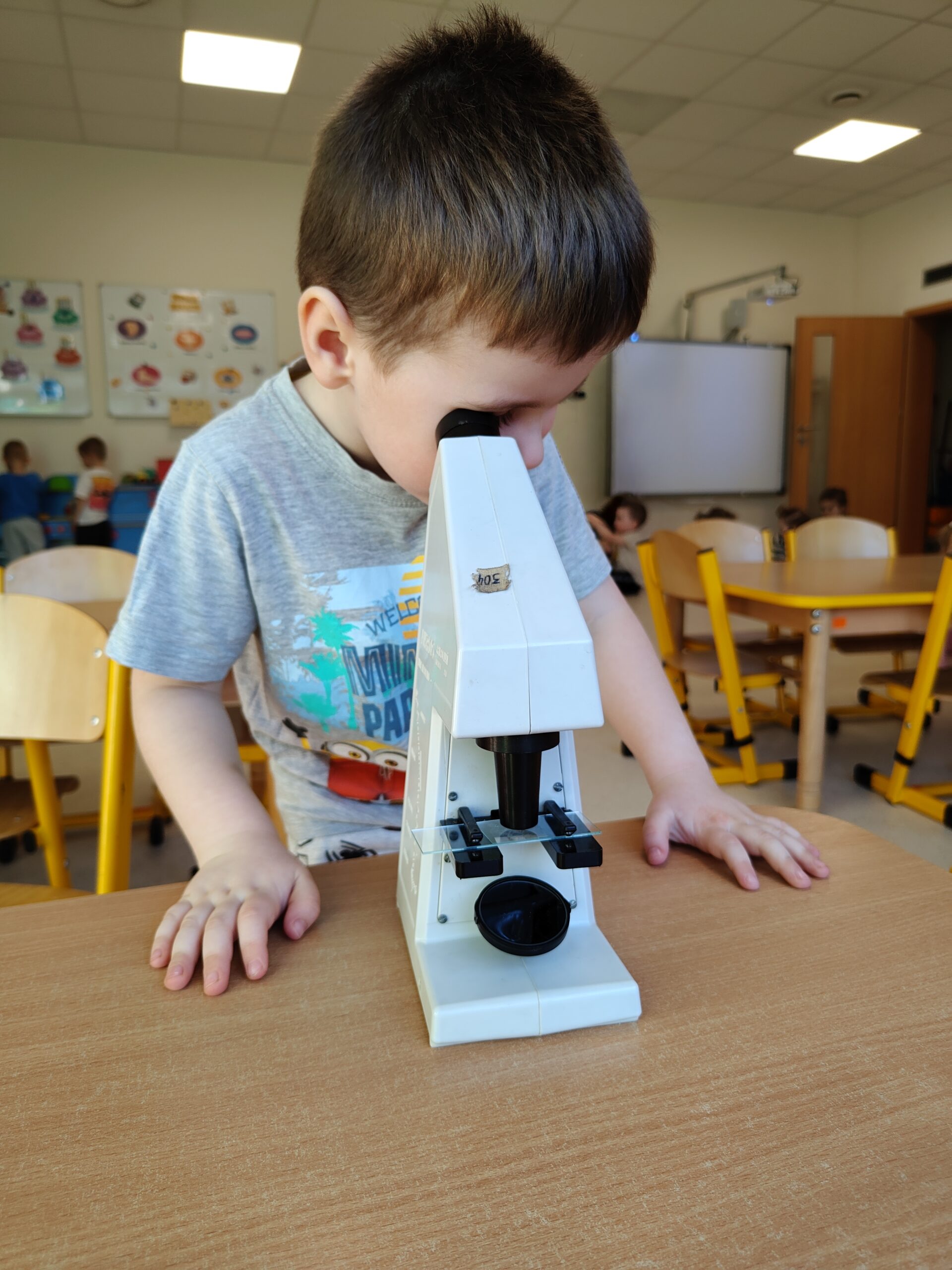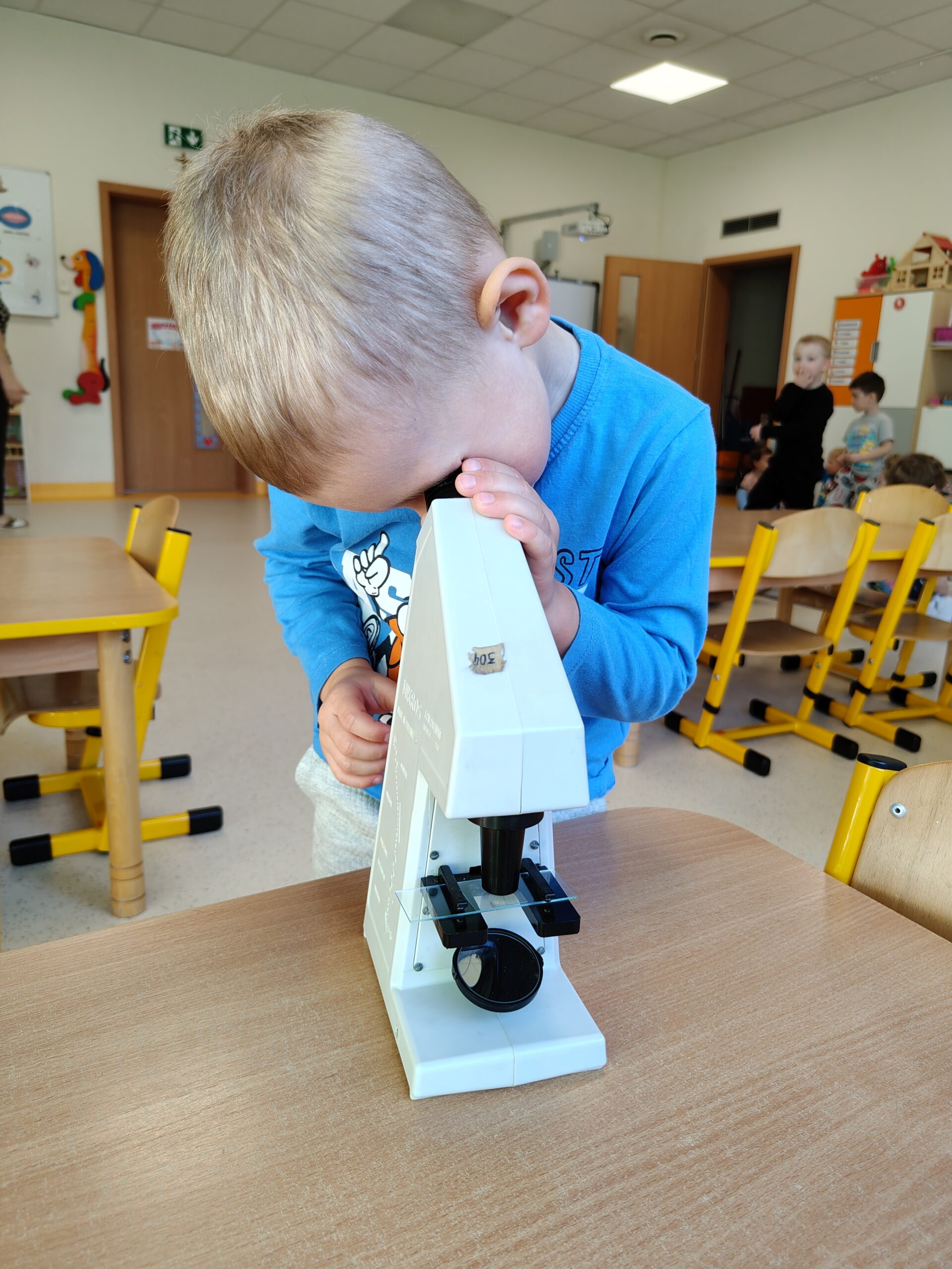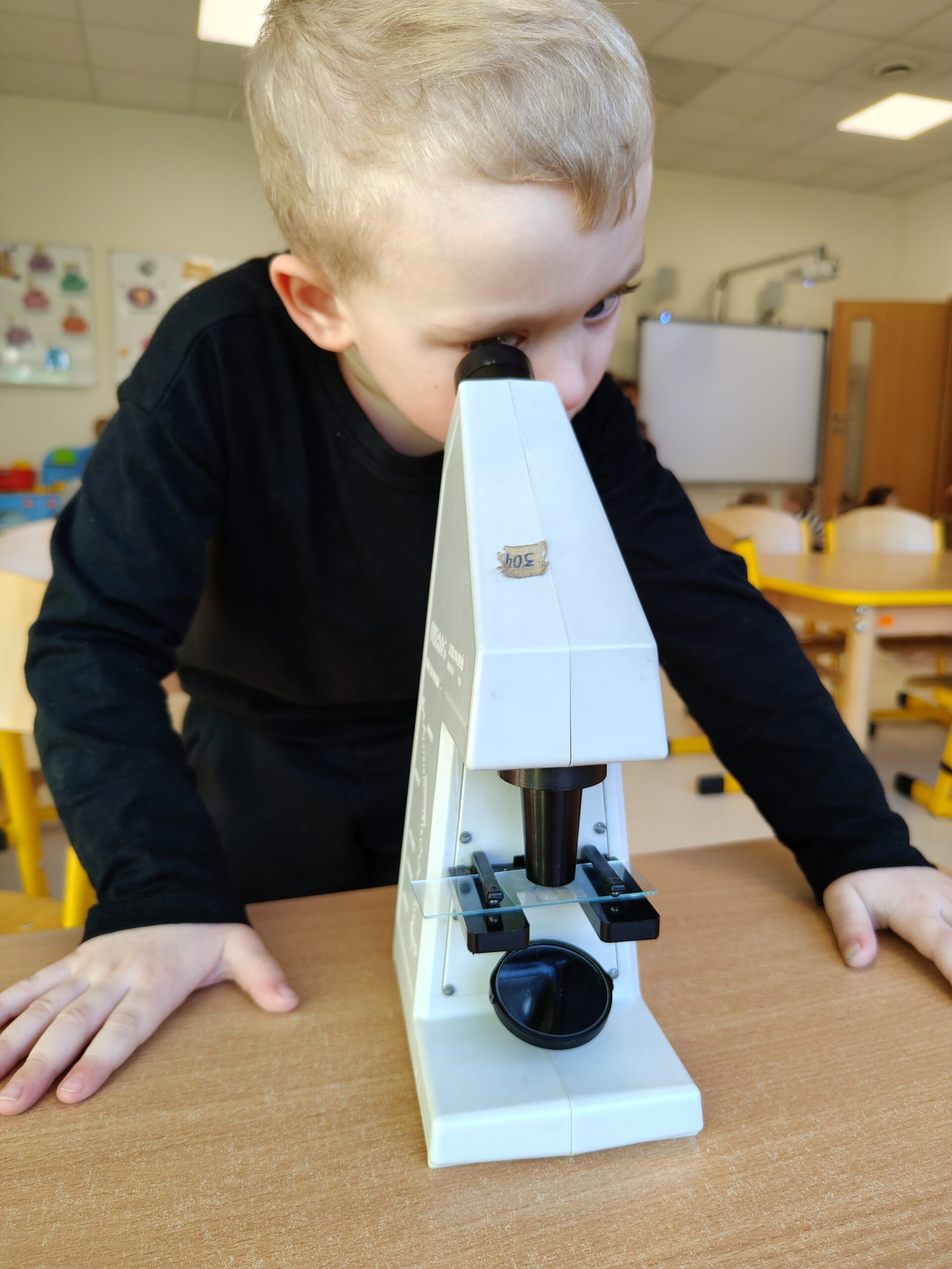 Dzieci z grupy „Kotki” zamieniły się dziś w prawdziwych małych naukowców 🔬 Pod lupę (a właściwie pod mikroskop!) trafiła woda z kałuży, włosy oraz kawałek pomidora. Było mnóstwo zdziwienia, zachwytu i pytań: „A co to pływa?”, „Dlaczego to tak wygląda?”, „Czy to żyje?”. Obserwacje przez mikroskop okazały się fascynującą przygodą i świetną okazją do rozwijania ciekawości świata.