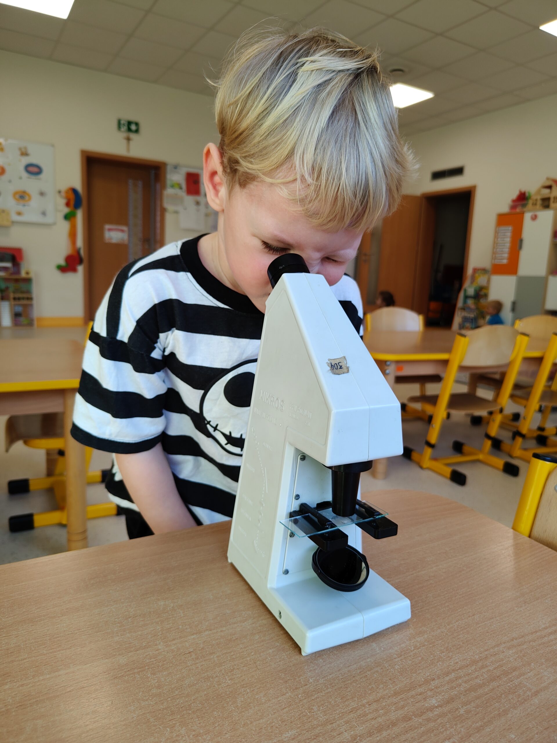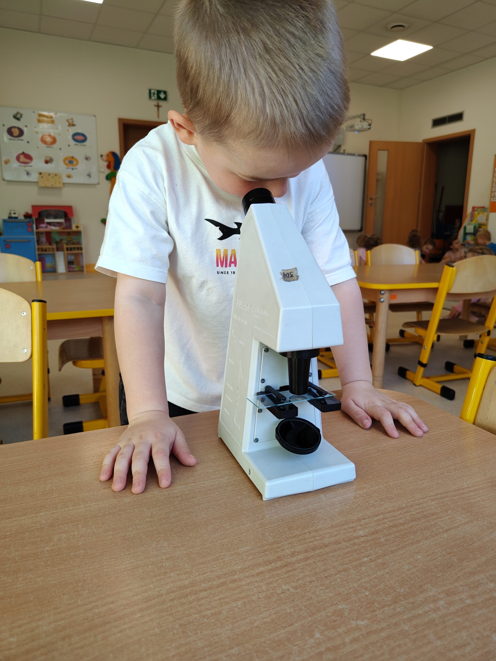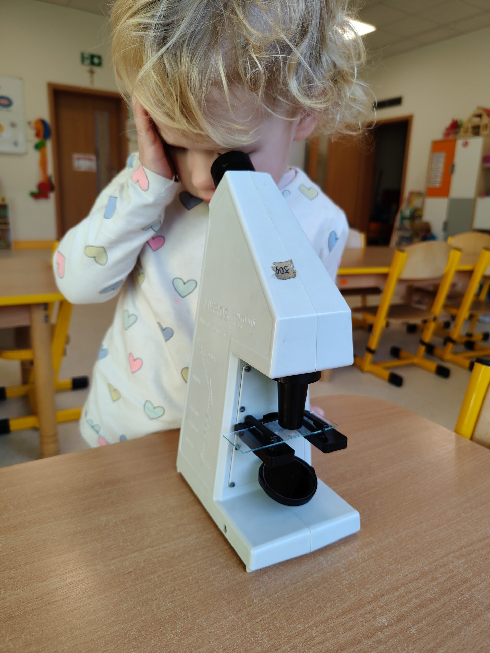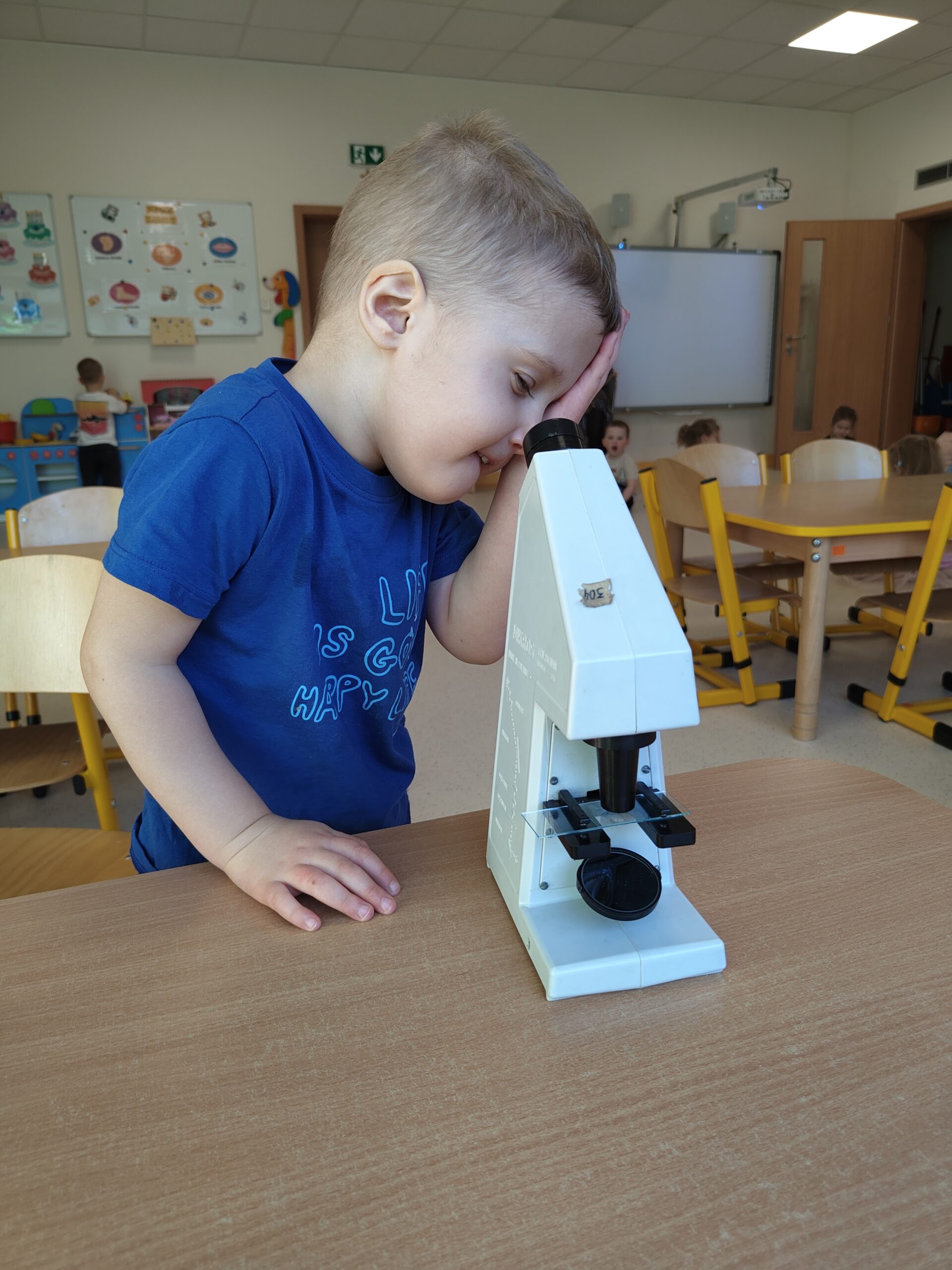 Dzieci z grupy „Kotki” zamieniły się dziś w prawdziwych małych naukowców 🔬 Pod lupę (a właściwie pod mikroskop!) trafiła woda z kałuży, włosy oraz kawałek pomidora. Było mnóstwo zdziwienia, zachwytu i pytań: „A co to pływa?”, „Dlaczego to tak wygląda?”, „Czy to żyje?”. Obserwacje przez mikroskop okazały się fascynującą przygodą i świetną okazją do rozwijania ciekawości świata.