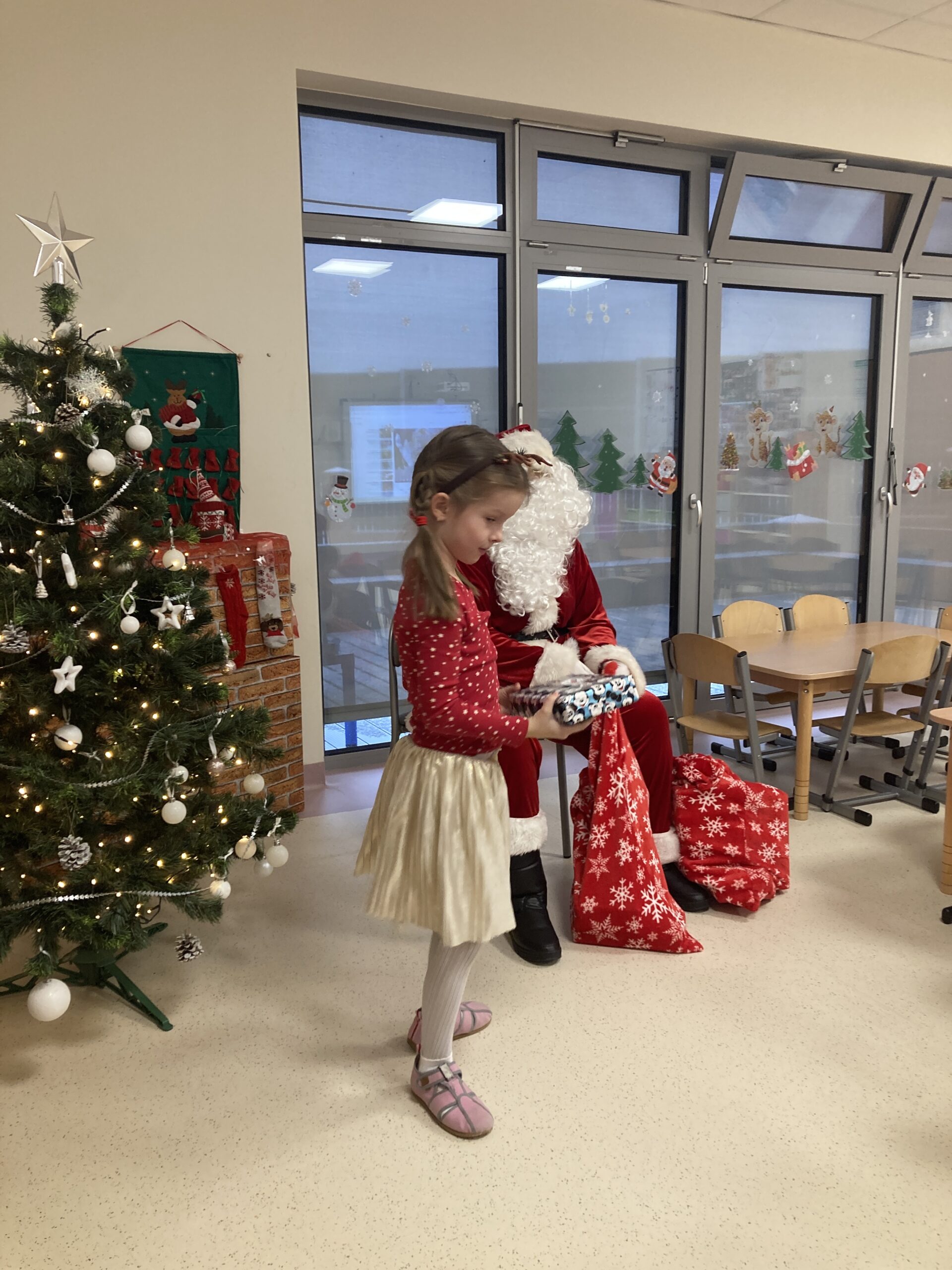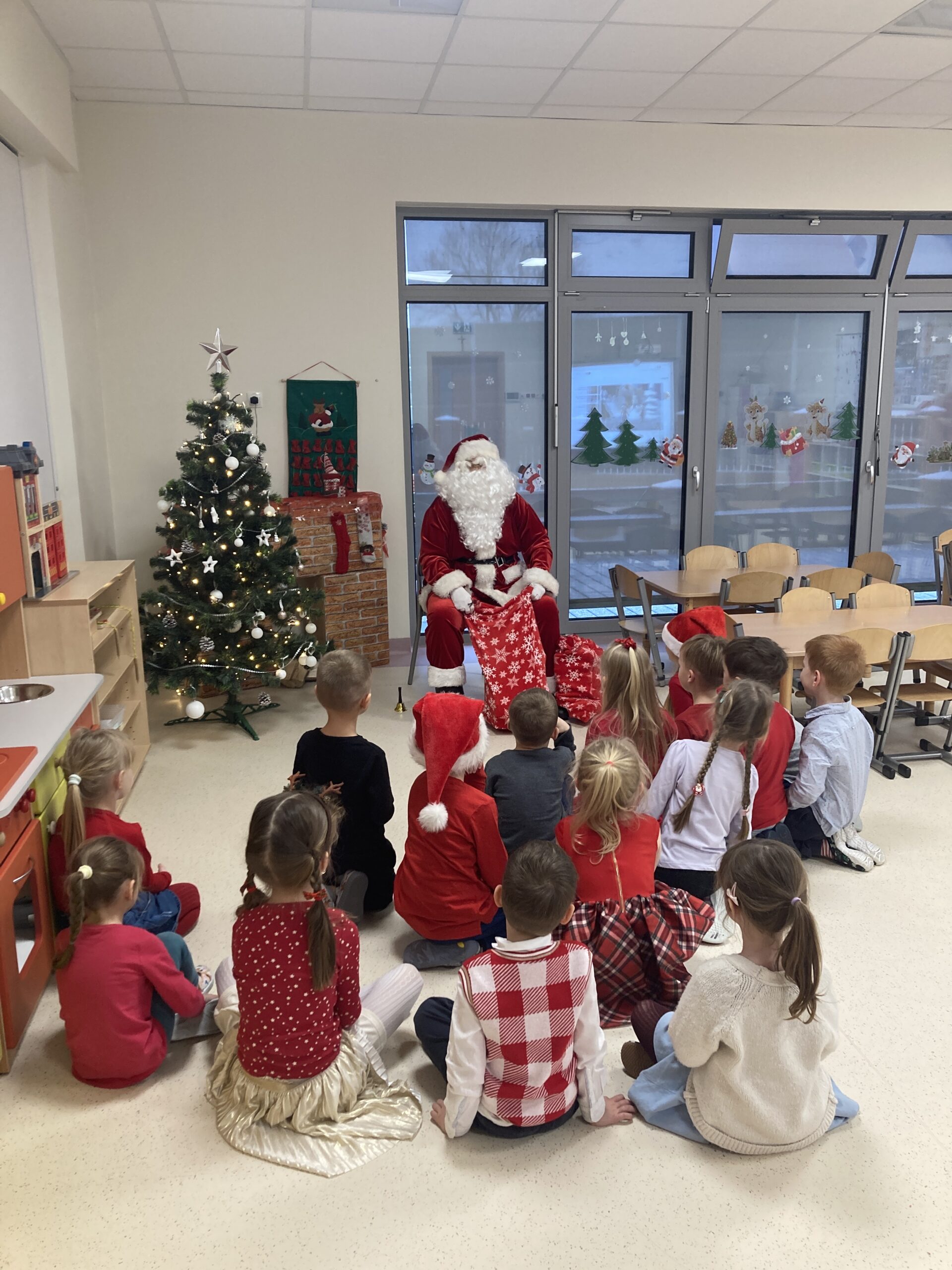 06 grudnia w naszym przedszkolu pojawił się długo oczekiwany gość – Mikołaj. Dzieci niecierpliwie Go wyczekiwały, obserwowały śnieg za oknem i zastanawiały się czy przybędzie saniami. Kiedy Mikołaj przybył- powitaliśmy Go piosenką . Spotkanie z Mikołajem minęło w cudownej atmosferze i przyniosło dzieciom wiele radości. Święty Mikołaj obdarował wszystkie dzieci prezentami. Następnie dzieci z radością pozowały do wspólnego zdjęcia. Cieszymy się, że Mikołaj o nas pamiętał i czekamy na jego wizytę w przyszłym roku.