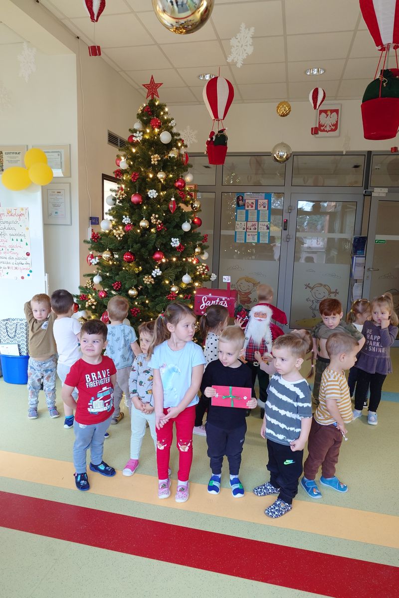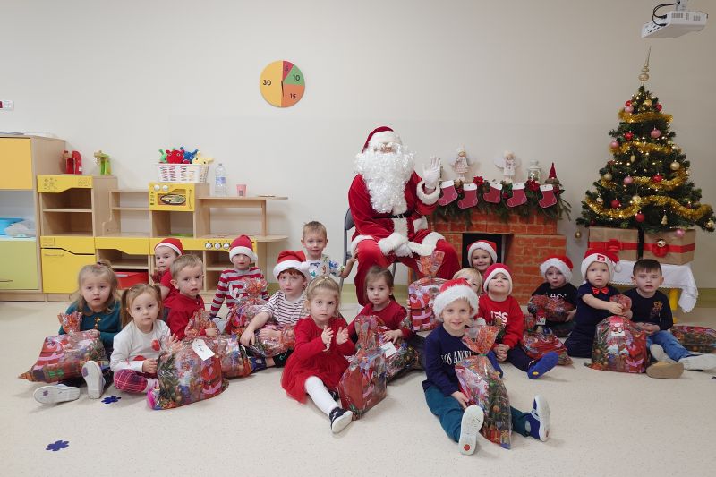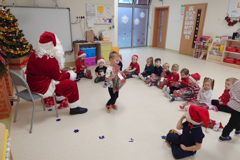 Wizyta św. Mikołaja to jedna z najbardziej oczekiwanych przez dzieci chwil w roku. Niecodzienny gość odwiedził dzieci z naszego przedszkola. Dzieci zaśpiewały Mikołajowi piosenki, a w nagrodę otrzymały piękne prezenty. Na koniec św. Mikołaj wyraził nadzieję, że przez kolejny rok, dzieci będą równie grzeczne i będzie mógł nas ponownie odwiedzić przyszłym roku. Czekamy z niecierpliwością!