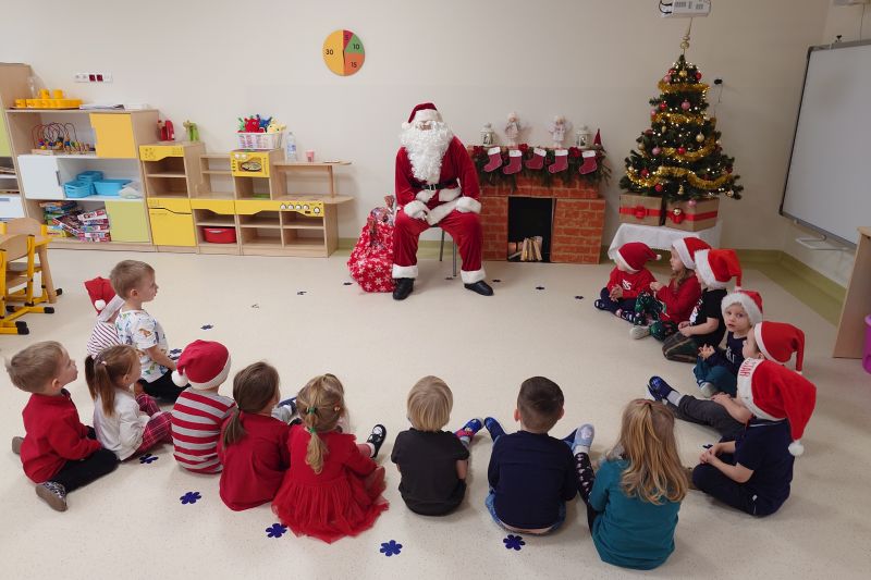 Wizyta św. Mikołaja to jedna z najbardziej oczekiwanych przez dzieci chwil w roku. Niecodzienny gość odwiedził dzieci z naszego przedszkola. Dzieci zaśpiewały Mikołajowi piosenki, a w nagrodę otrzymały piękne prezenty. Na koniec św. Mikołaj wyraził nadzieję, że przez kolejny rok, dzieci będą równie grzeczne i będzie mógł nas ponownie odwiedzić przyszłym roku. Czekamy z niecierpliwością!